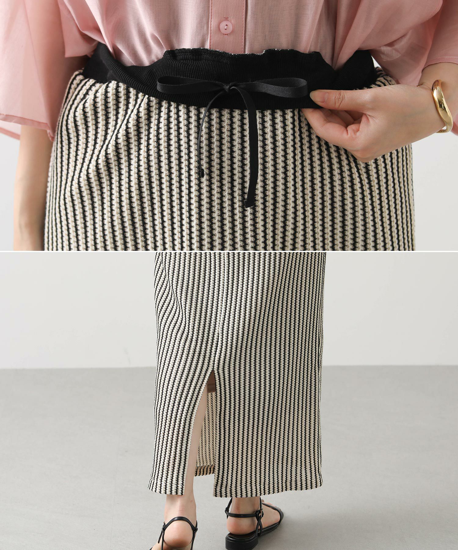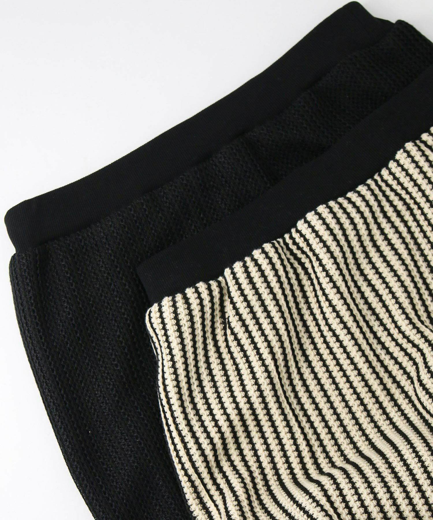 伸縮性のある生地とウエストゴムでイージーな穿き心地。