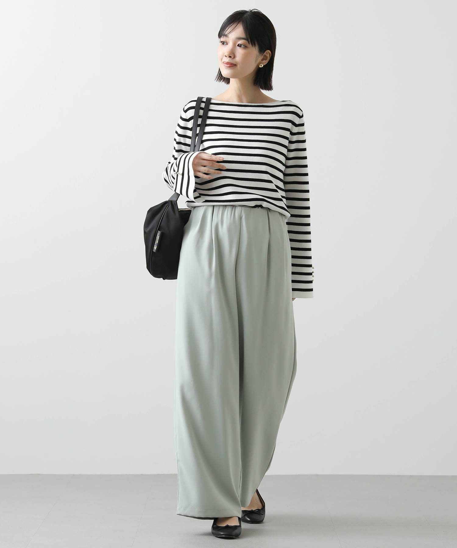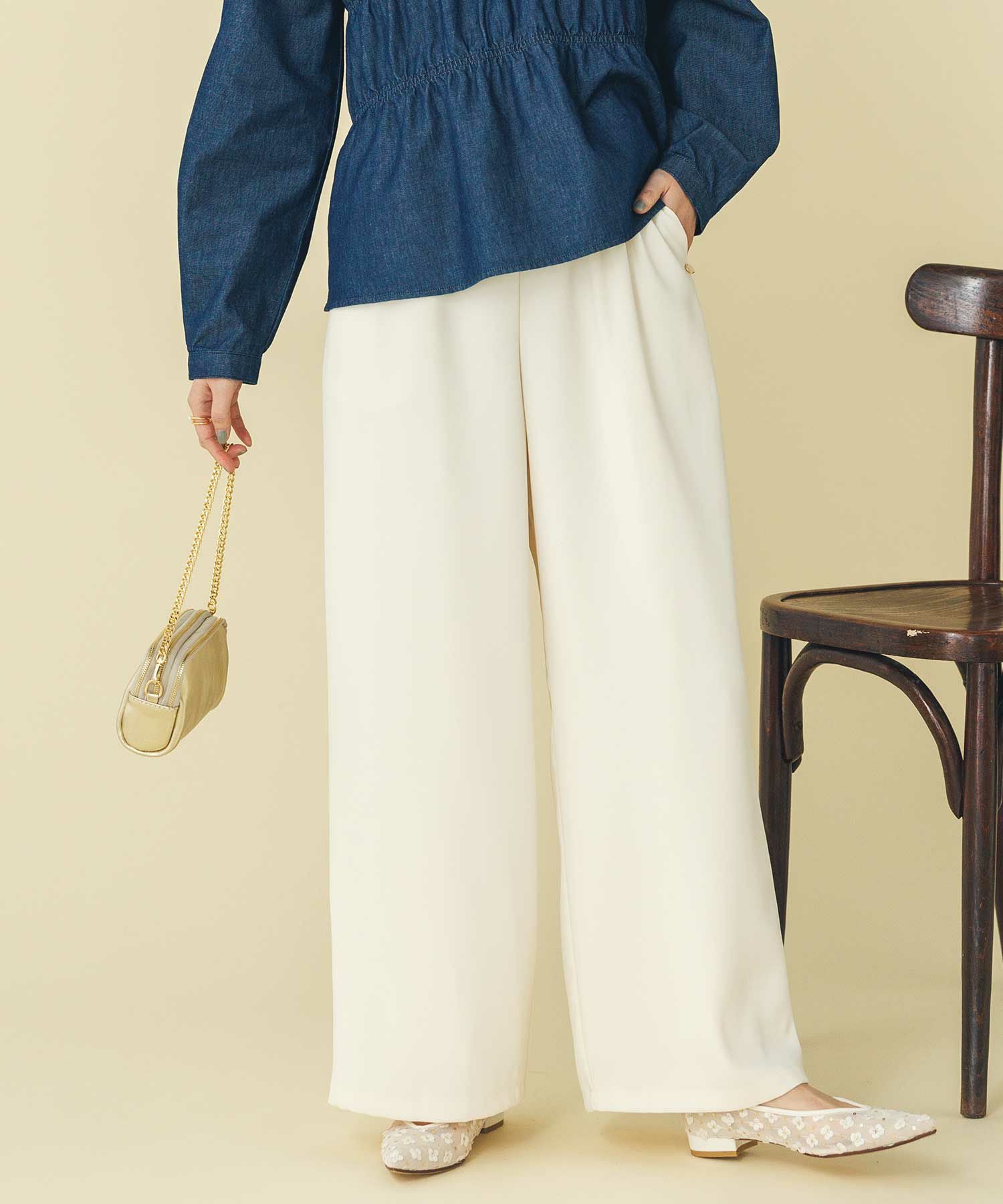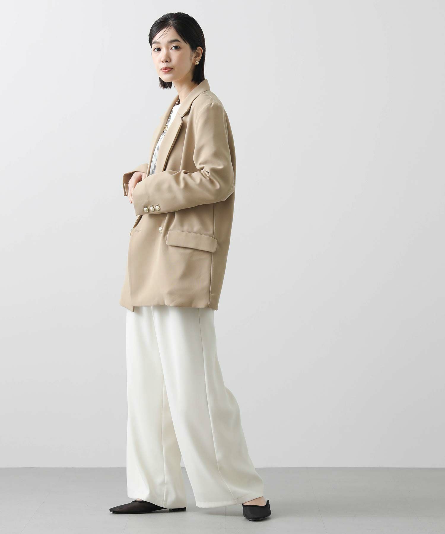 ふっくらとしたふくらみが高級感があり、絶妙な落ち感とハリ感で身体のラインをカバーしてくれる合繊素材を使用。シワが気になりにくいのも嬉しい。