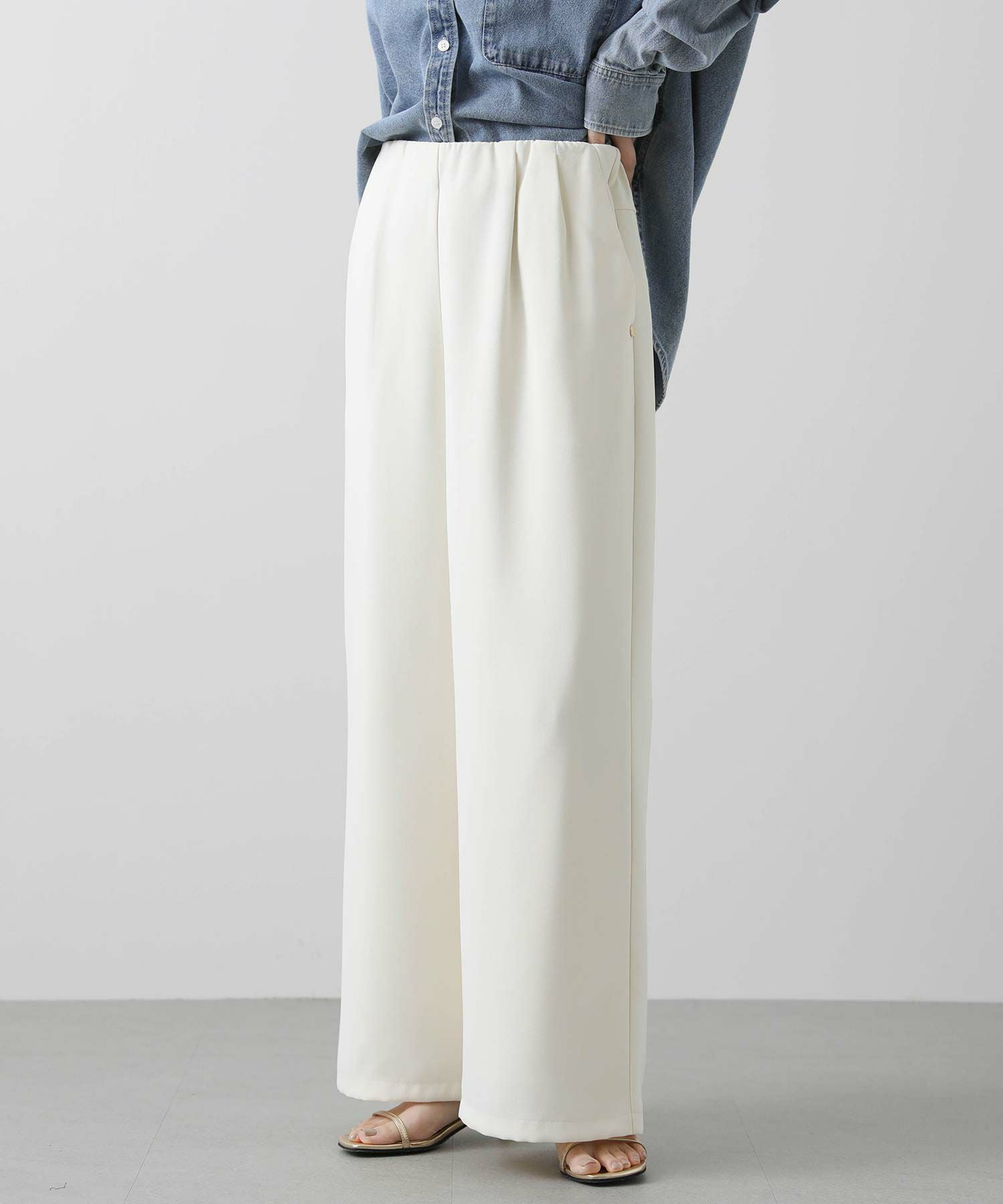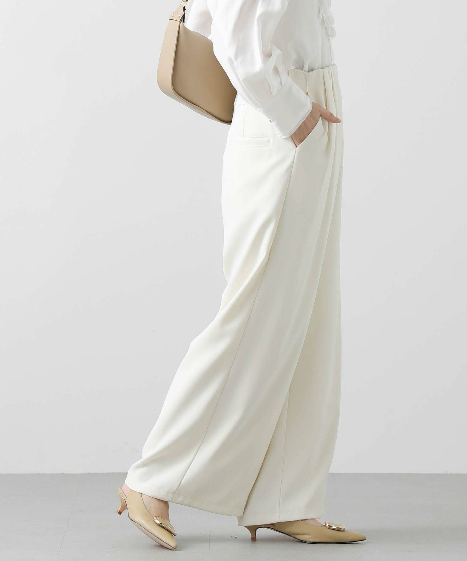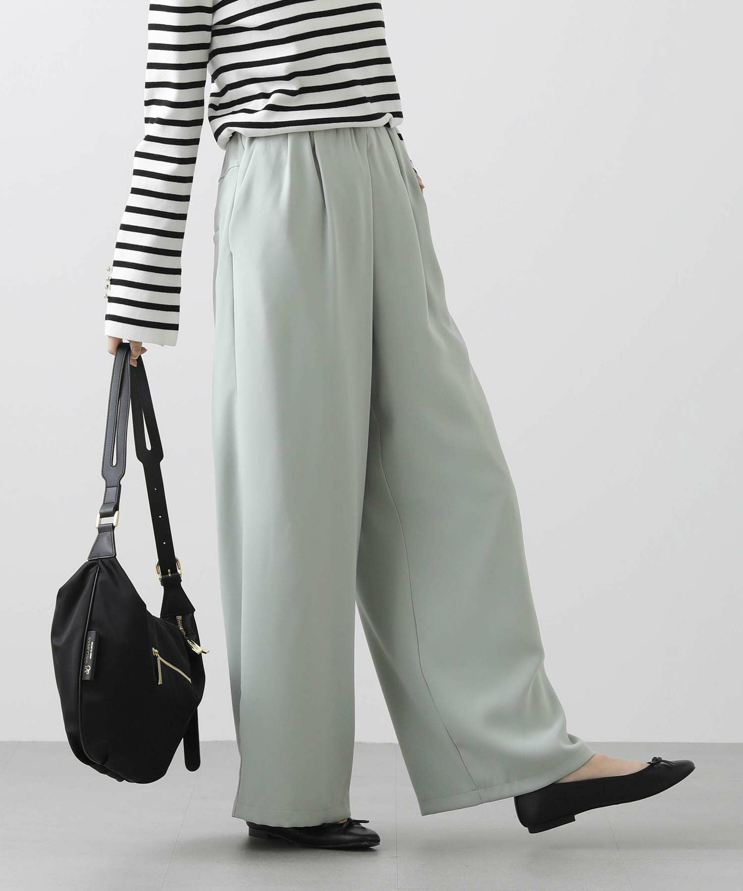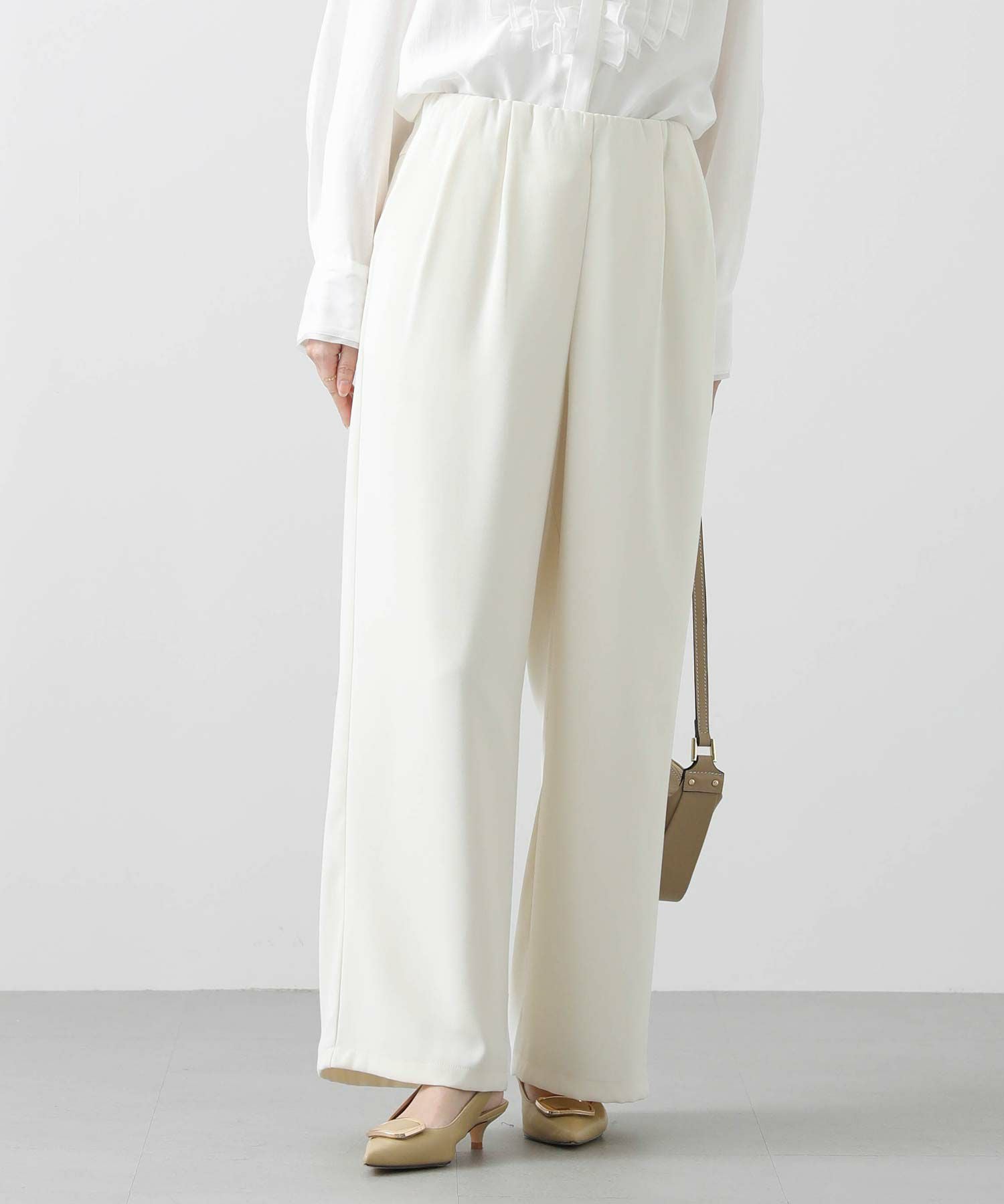 ふっくらとしたふくらみが高級感があり、絶妙な落ち感とハリ感で身体のラインをカバーしてくれる合繊素材を使用。シワが気になりにくいのも嬉しい。