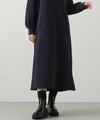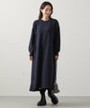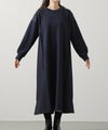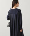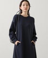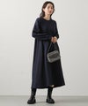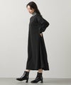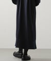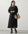 滑らかな素材感のTRデニムとダンボール素材をドッキングしたフレアワンピース。