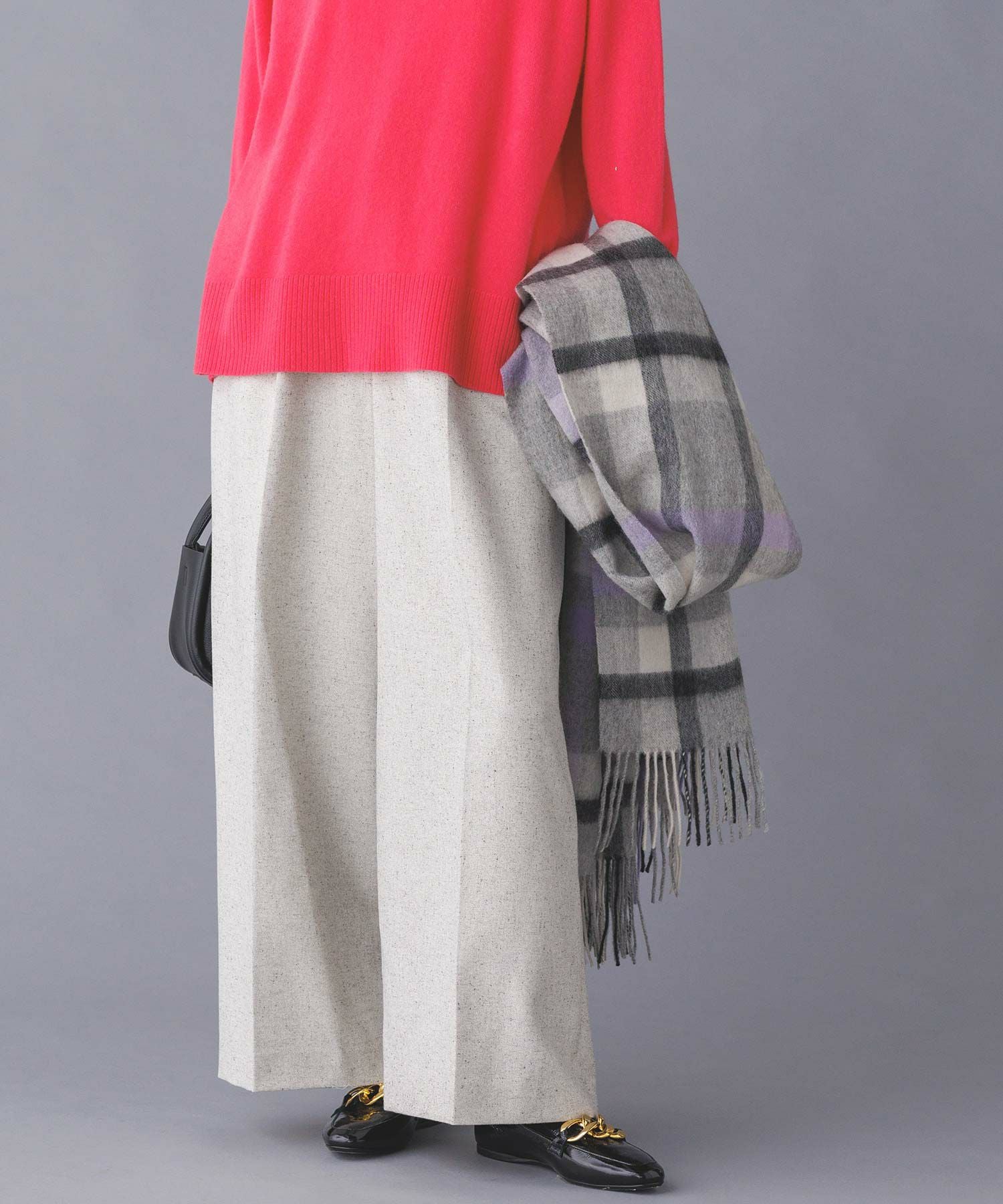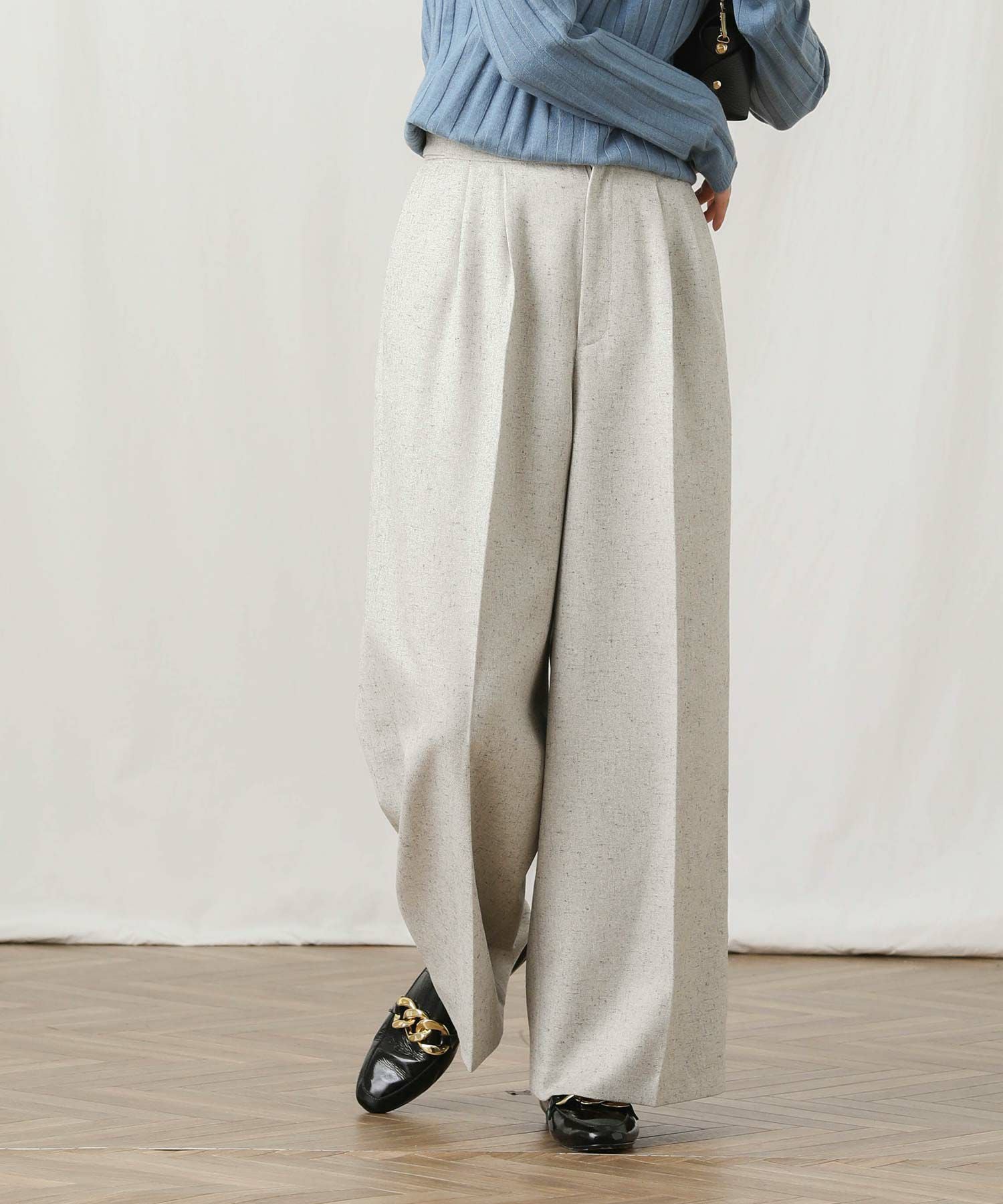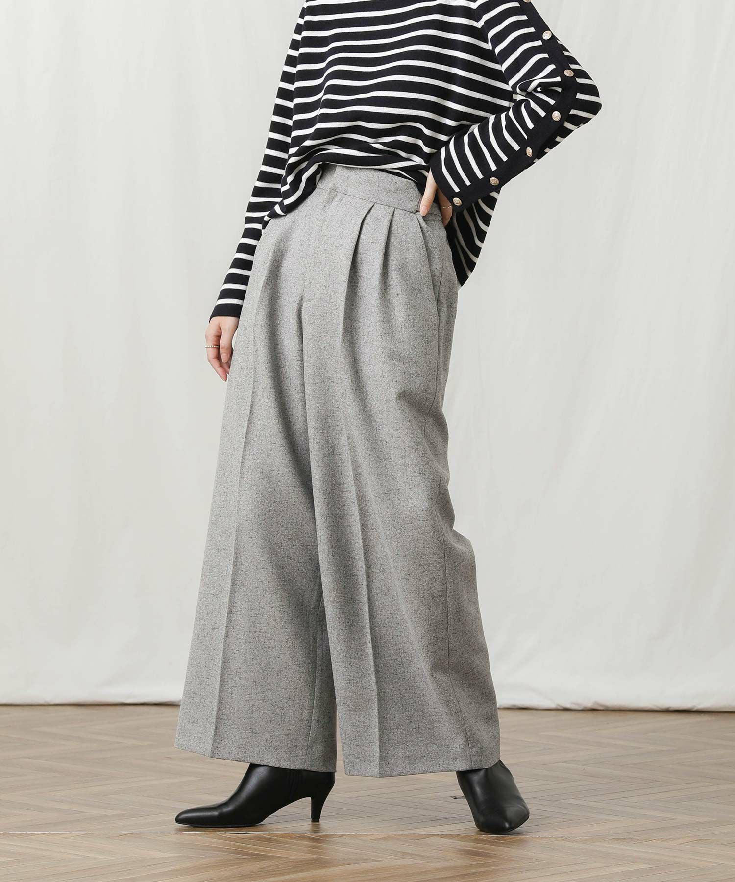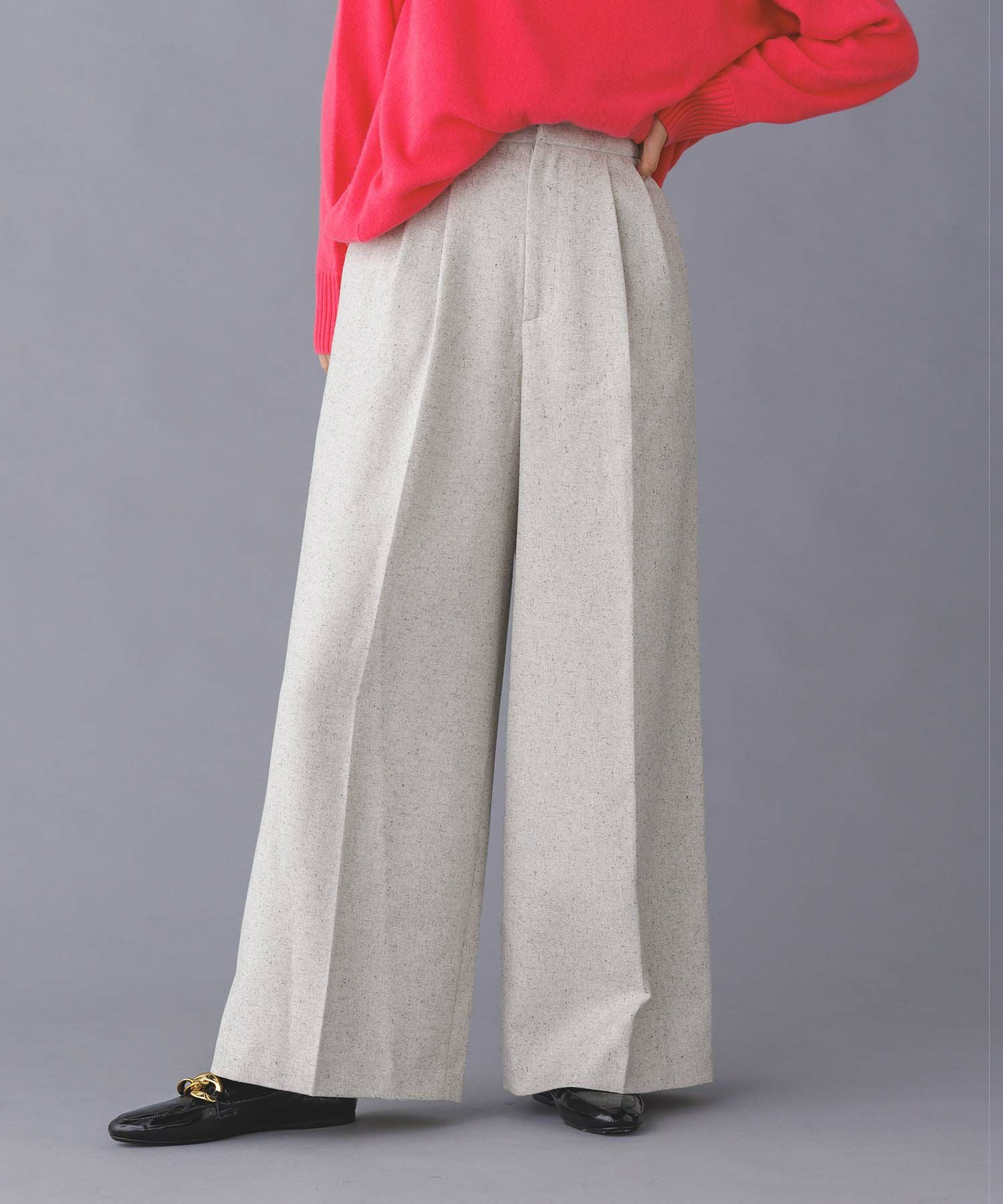 クラシカルでマニッシュなツイード素材が今年らしい2タックのワイドパンツ。