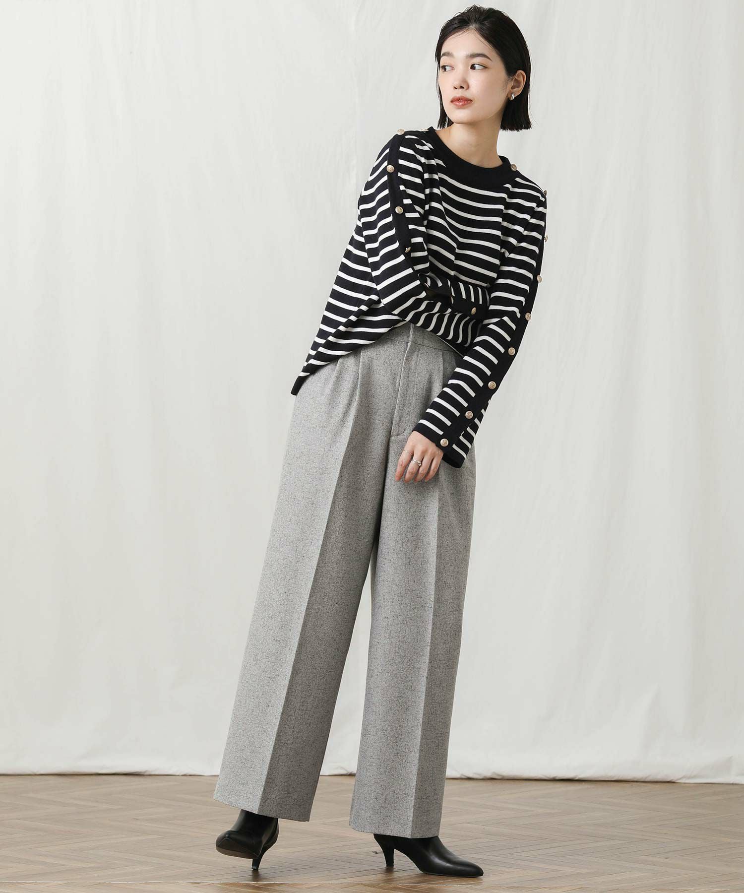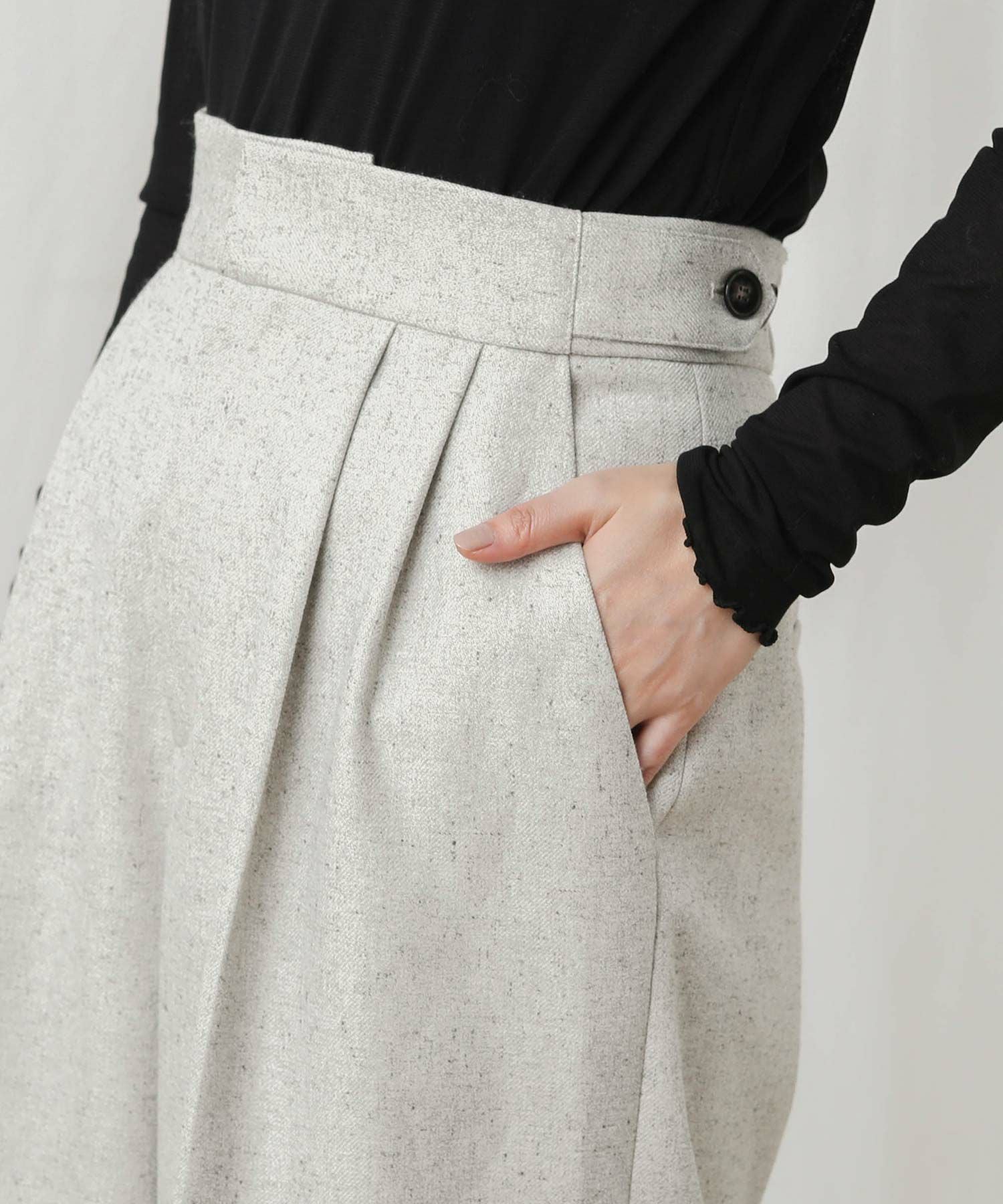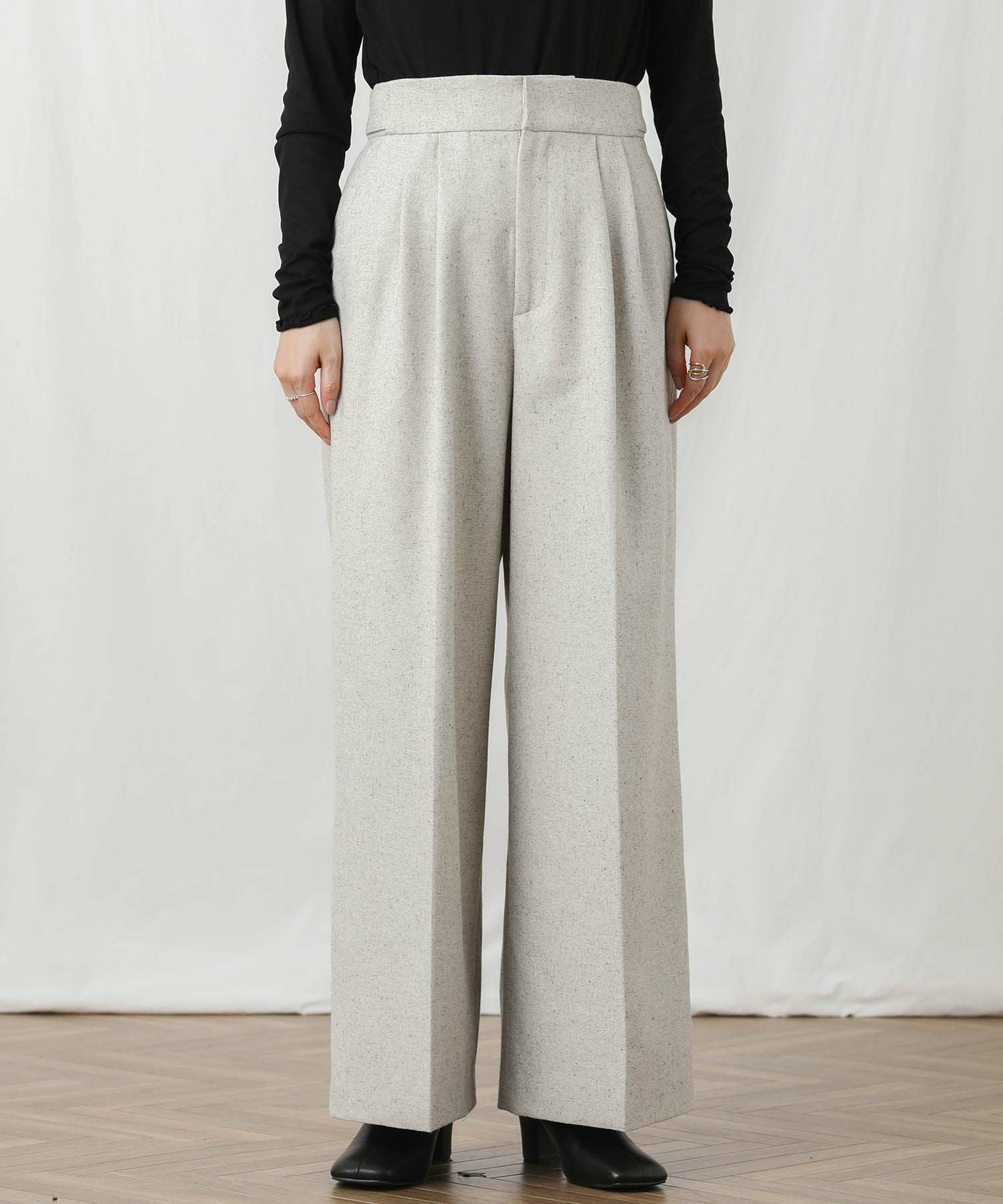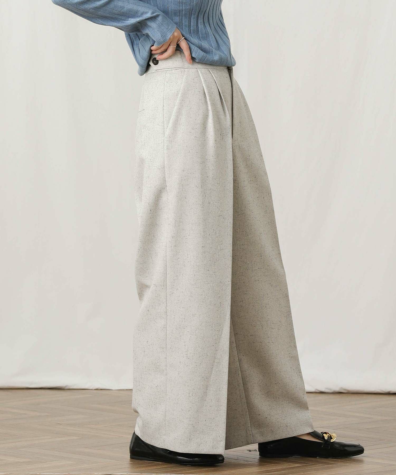 クラシカルでマニッシュなツイード素材が今年らしい2タックのワイドパンツ。