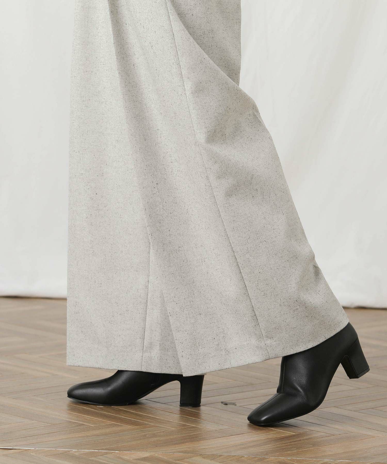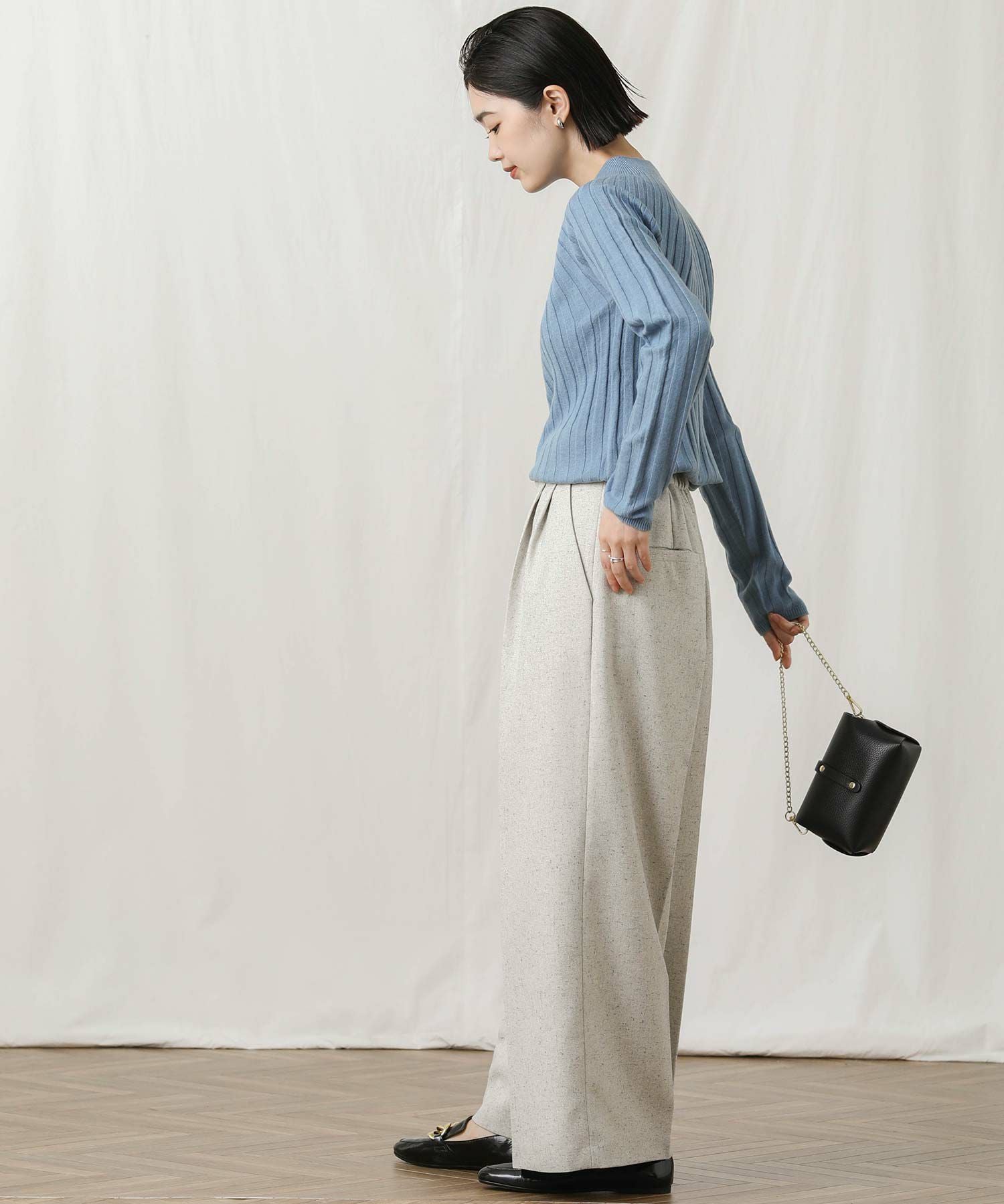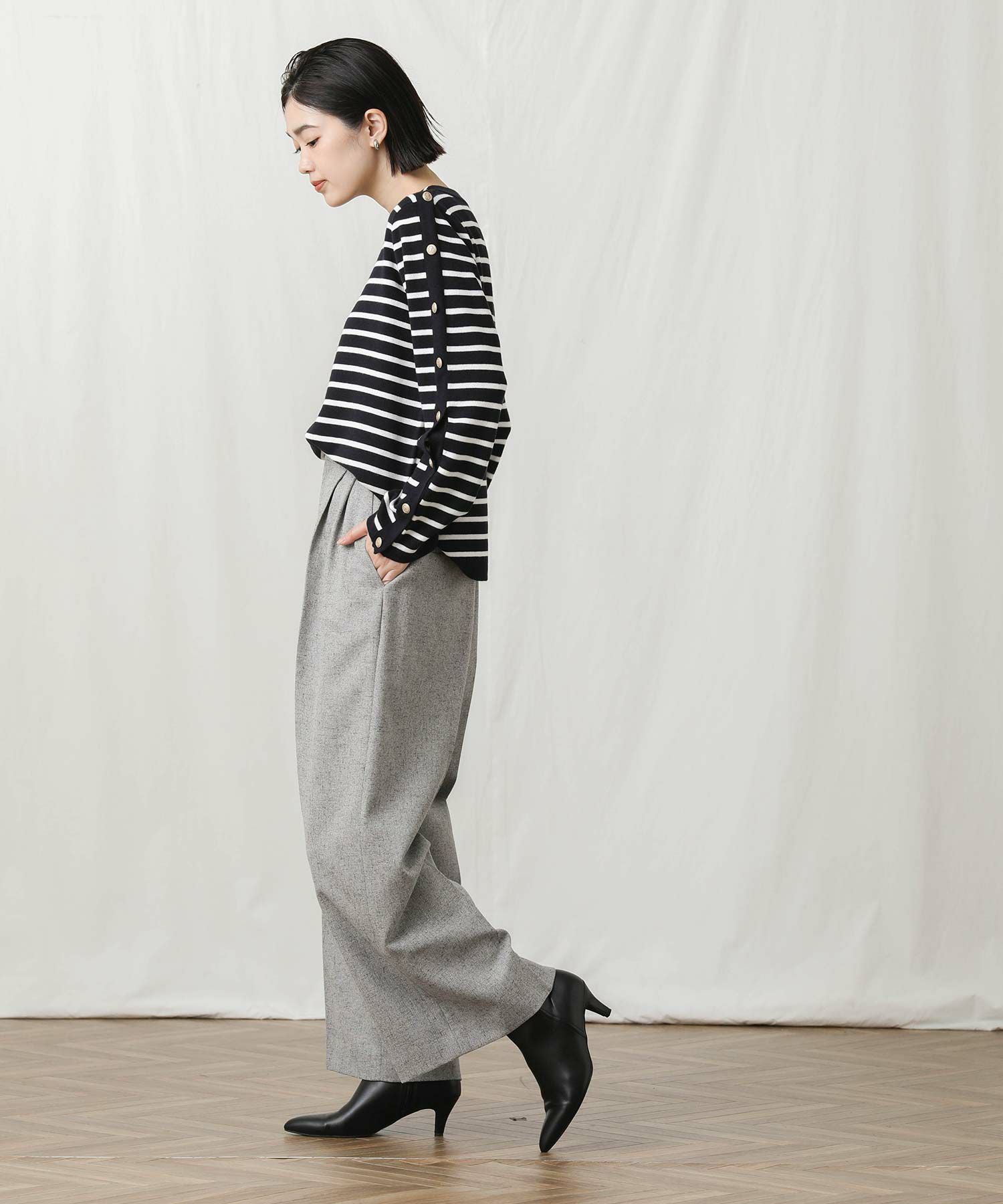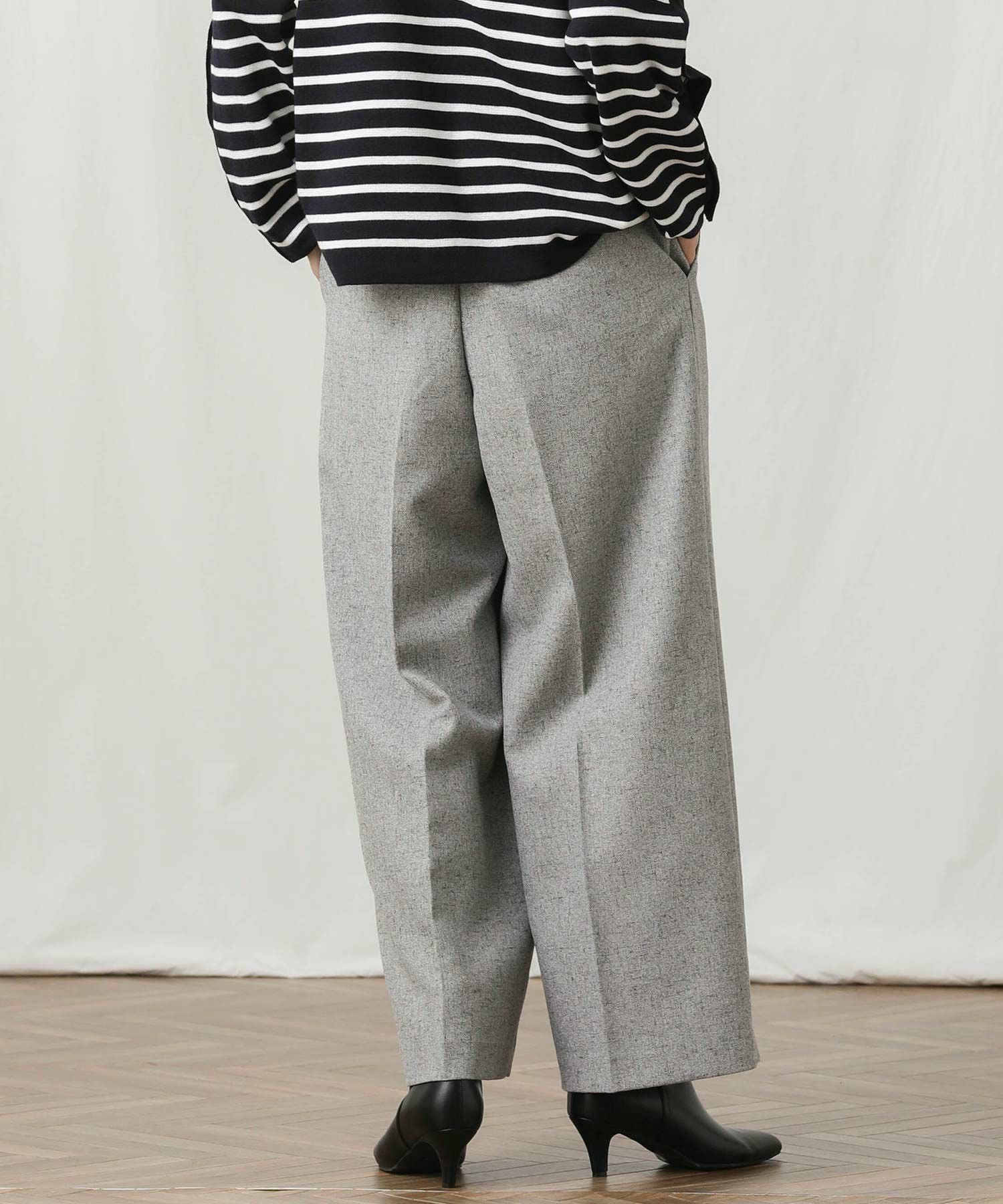 クラシカルでマニッシュなツイード素材が今年らしい2タックのワイドパンツ。