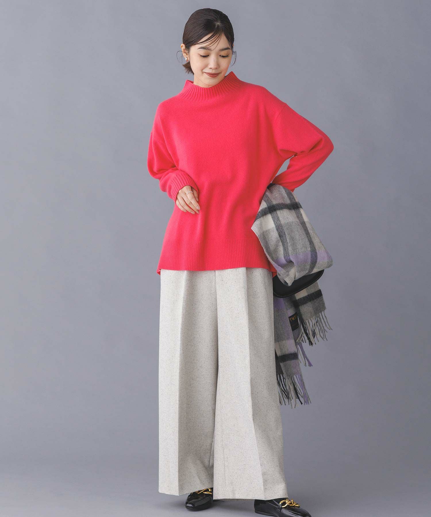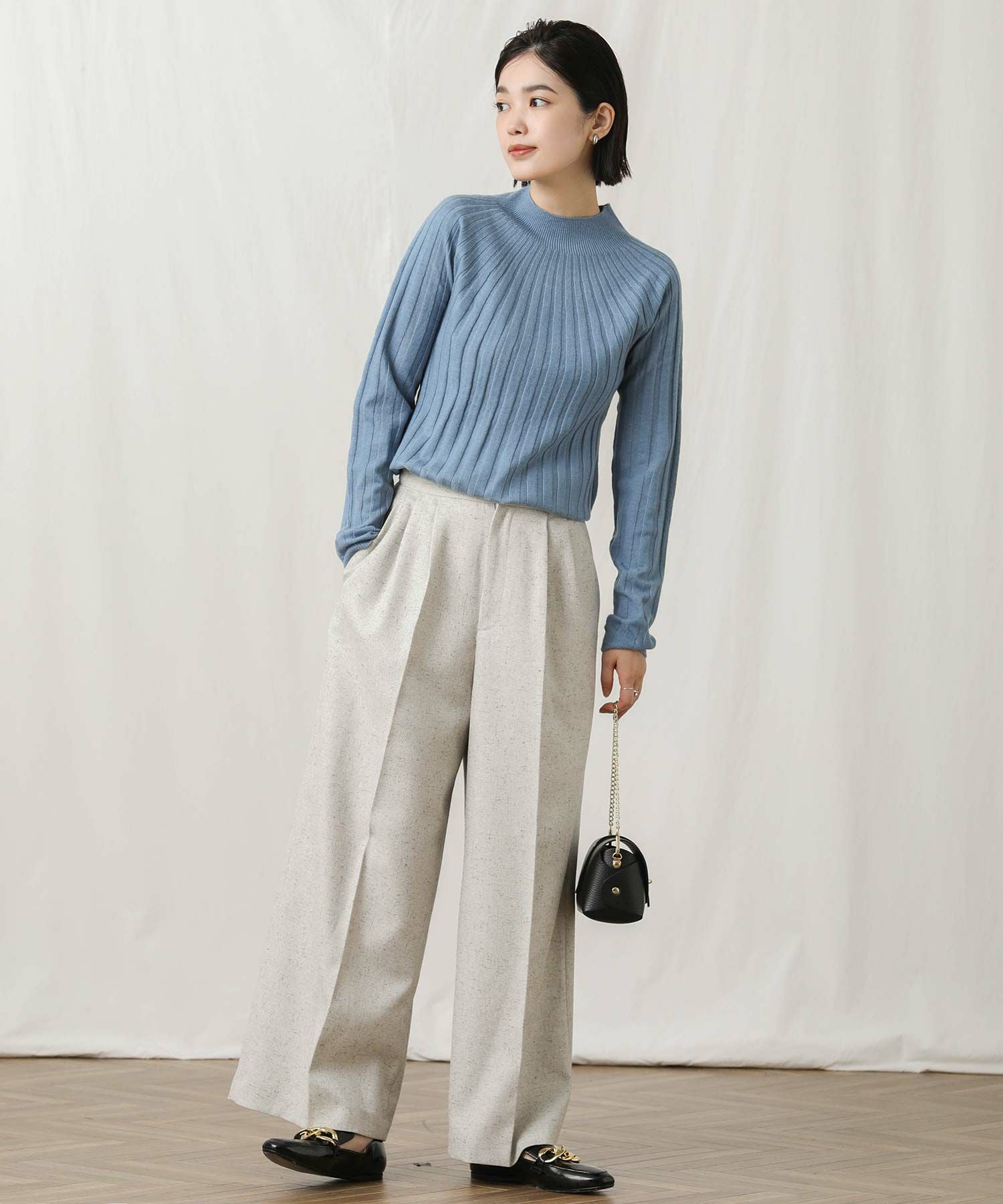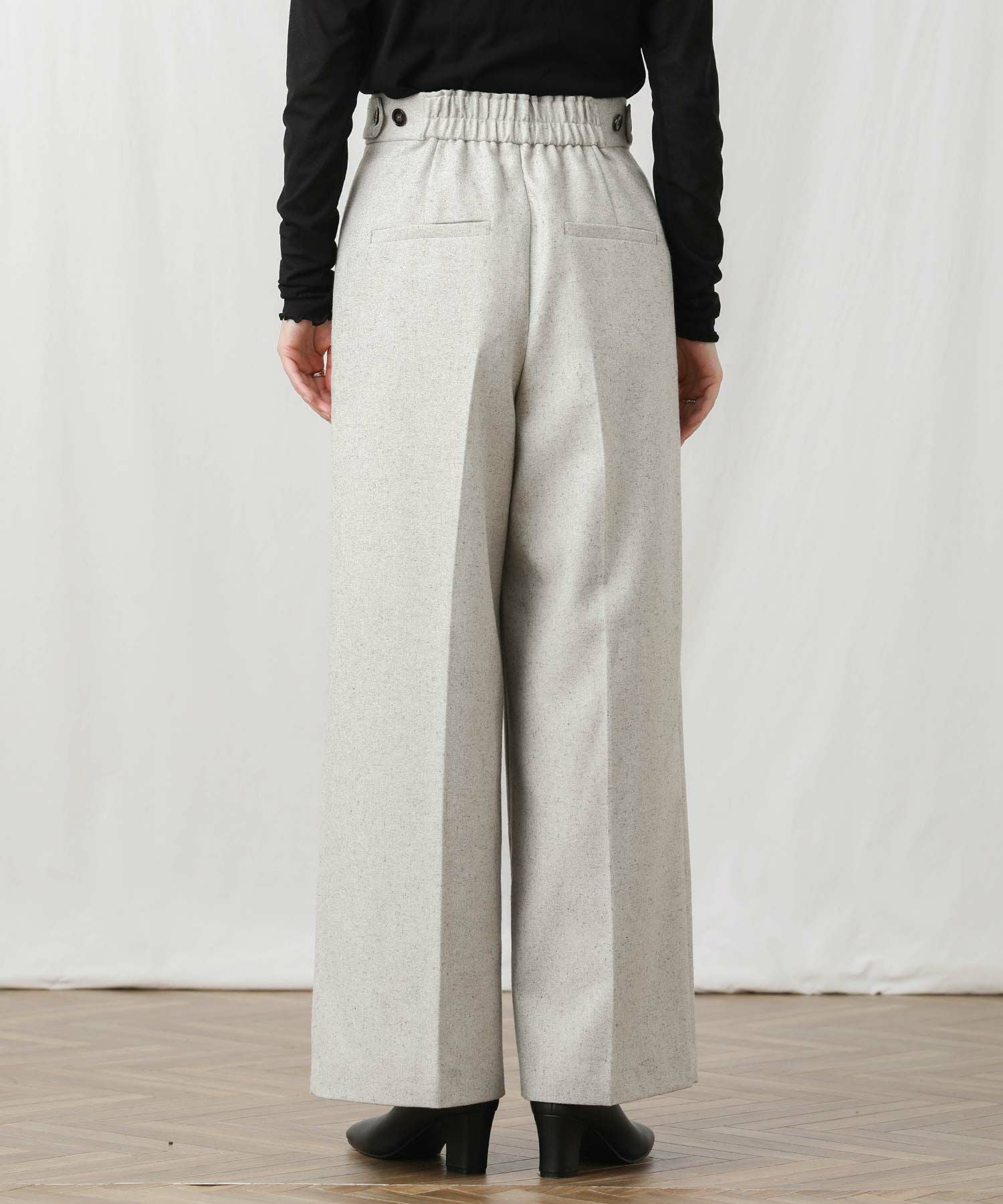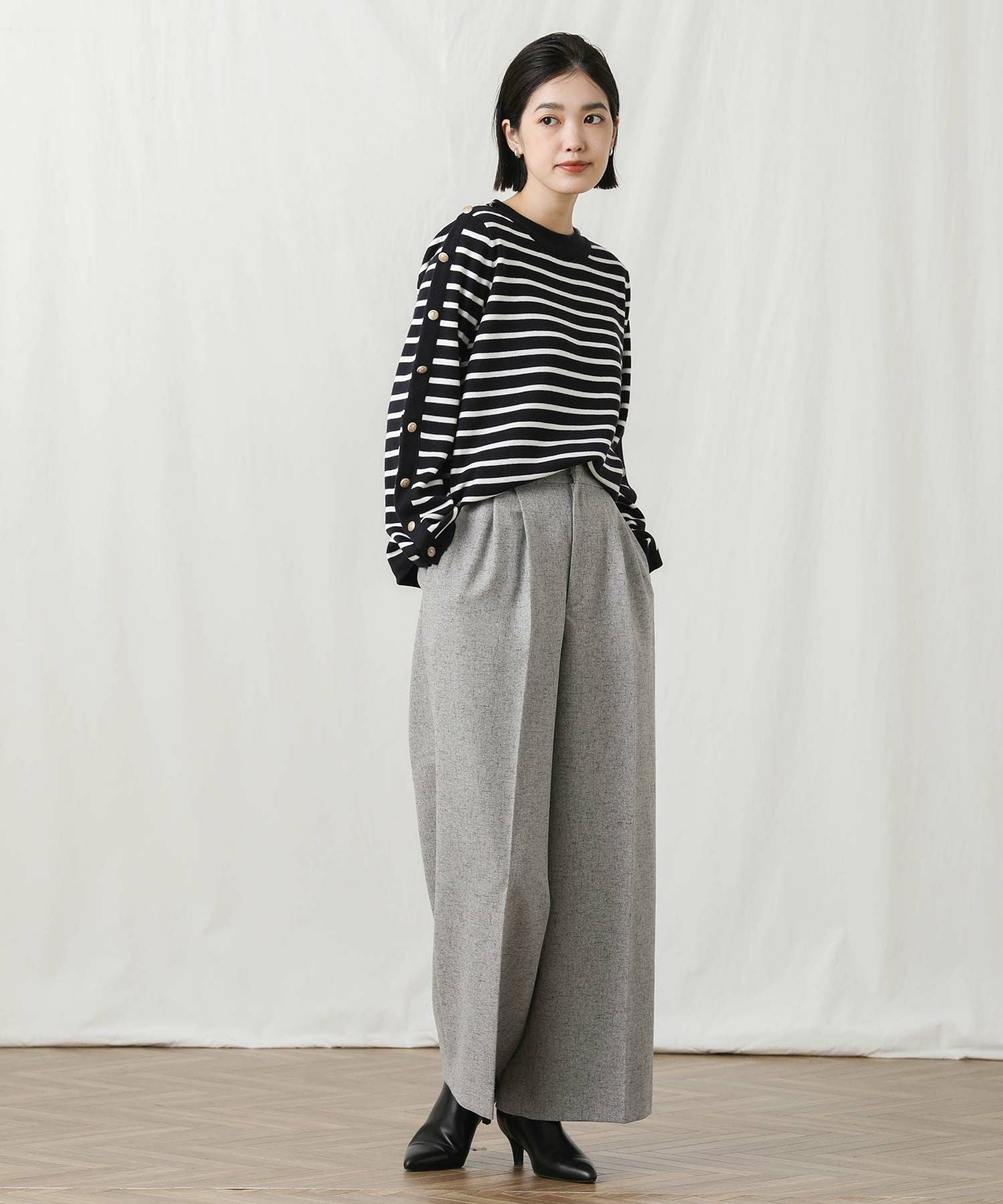 クラシカルでマニッシュなツイード素材が今年らしい2タックのワイドパンツ。