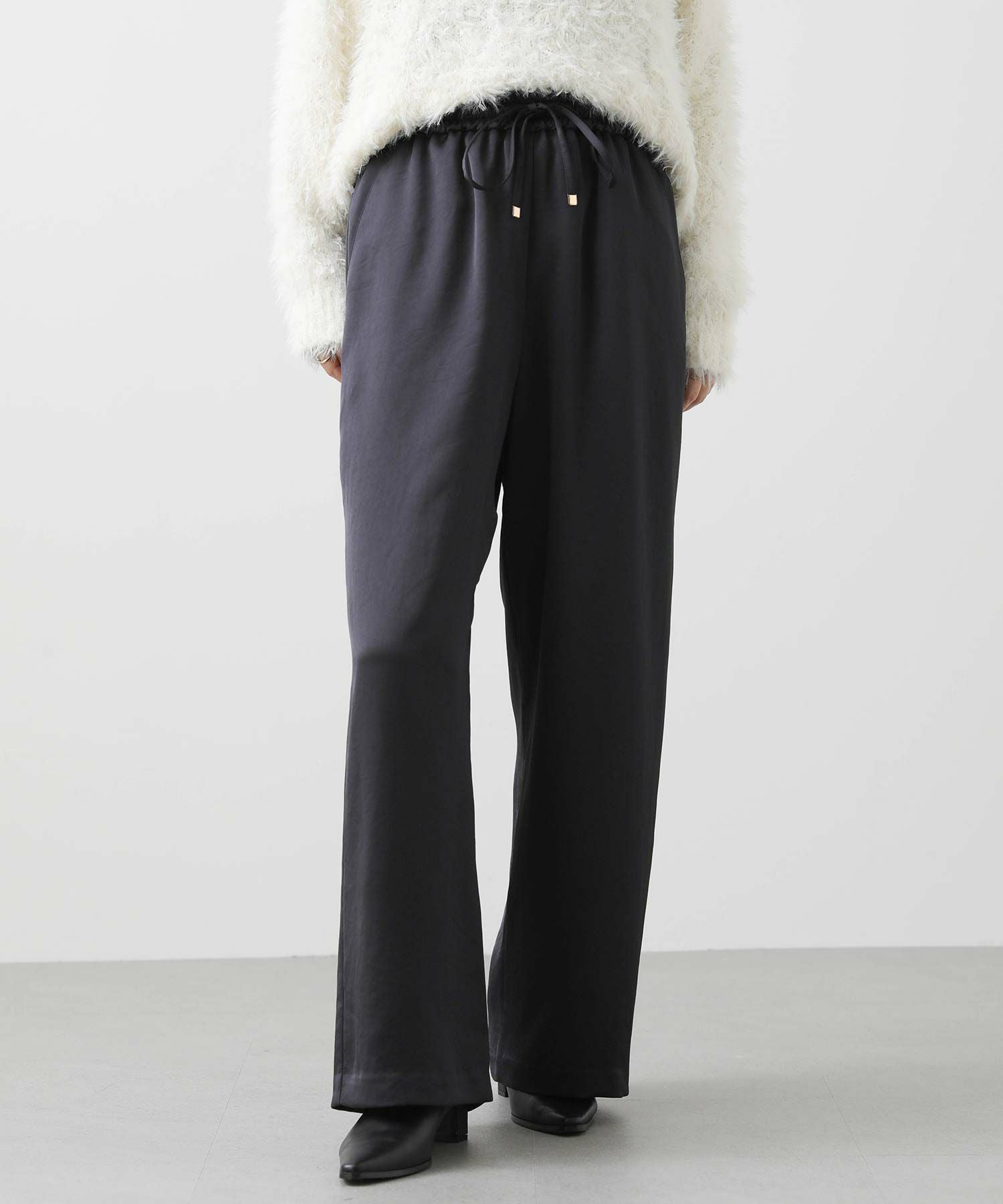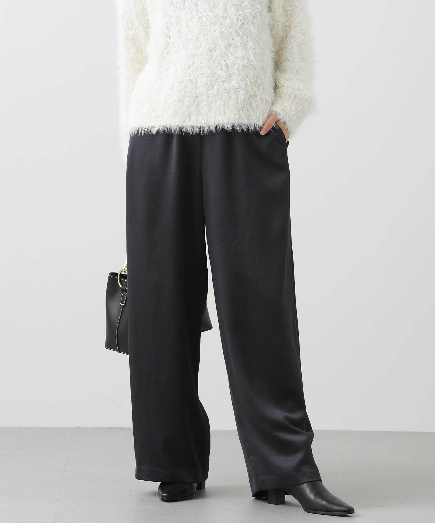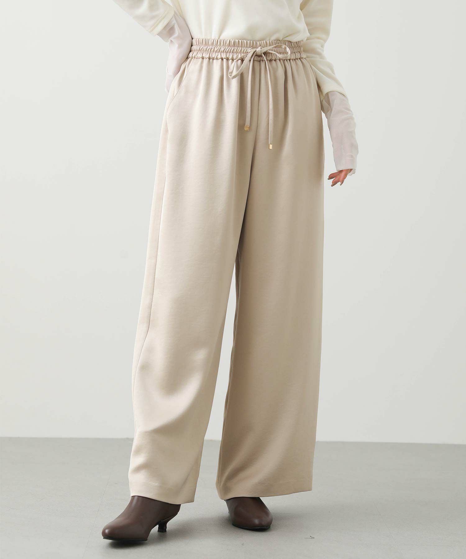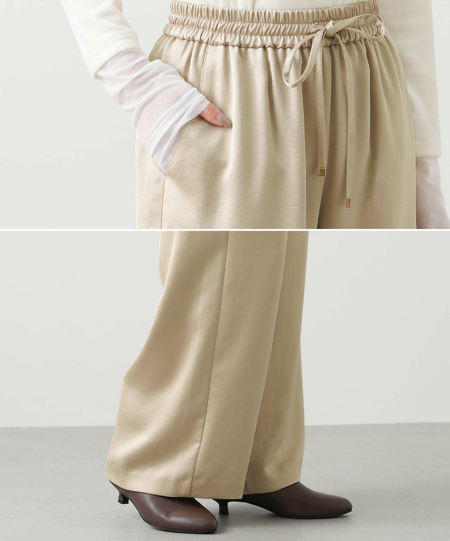 すとんと落ち感のある生地と光沢の入り方で、足をまっすぐきれいに見せてくれるのでイージーながら上品見えも叶えてくれます。