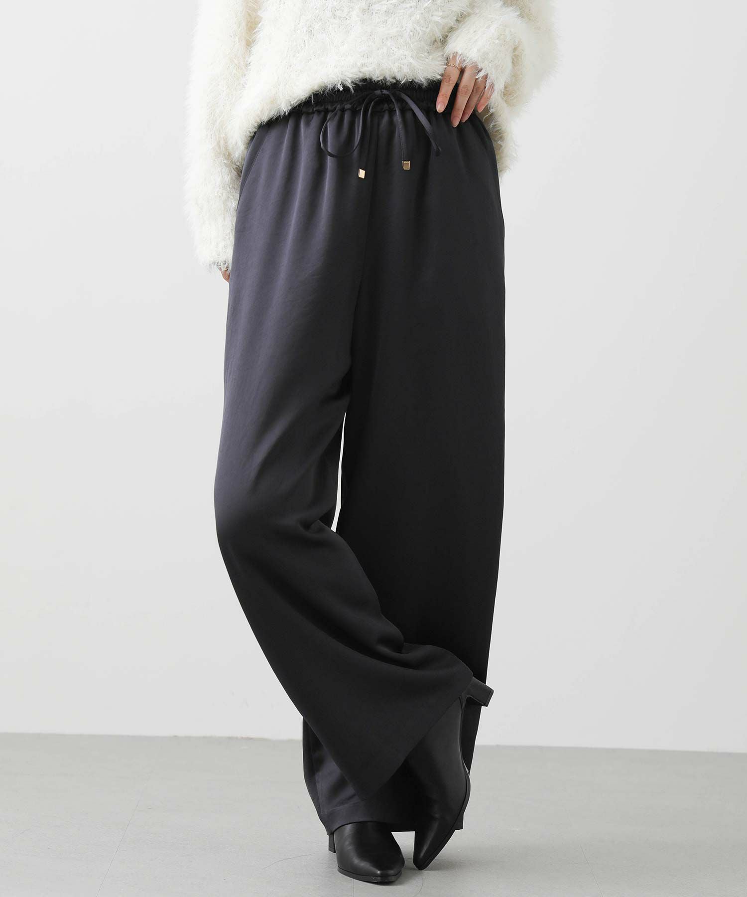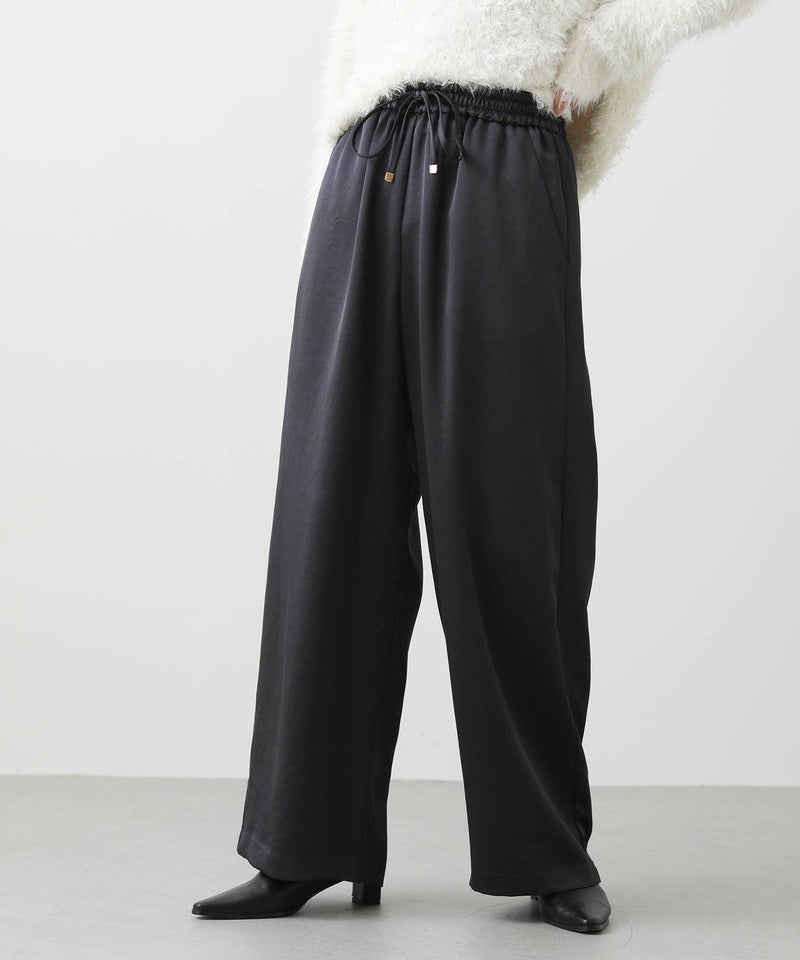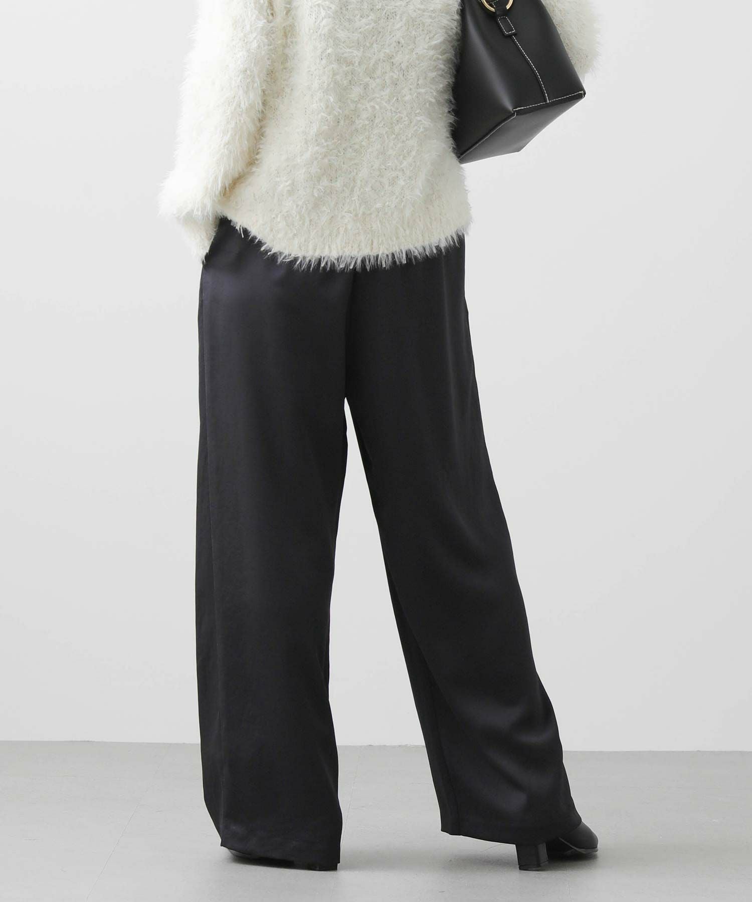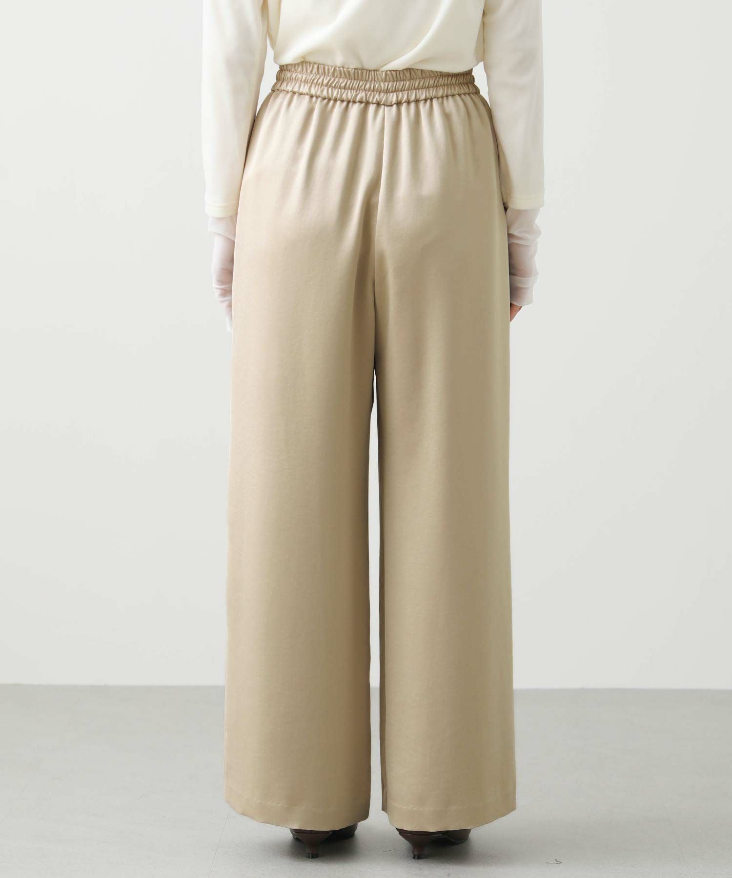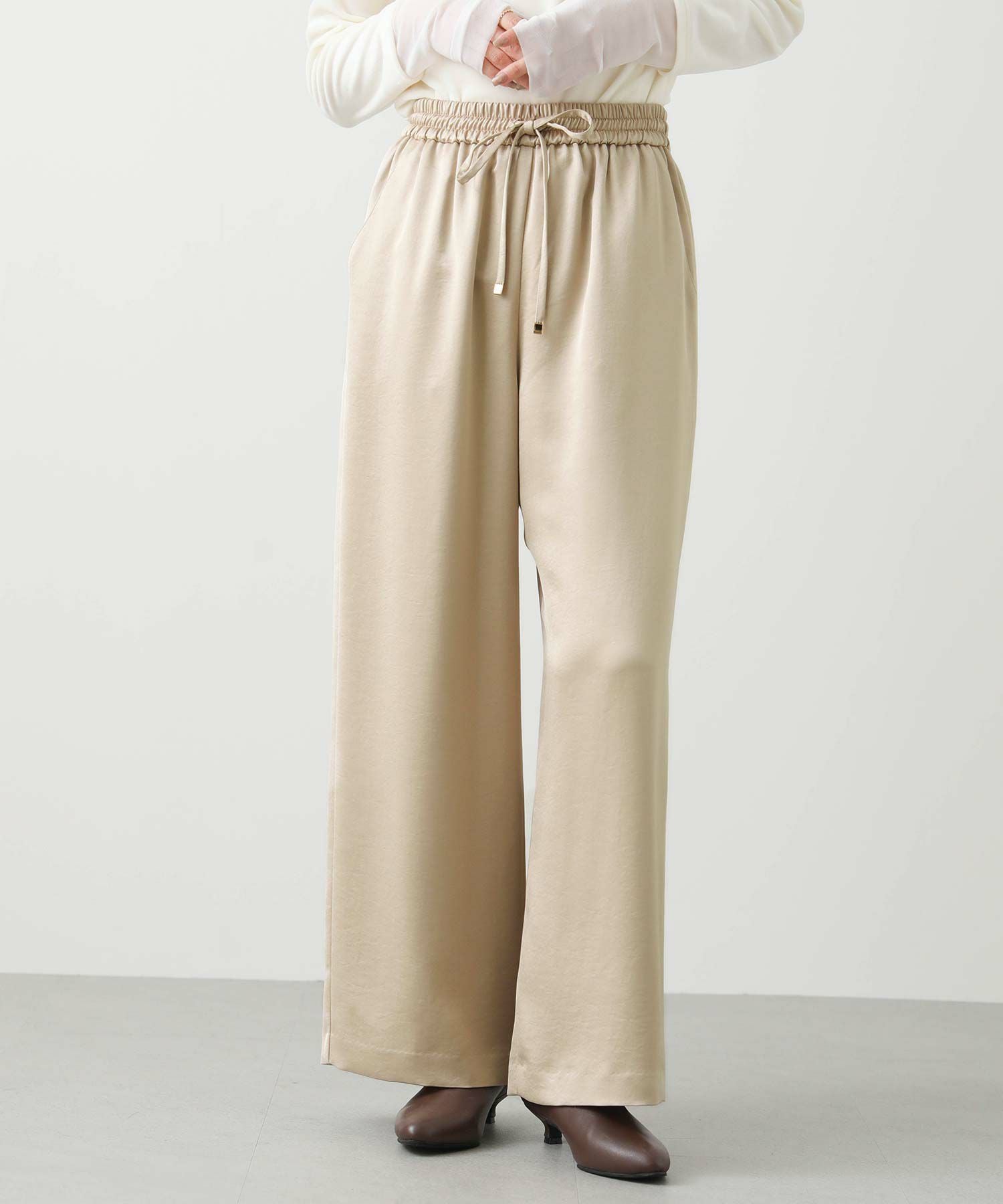 すとんと落ち感のある生地と光沢の入り方で、足をまっすぐきれいに見せてくれるのでイージーながら上品見えも叶えてくれます。