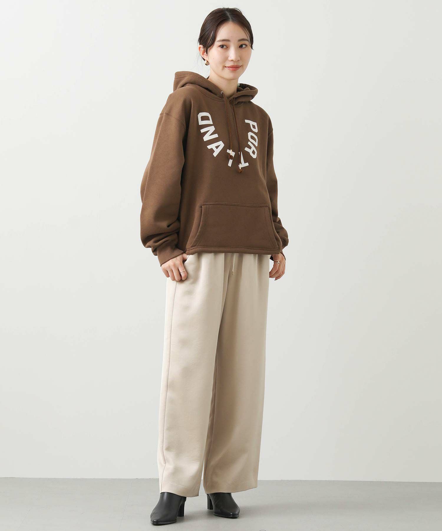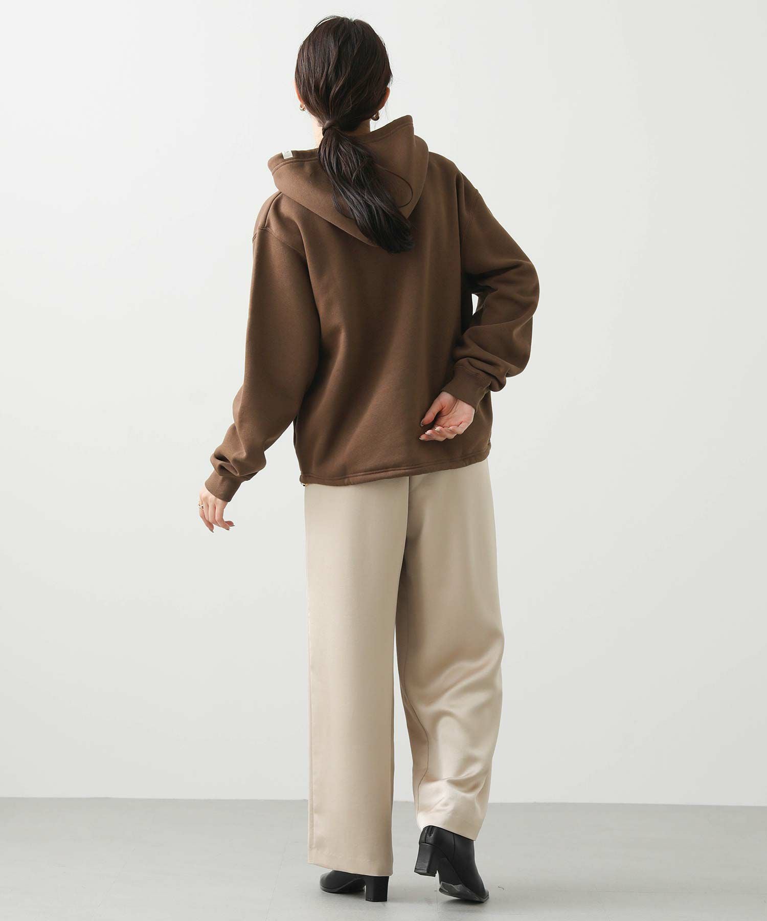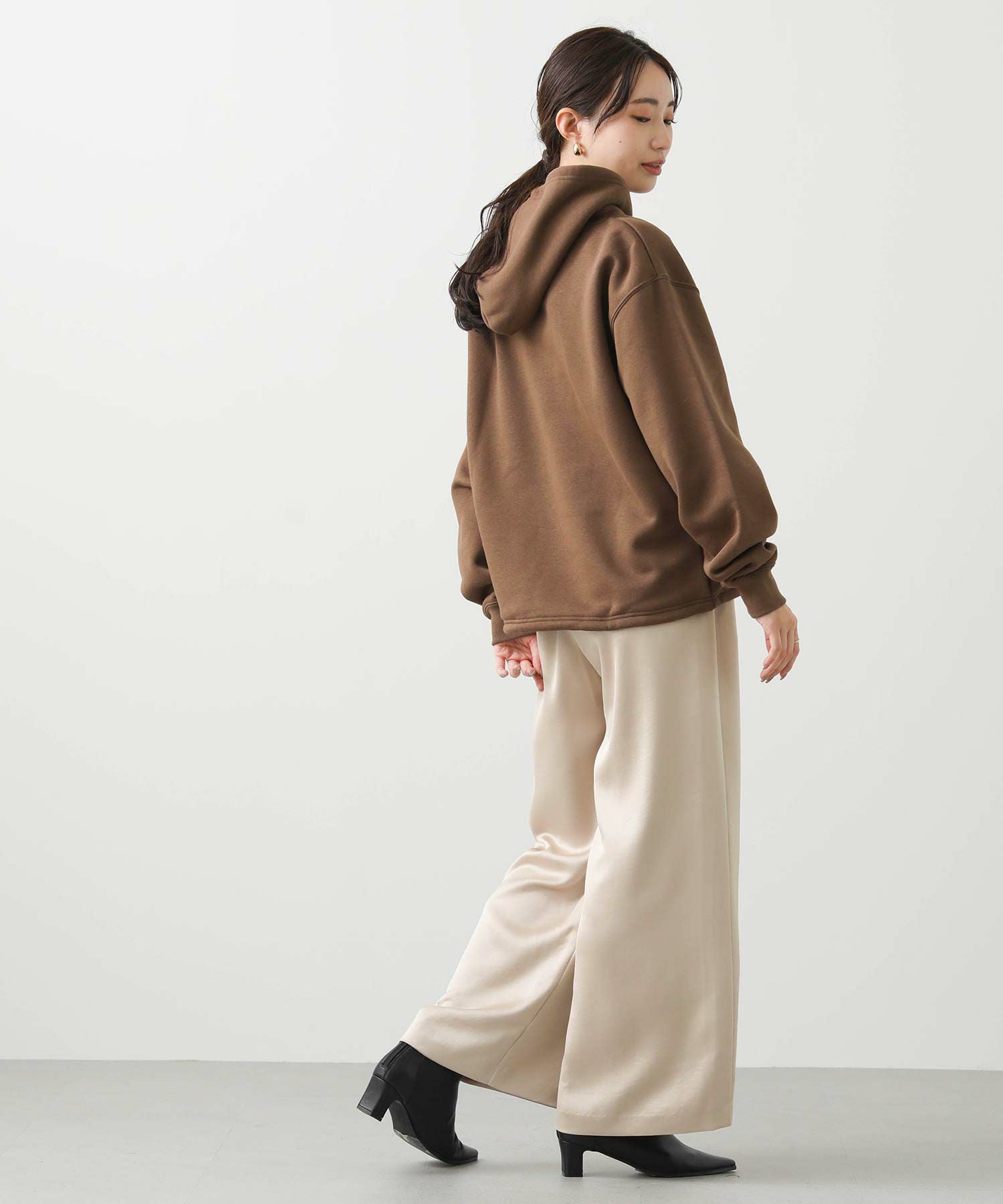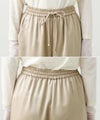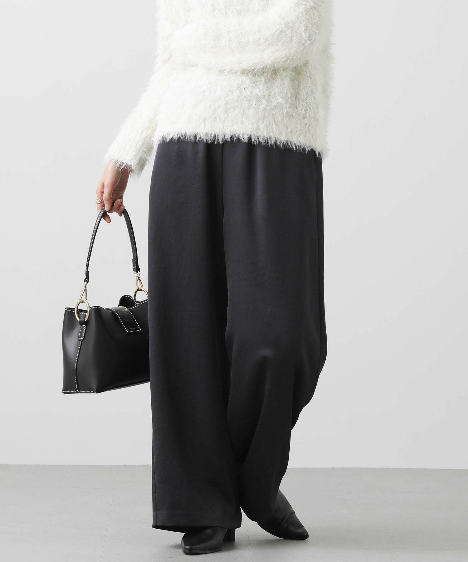 すとんと落ち感のある生地と光沢の入り方で、足をまっすぐきれいに見せてくれるのでイージーながら上品見えも叶えてくれます。