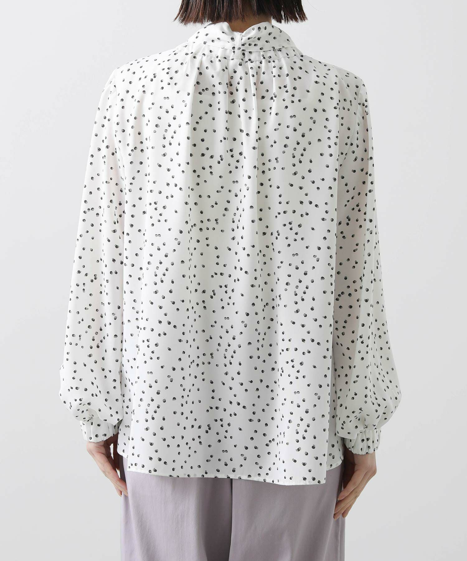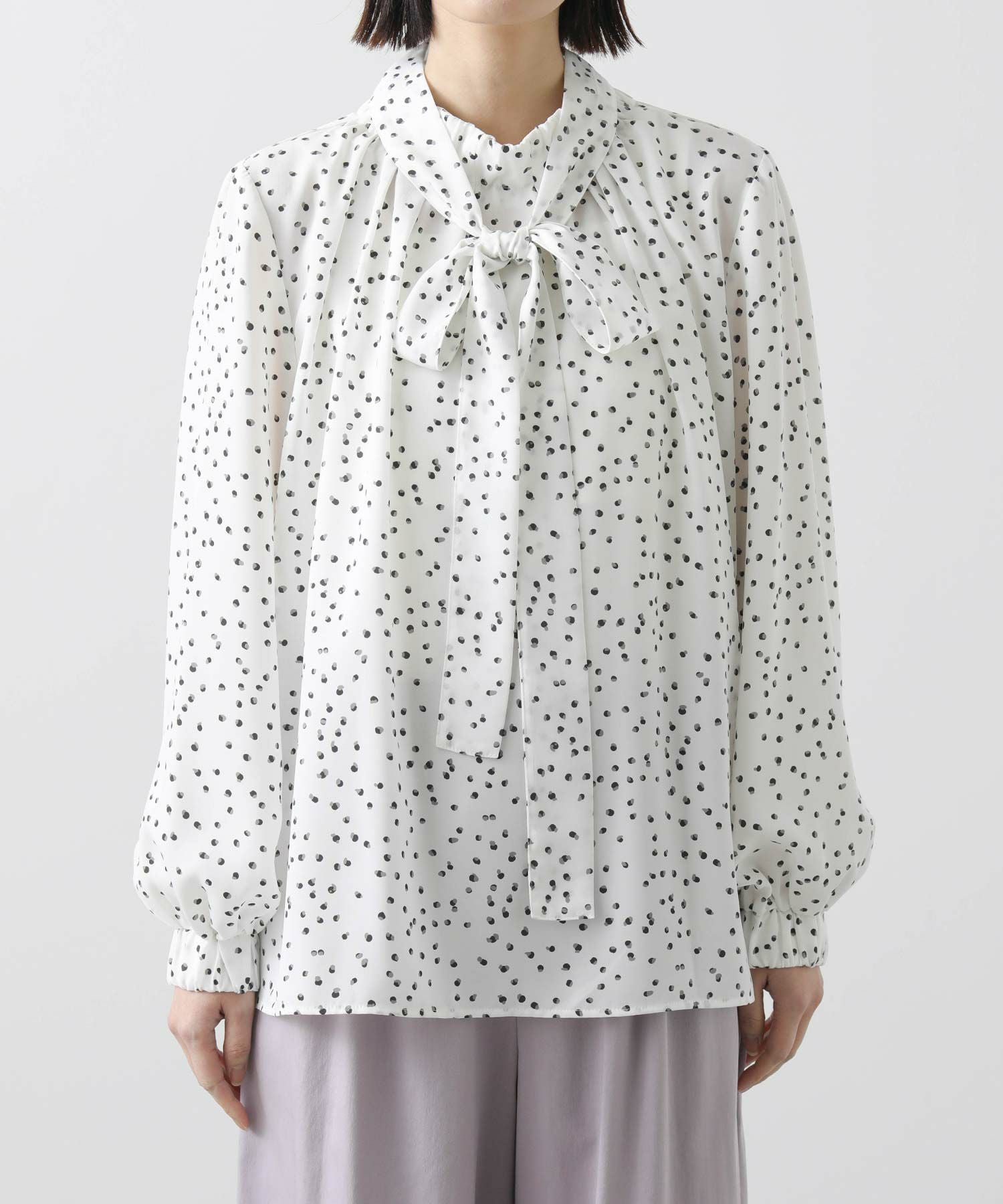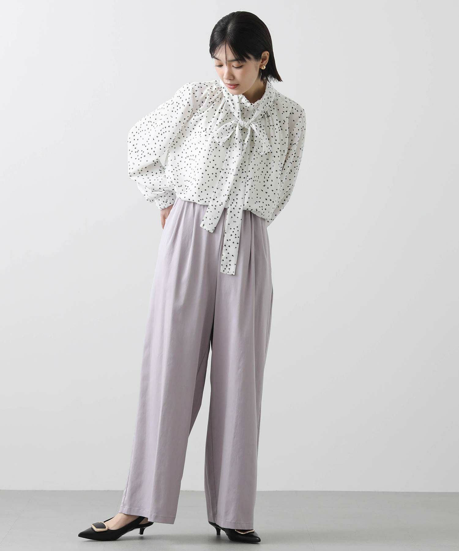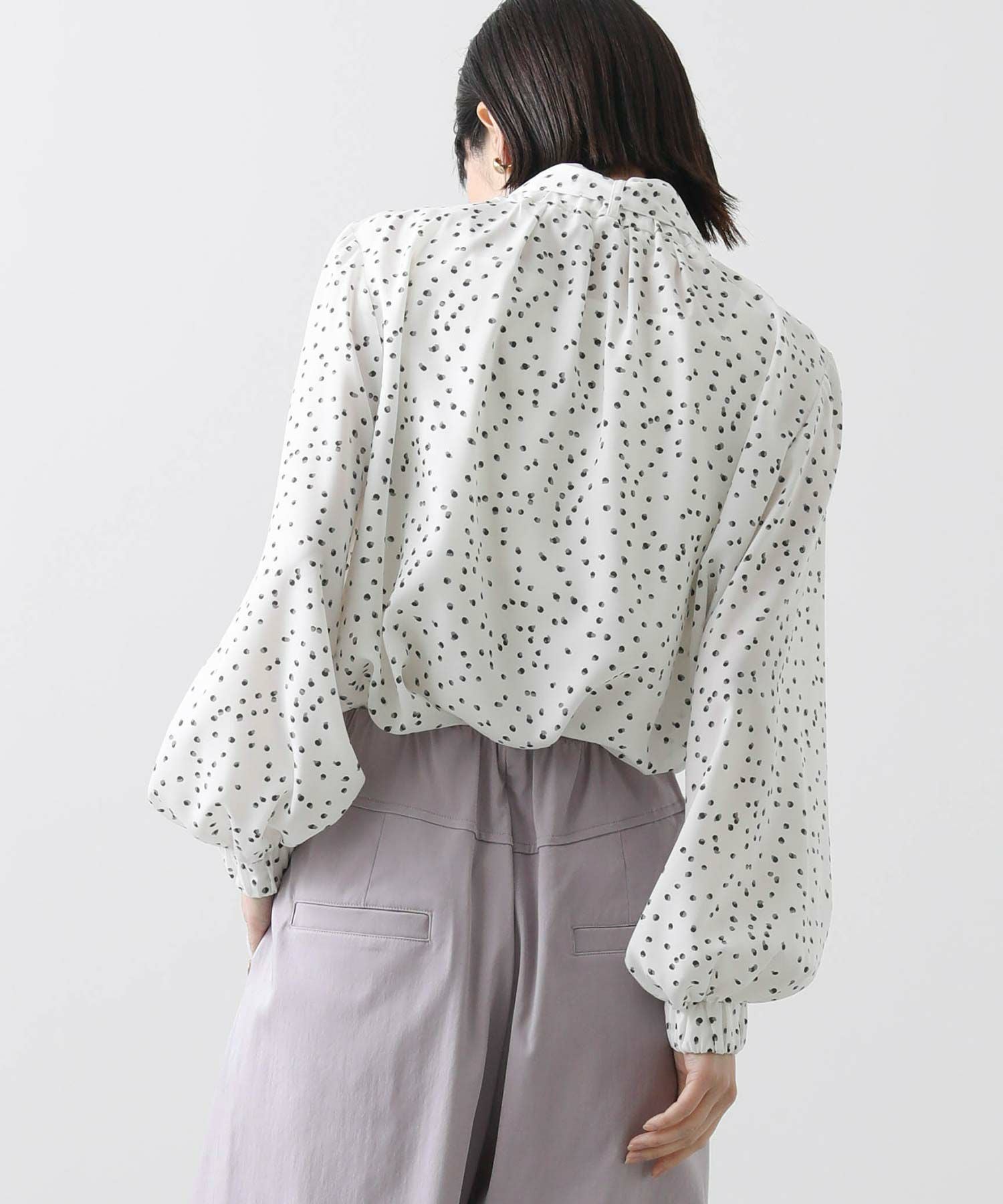 衿元のギャザー&タックデザインが顔回りを華やかに見せてくれるブラウス。
