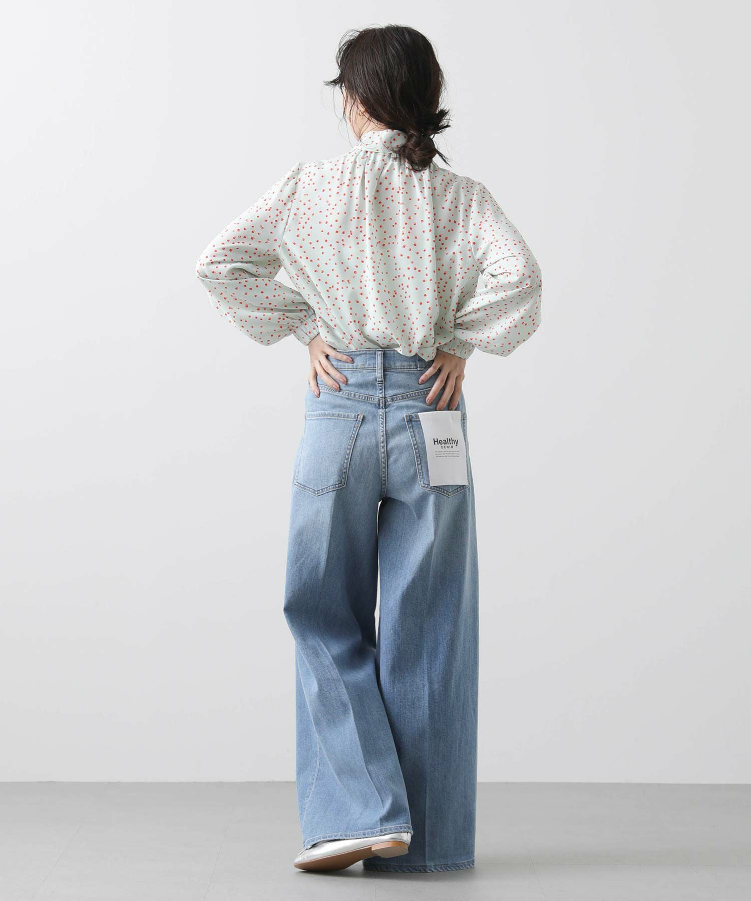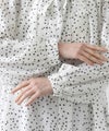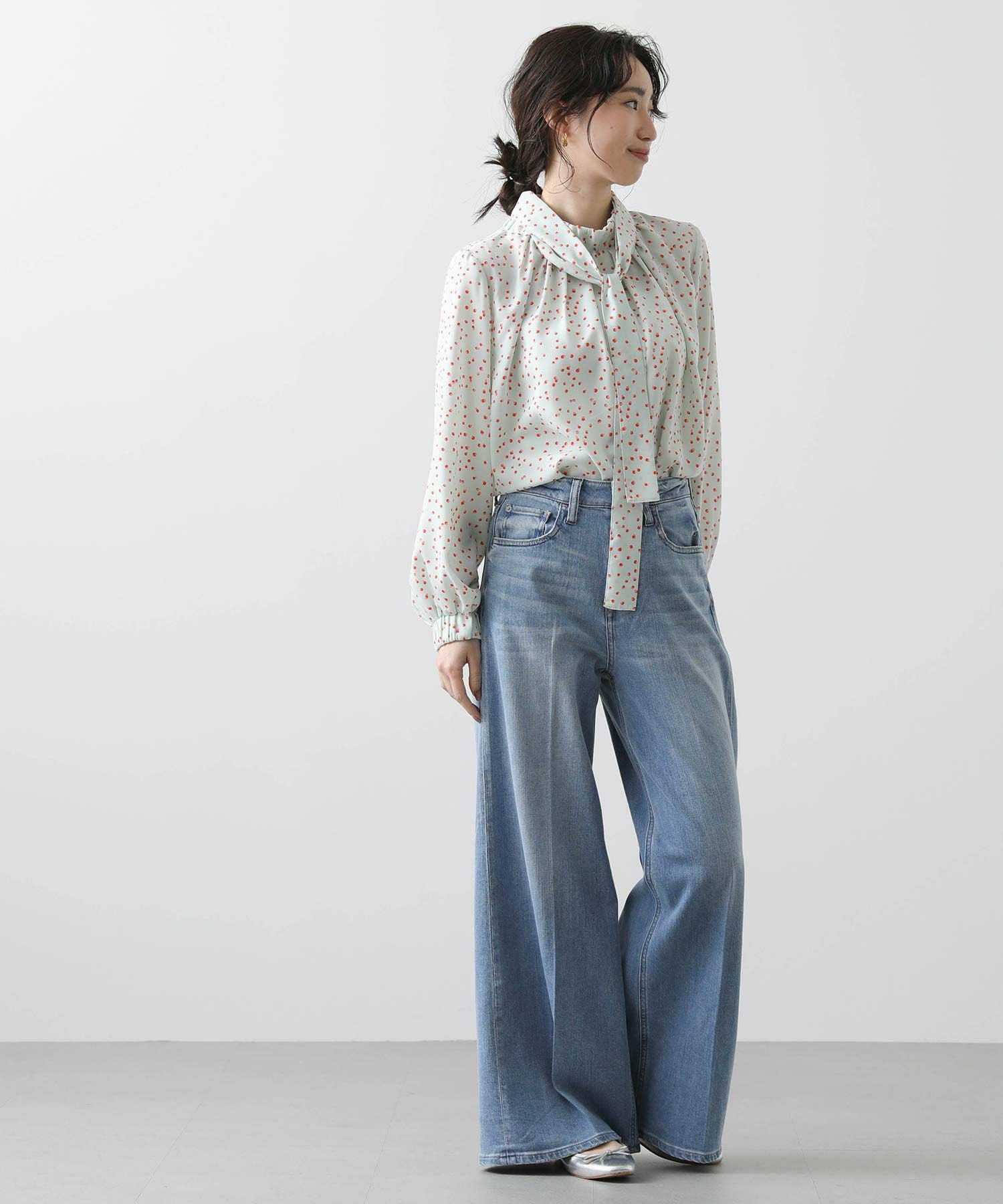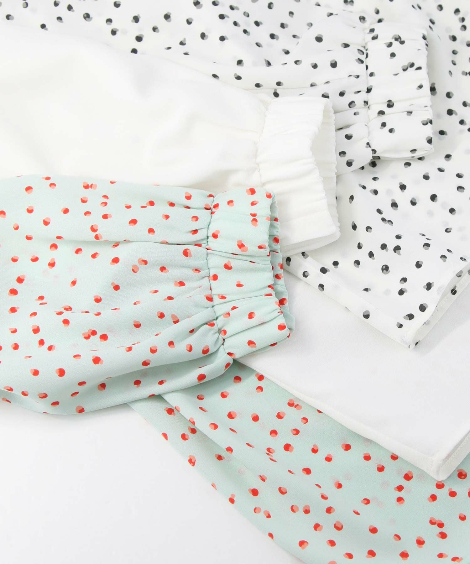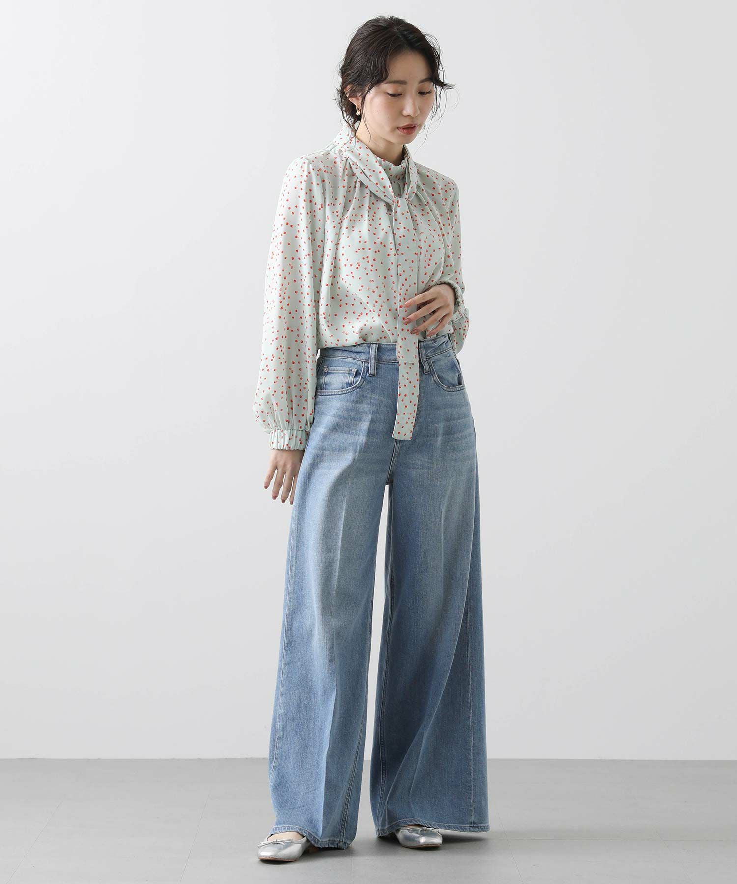 衿元のギャザー&タックデザインが顔回りを華やかに見せてくれるブラウス。