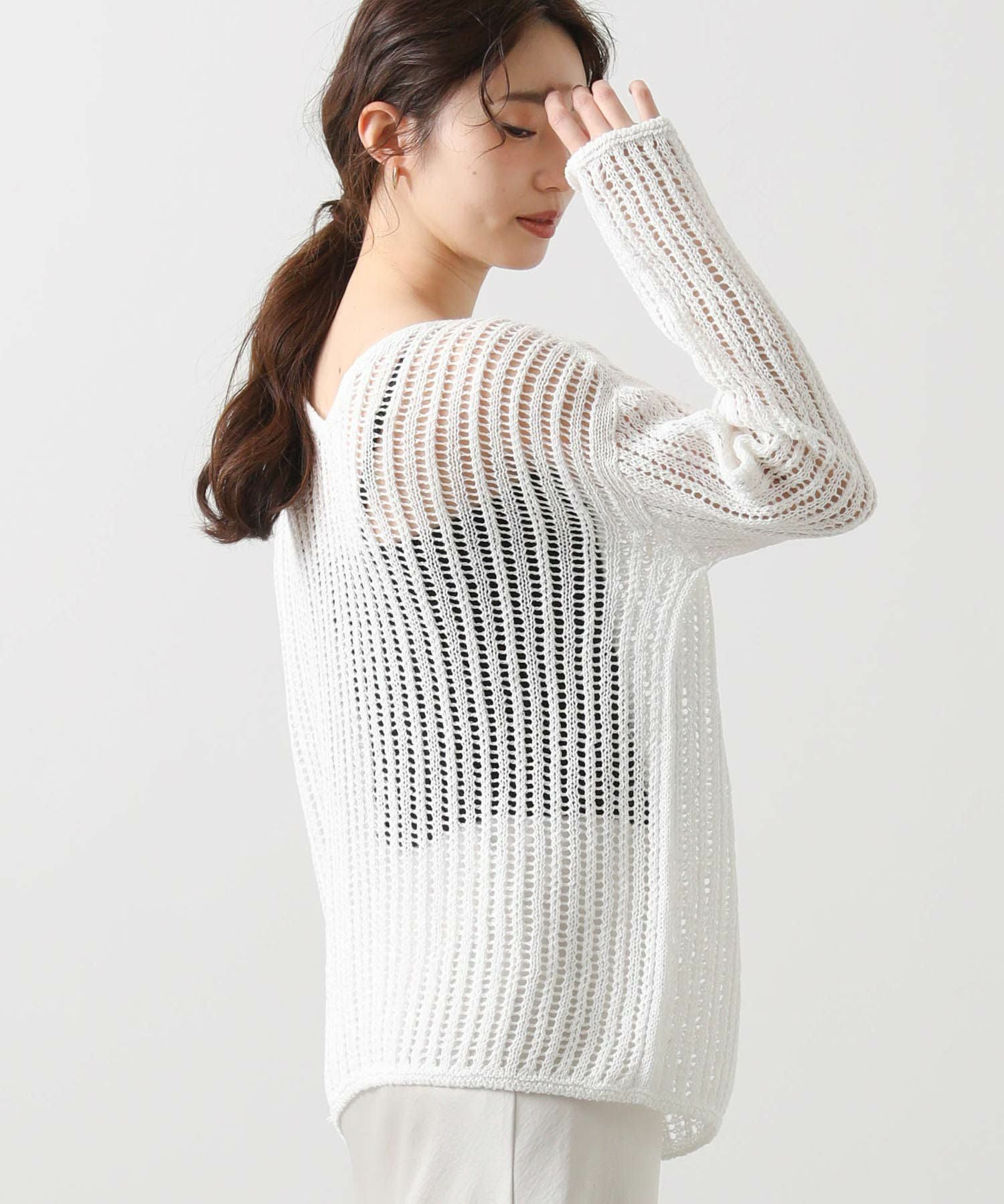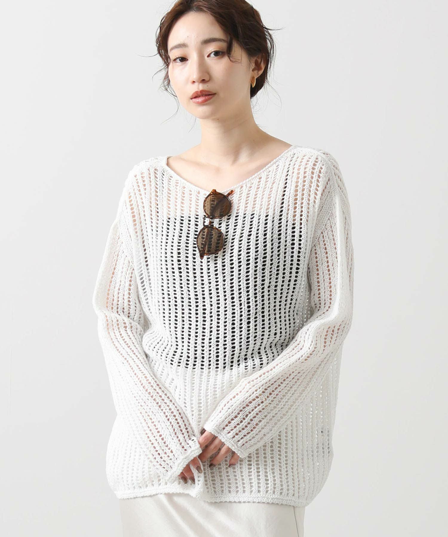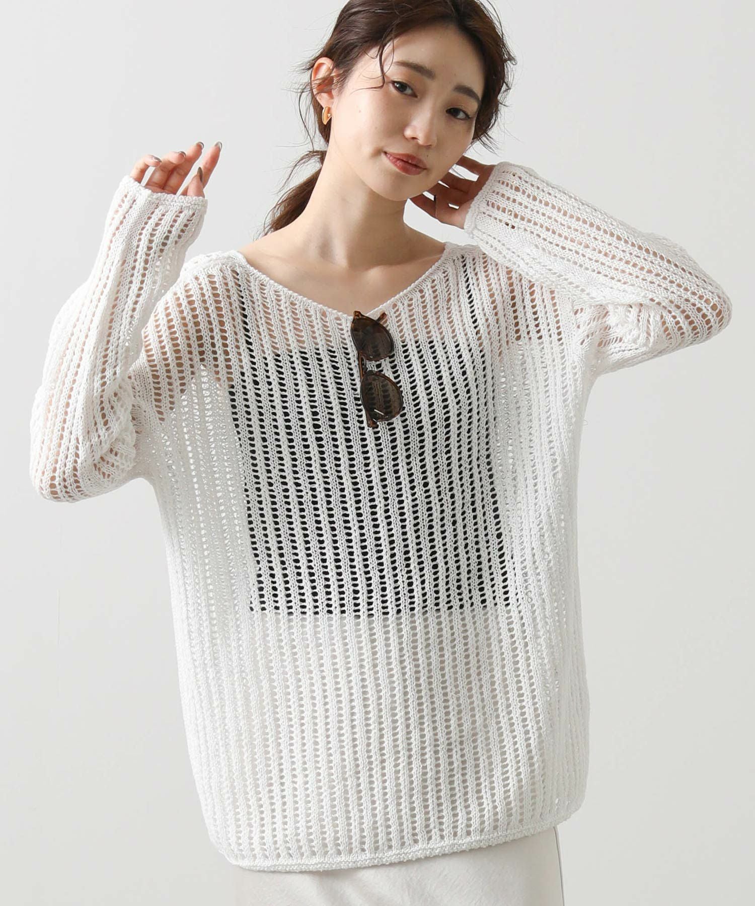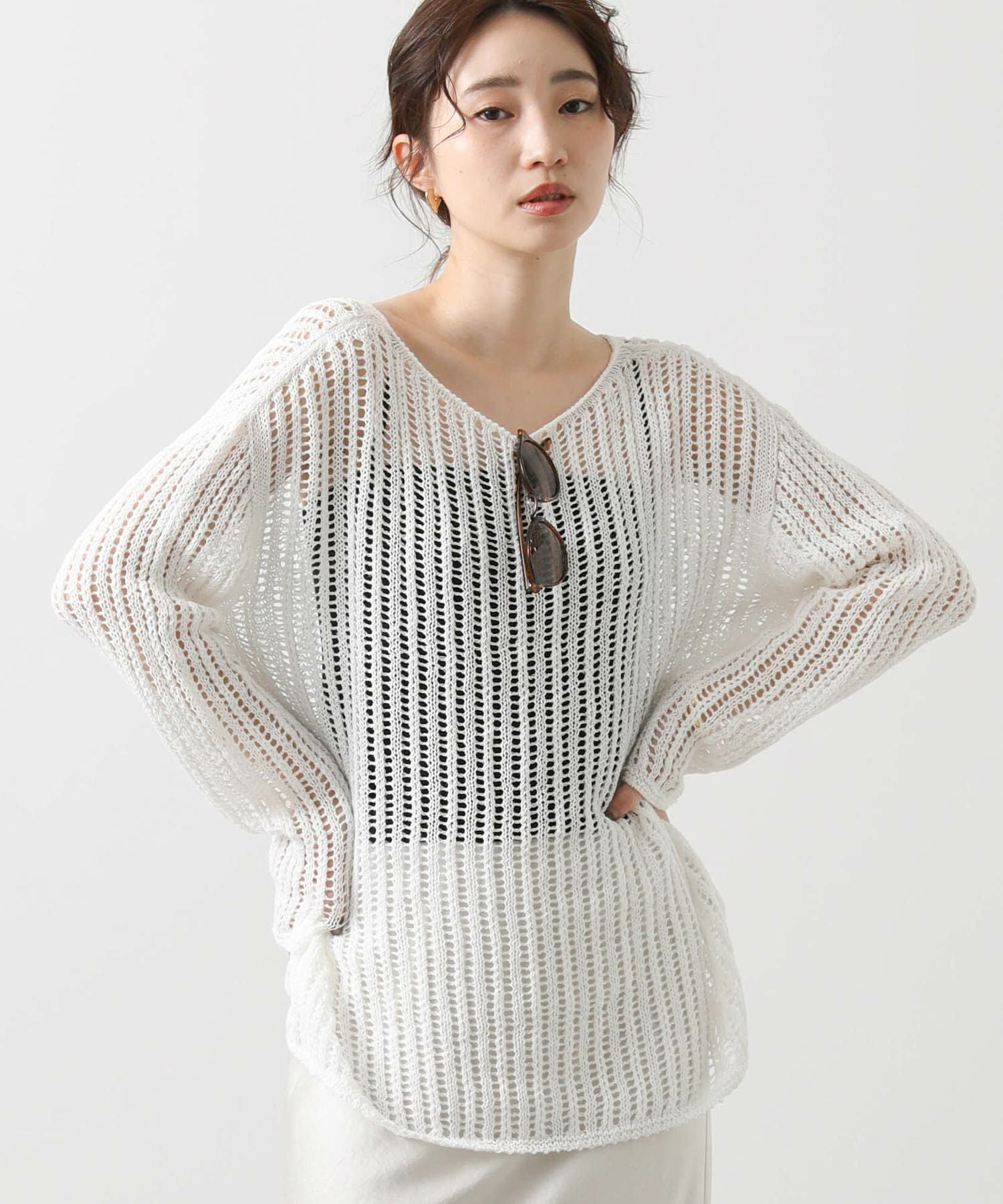 季節感あふれるコットンリネンの風合いがさわやかなメッシュニット。