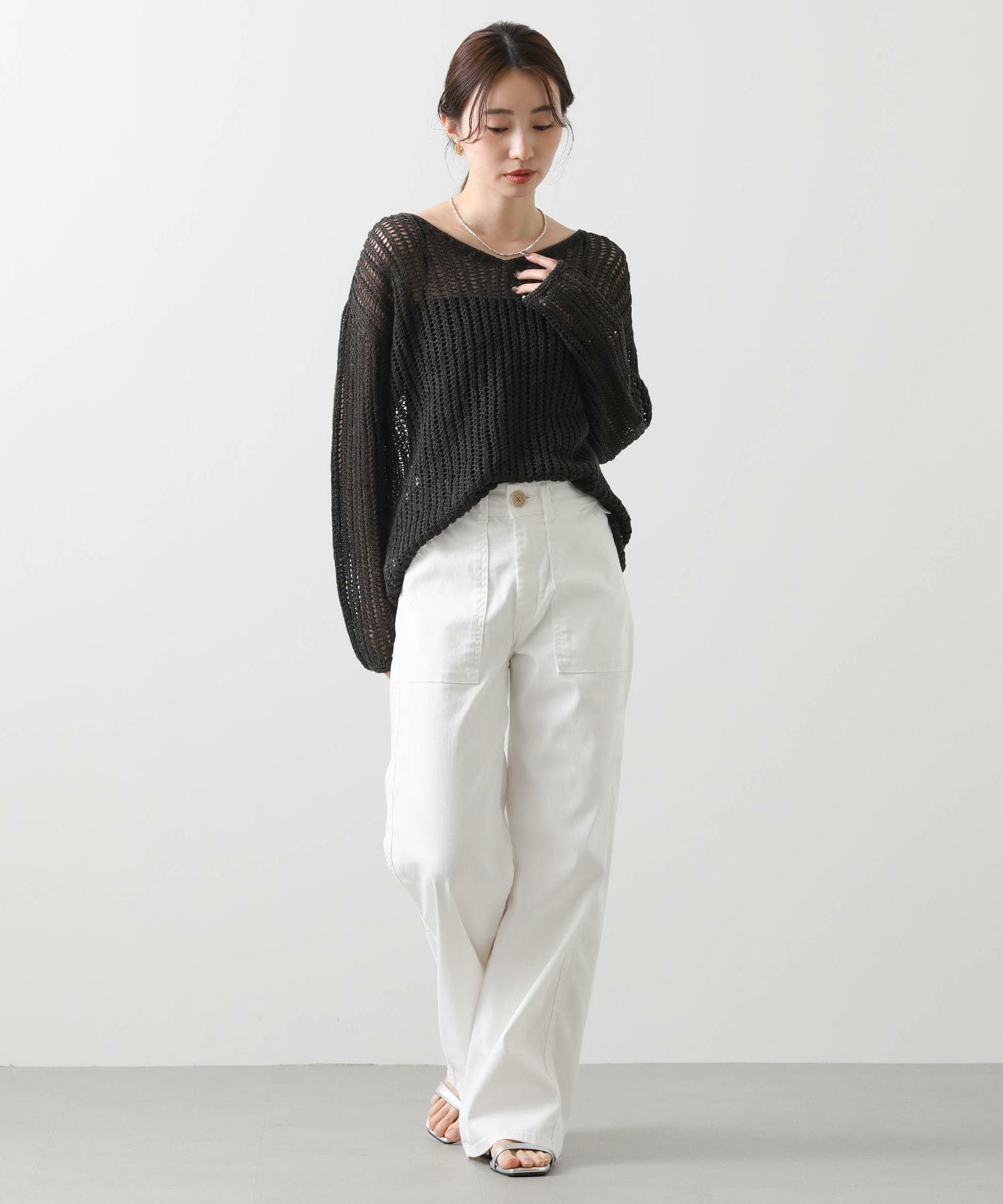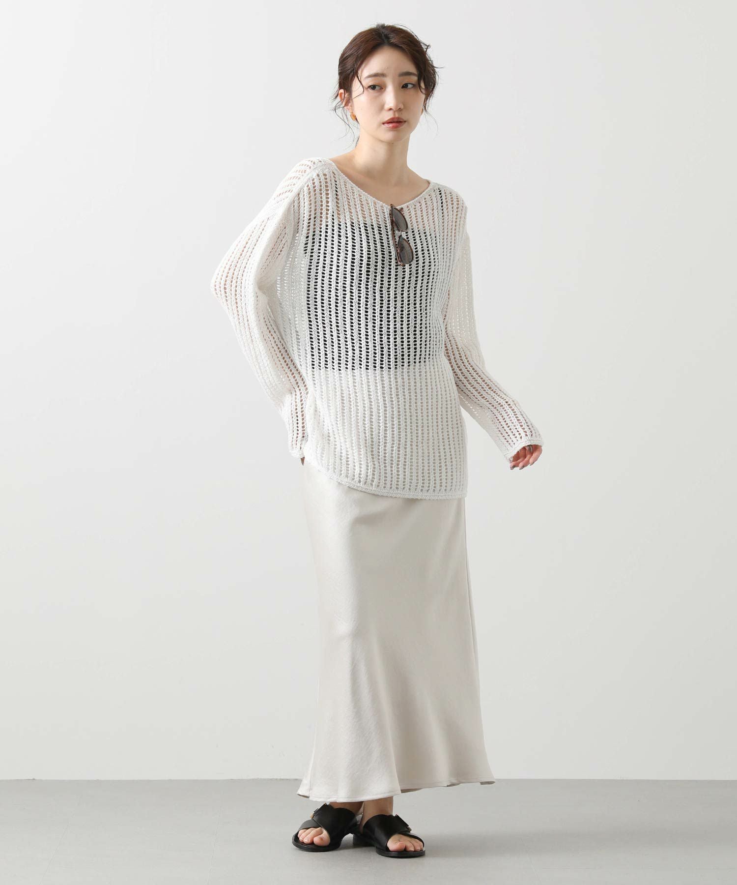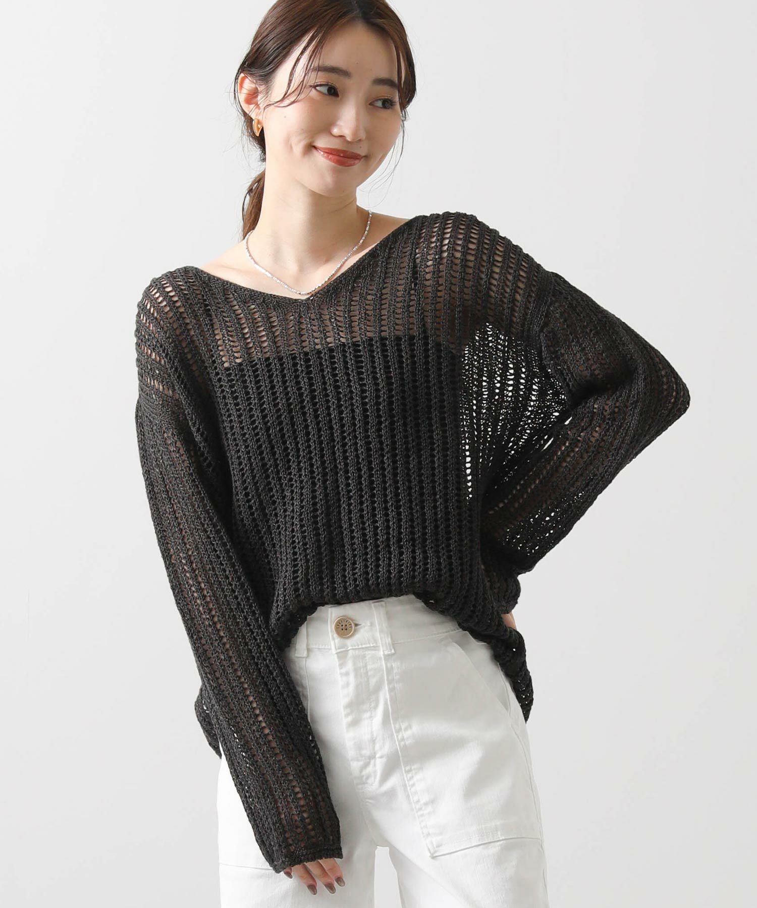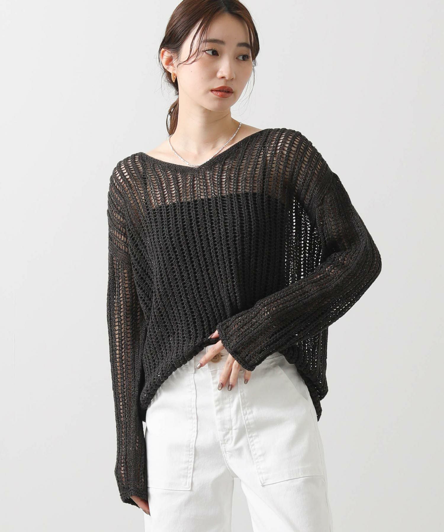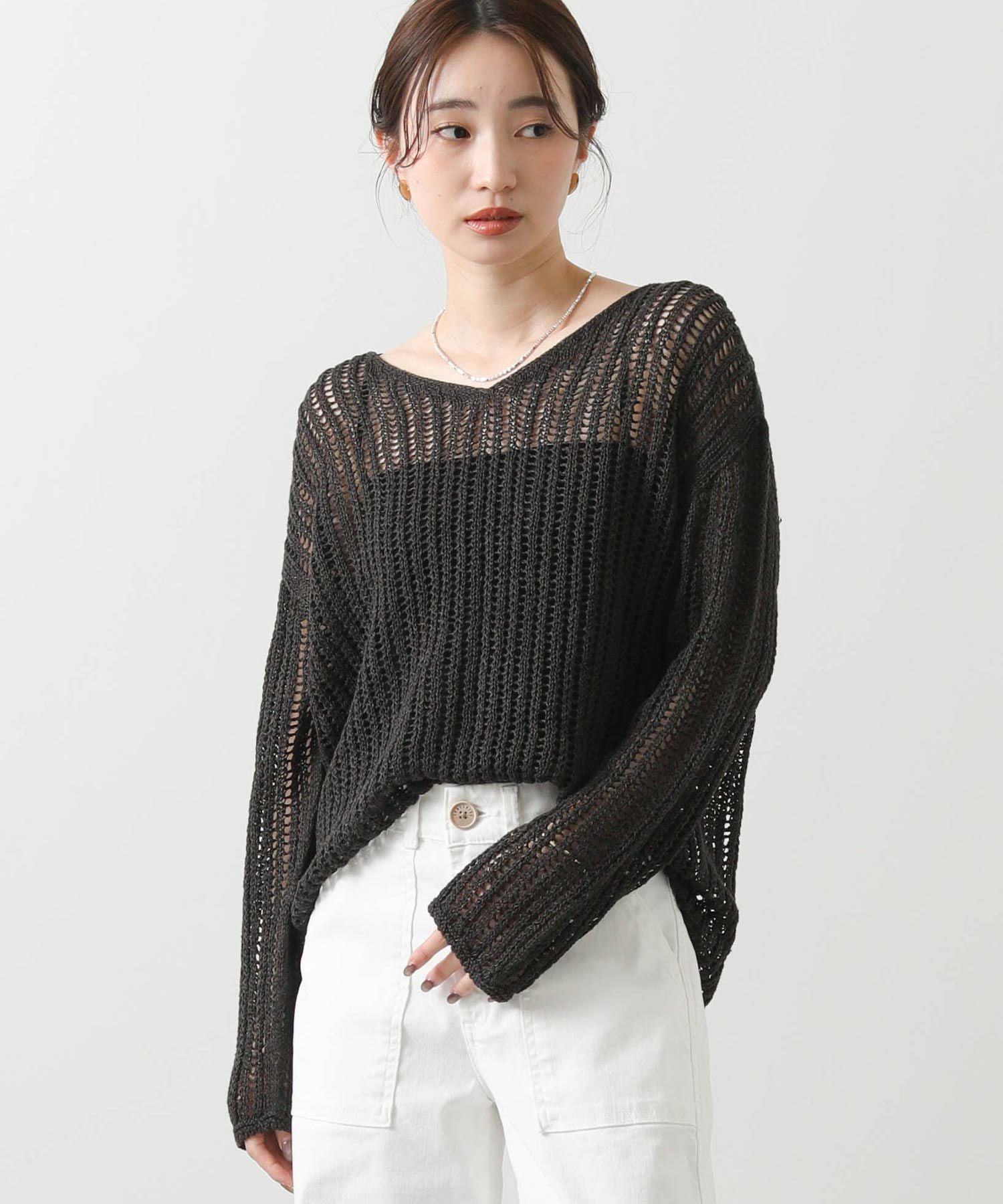 季節感あふれるコットンリネンの風合いがさわやかなメッシュニット。