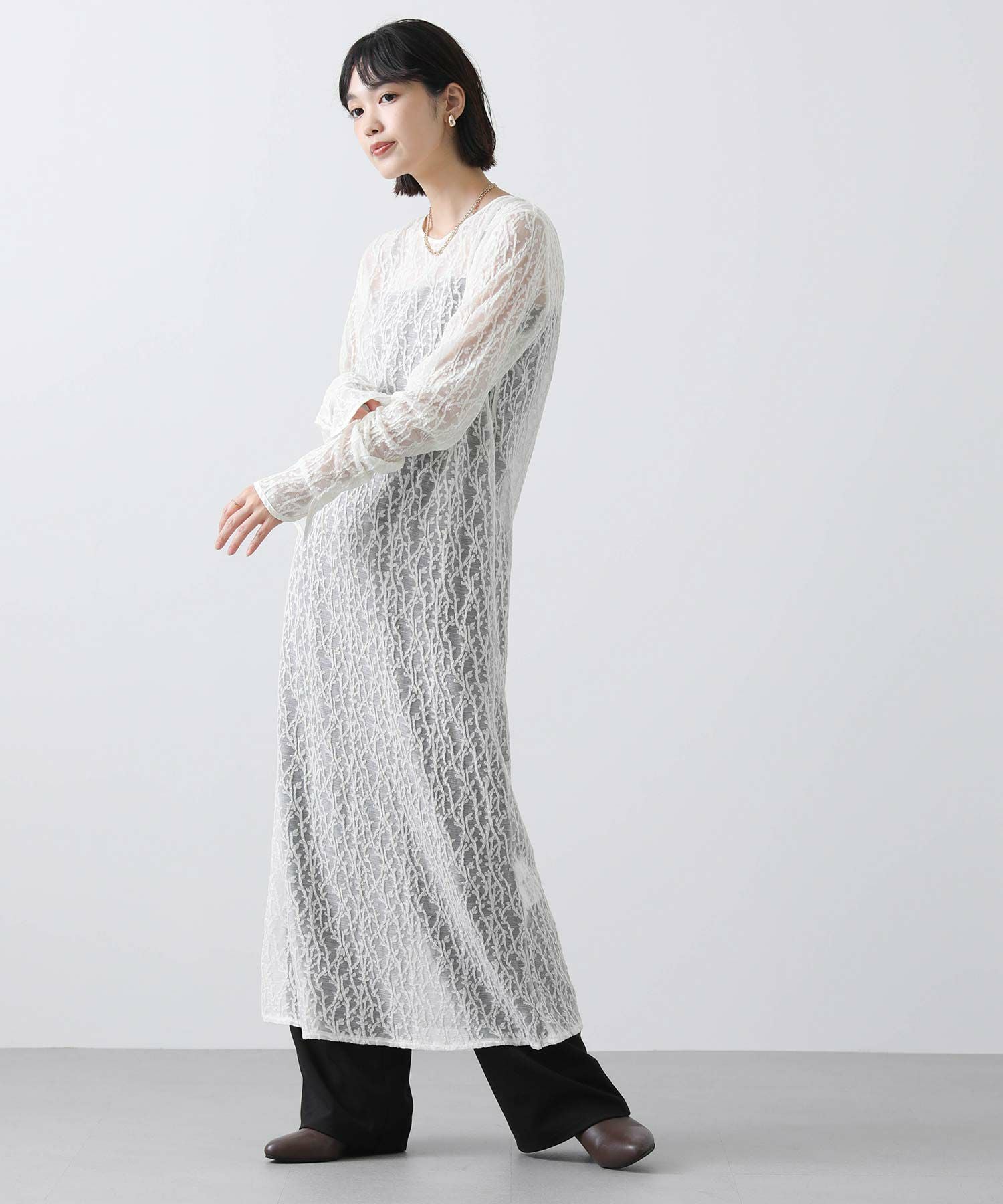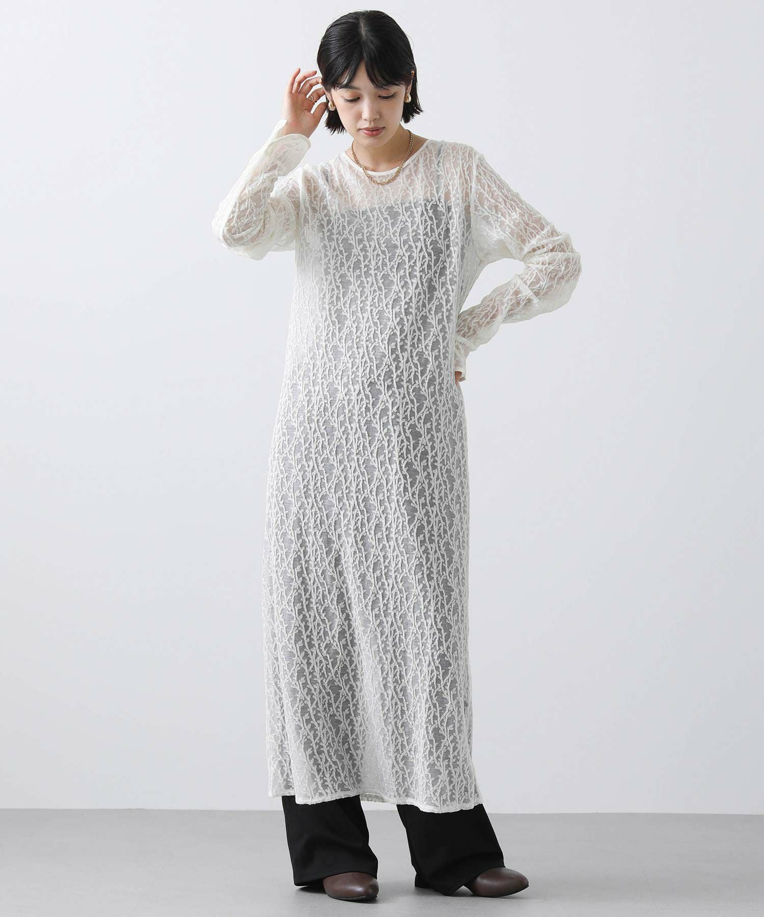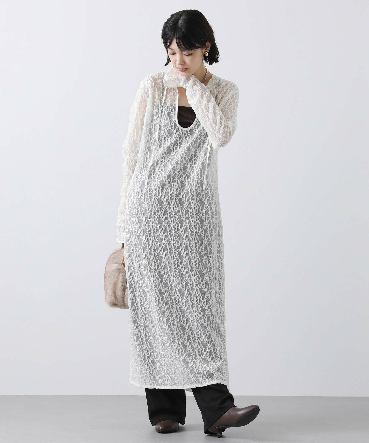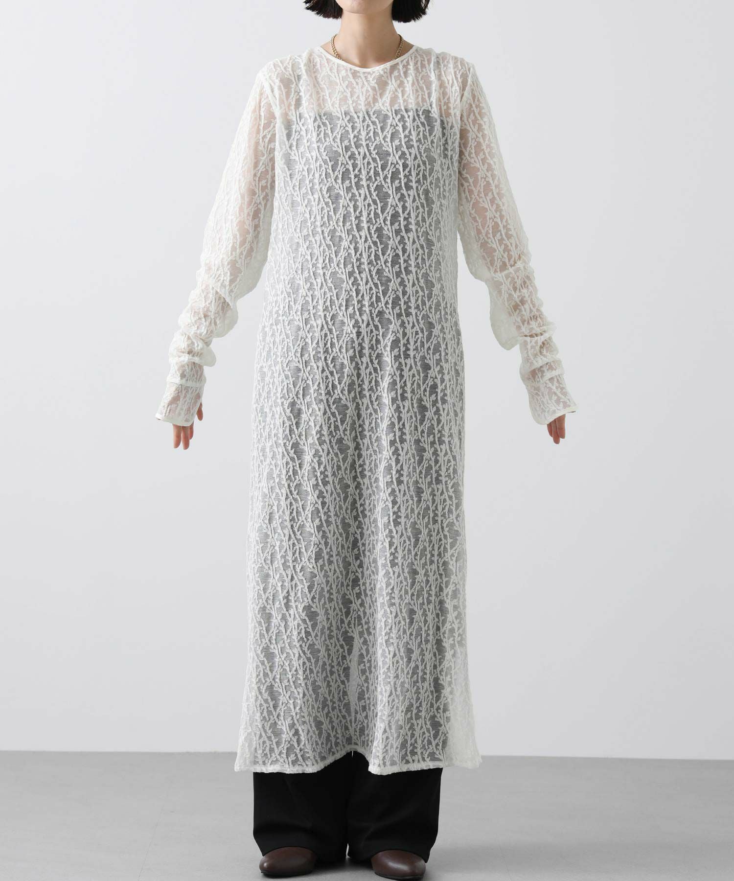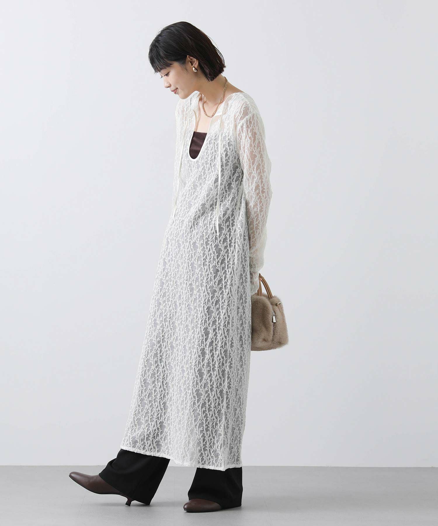 ボタニカルレースで上品な印象に仕上げたロングワンピース。