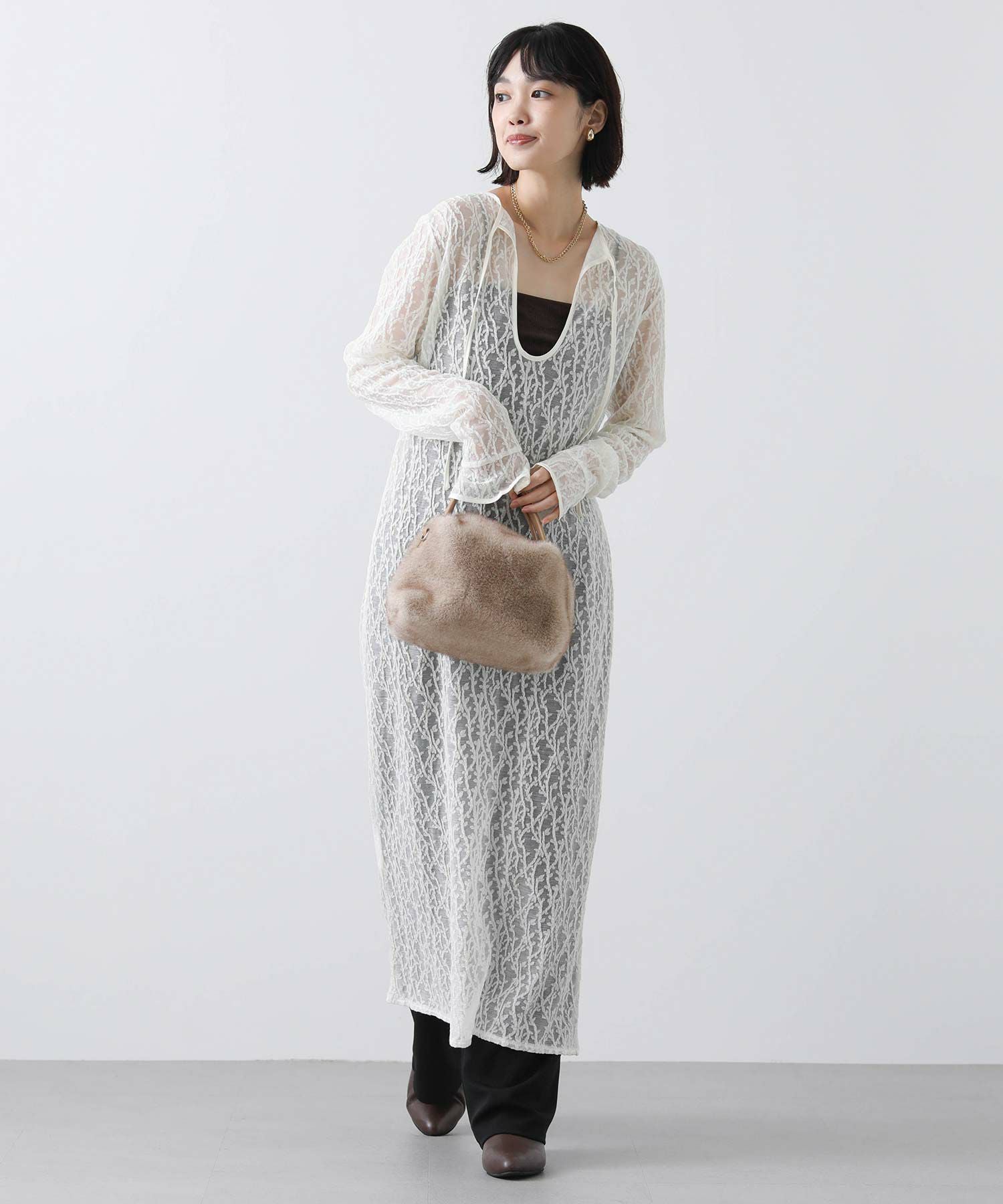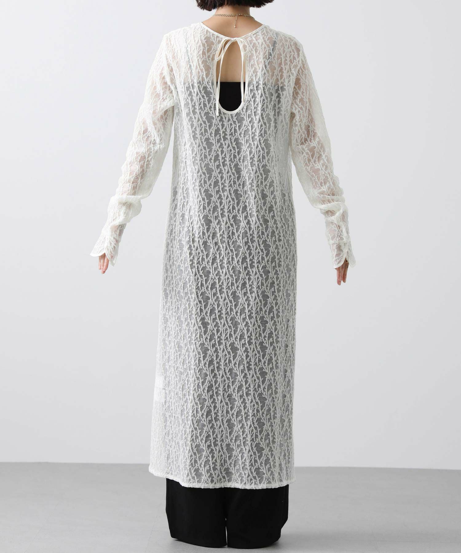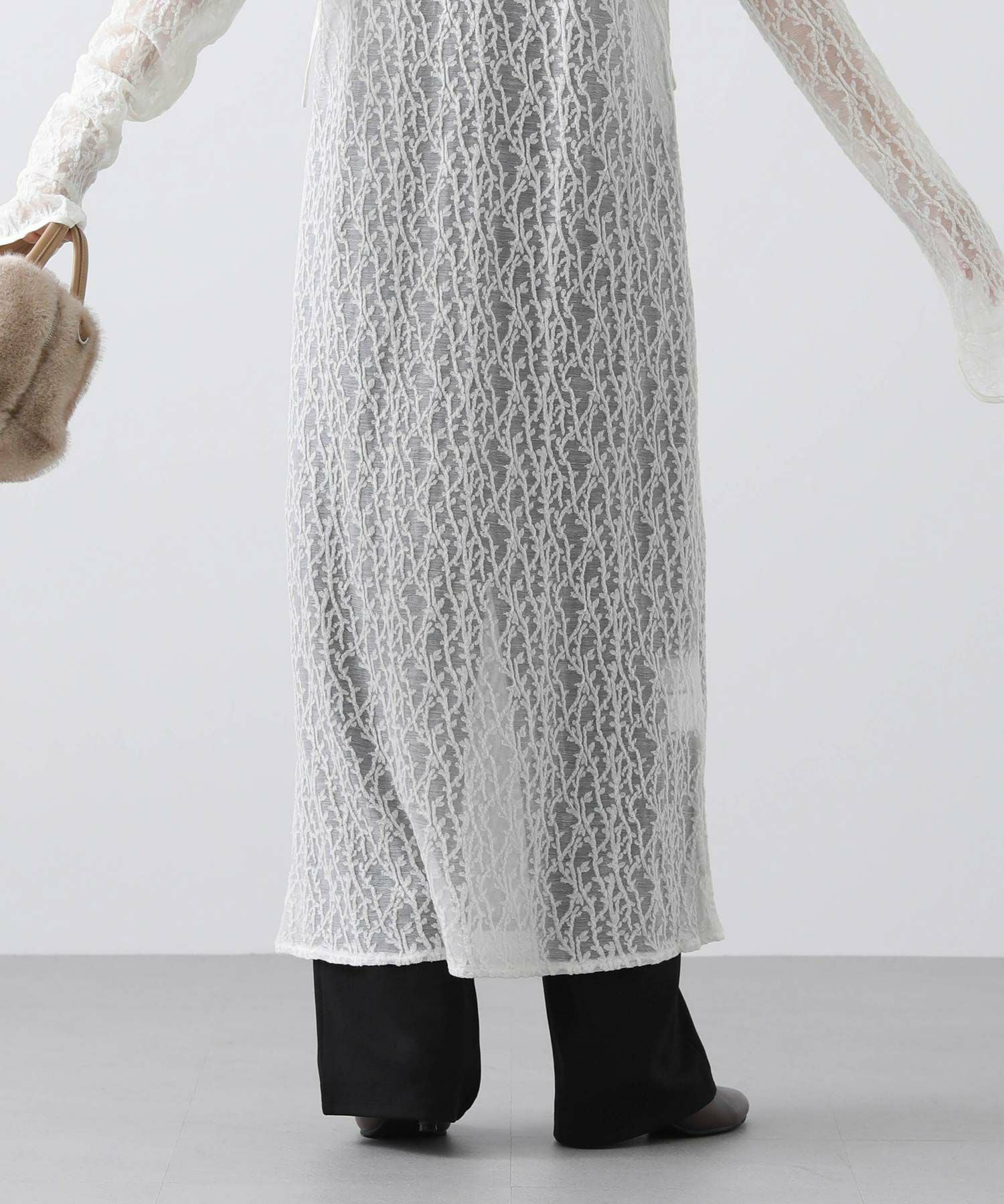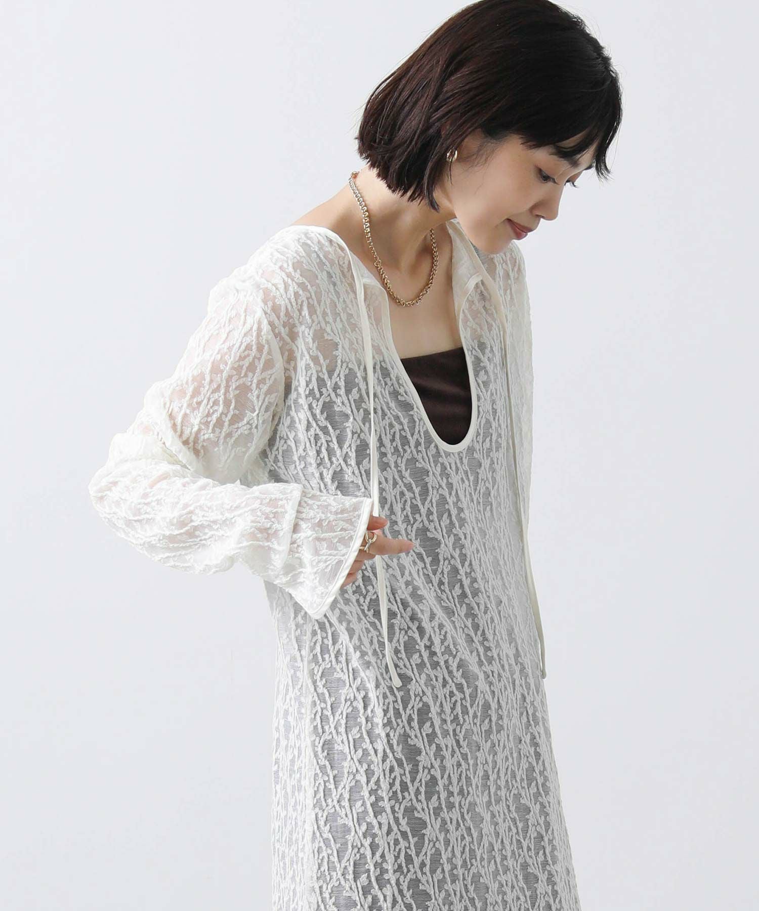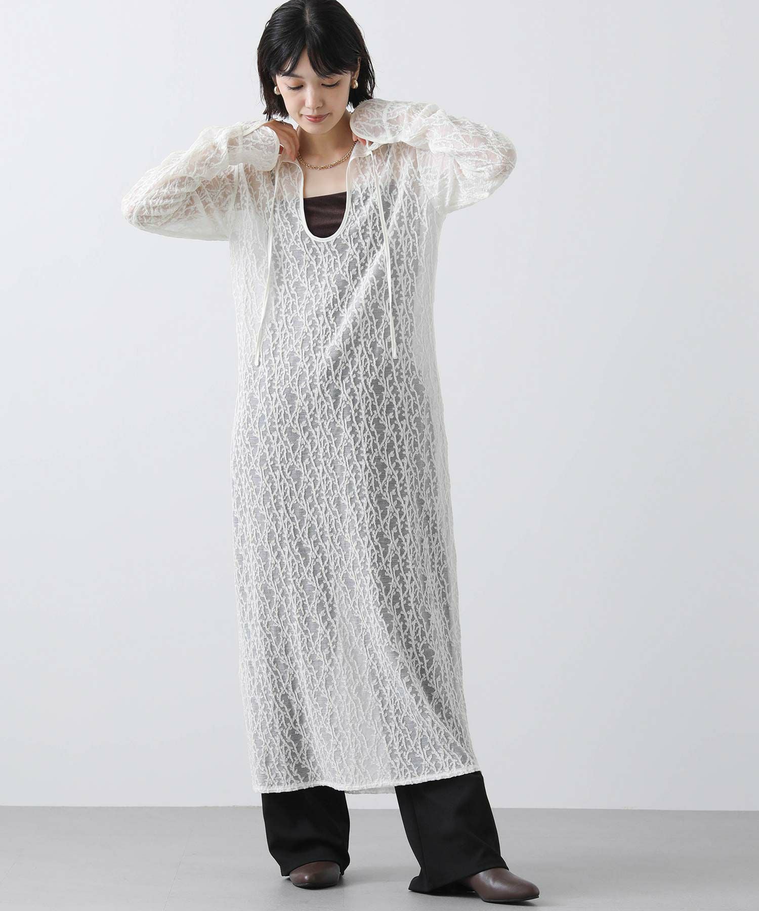 ボタニカルレースで上品な印象に仕上げたロングワンピース。