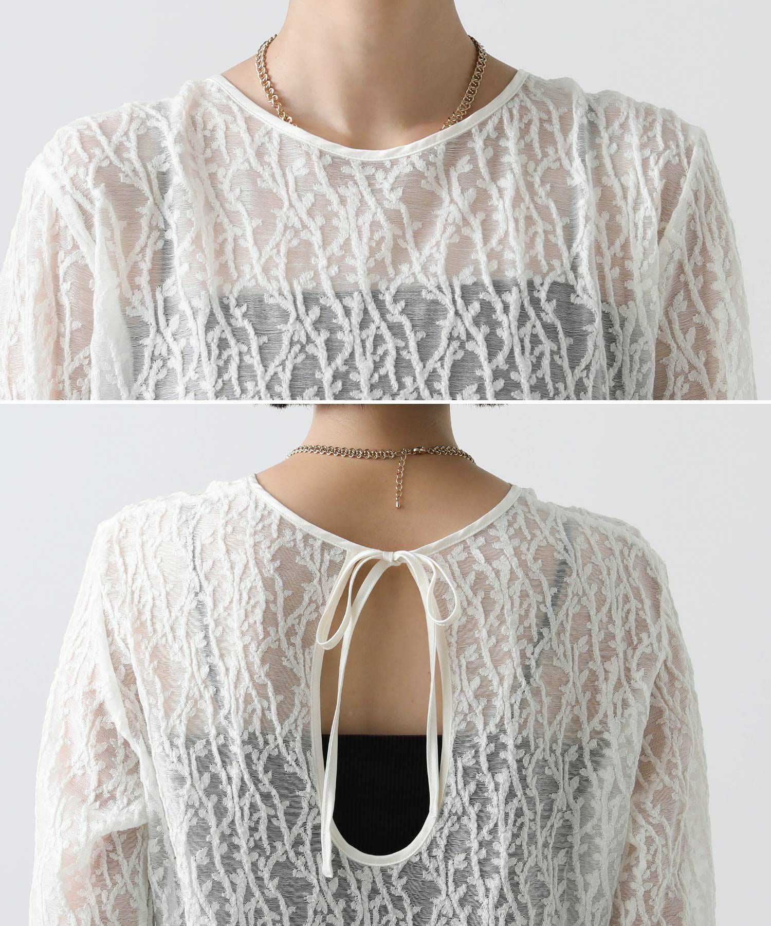 前後2WAYで着用可能でクルーネックを前にしてモードな印象や、リボン側を前にして抜け感のある印象と雰囲気を変えて楽しめます。