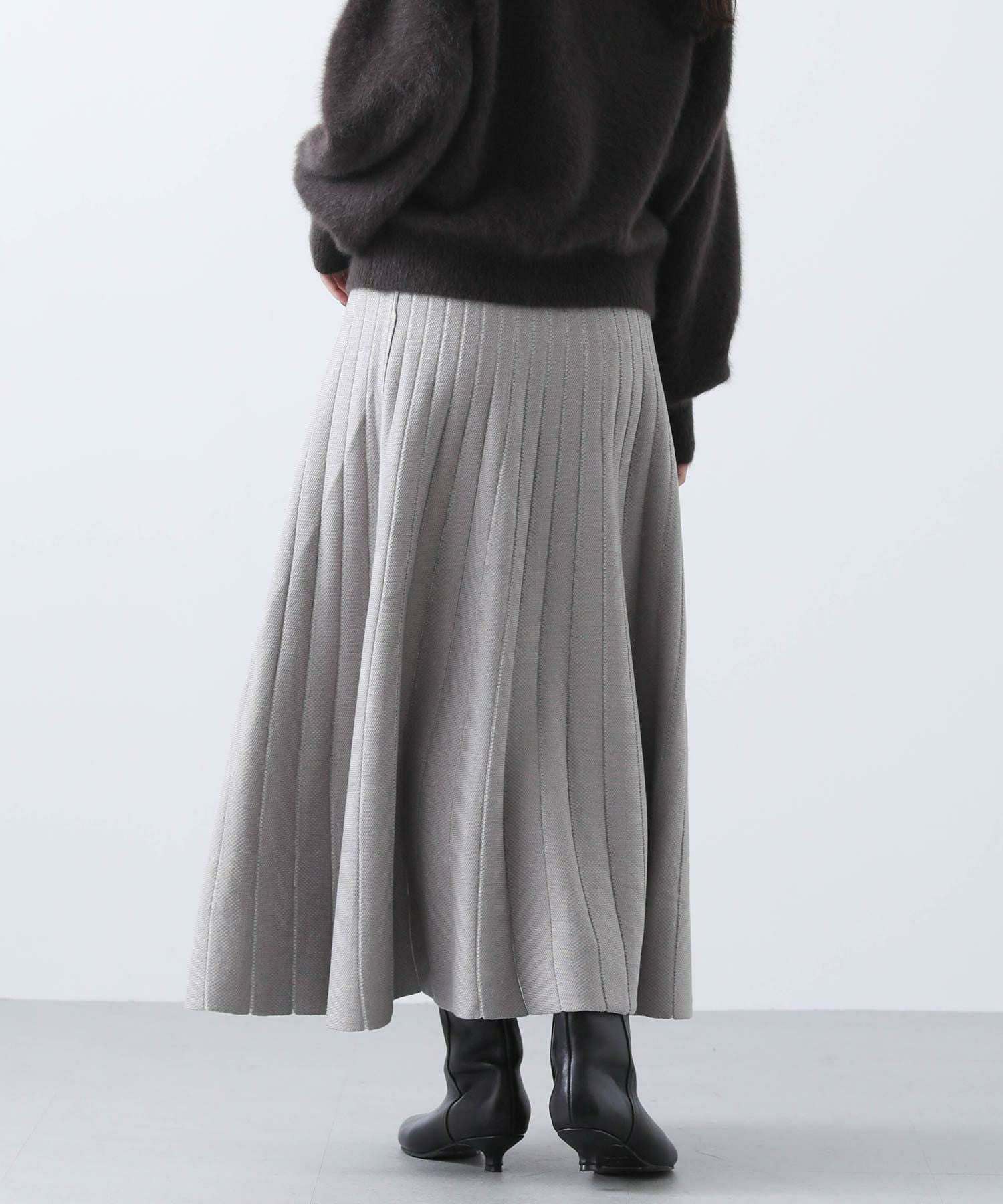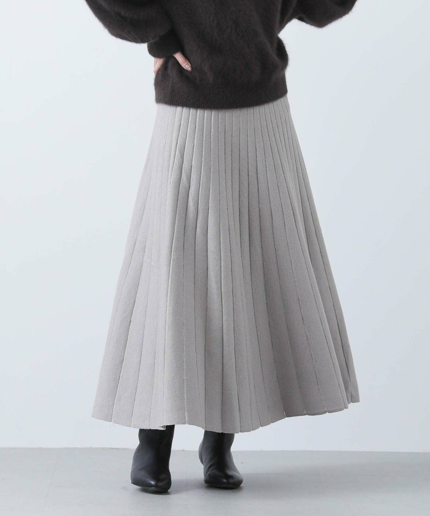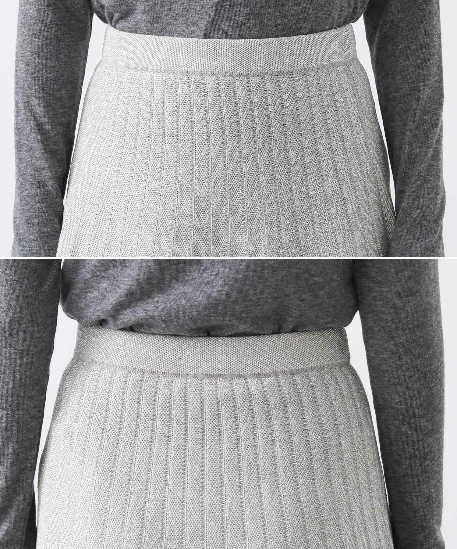 【TorrazzoDonna(トラッツォドンナ)】から、定番のニットプリーツリバーシブルスカートをセレクト。ニットで着心地が良く、編地で凹凸を出した立体的な縦ラインで細見えが叶う1枚。