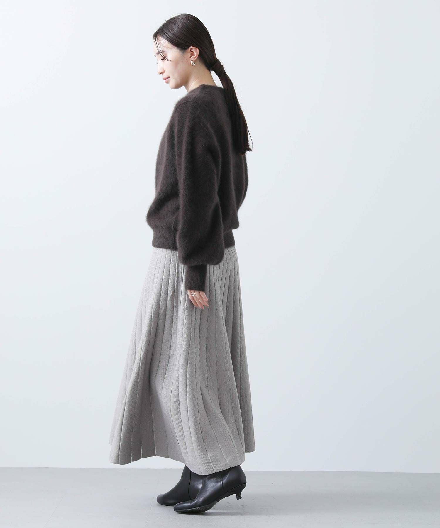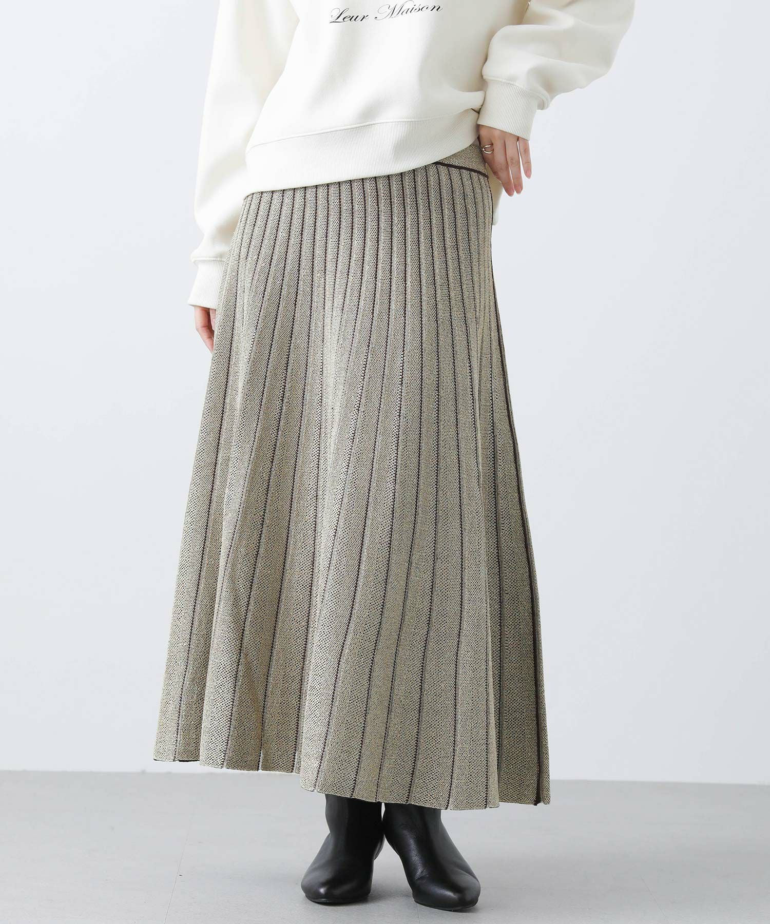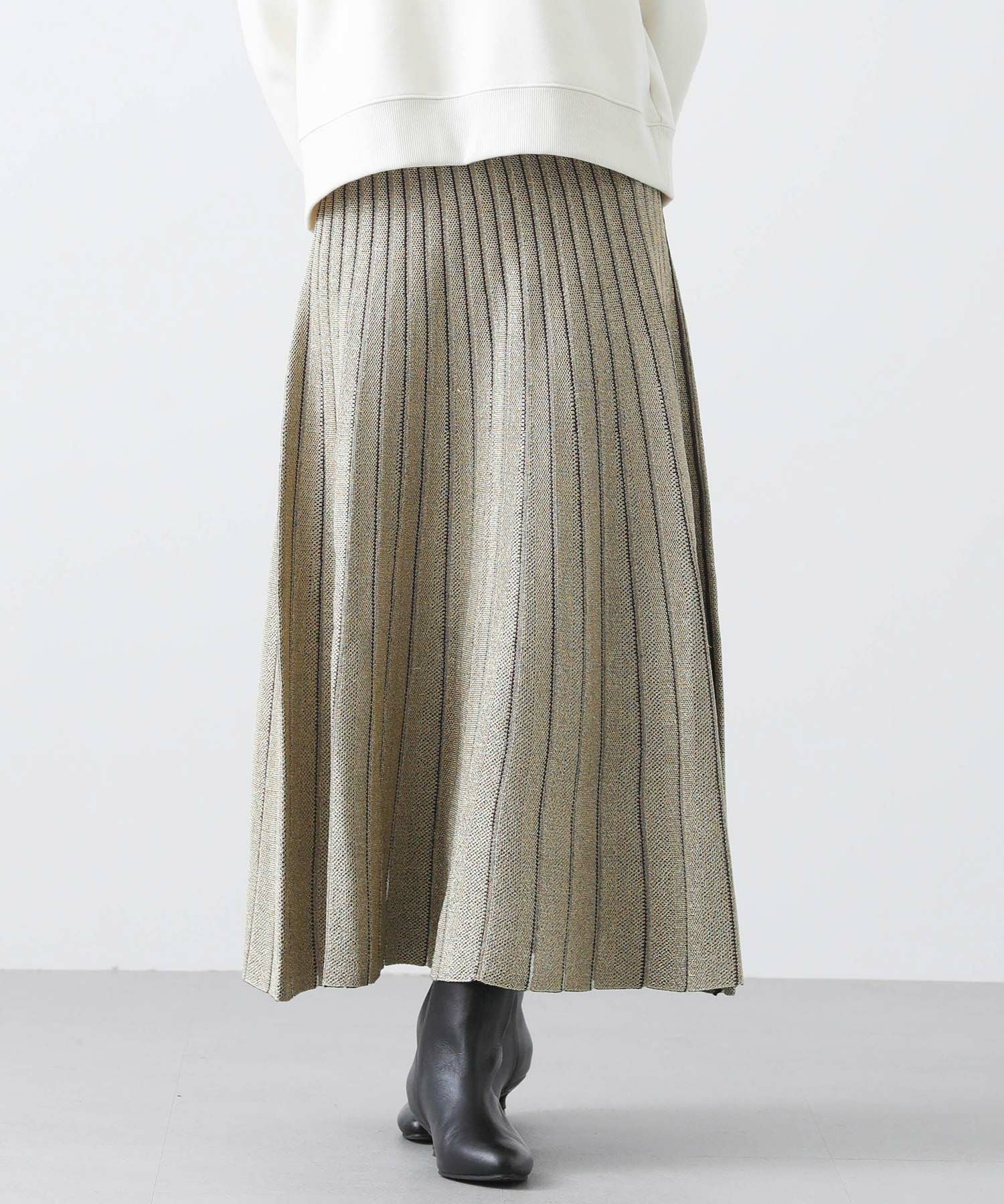 【TorrazzoDonna(トラッツォドンナ)】から、定番のニットプリーツリバーシブルスカートをセレクト。ニットで着心地が良く、編地で凹凸を出した立体的な縦ラインで細見えが叶う1枚。