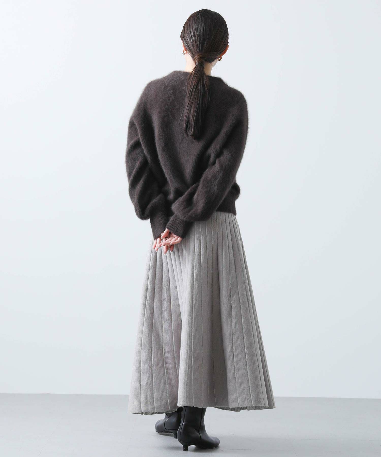 ニットのプロフェッショナルとして、まとう人がより美しくなり、着心地の良さを感じてもらえるよう徹底的にこだわったシルエット。