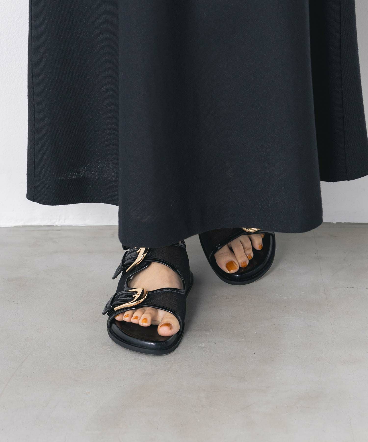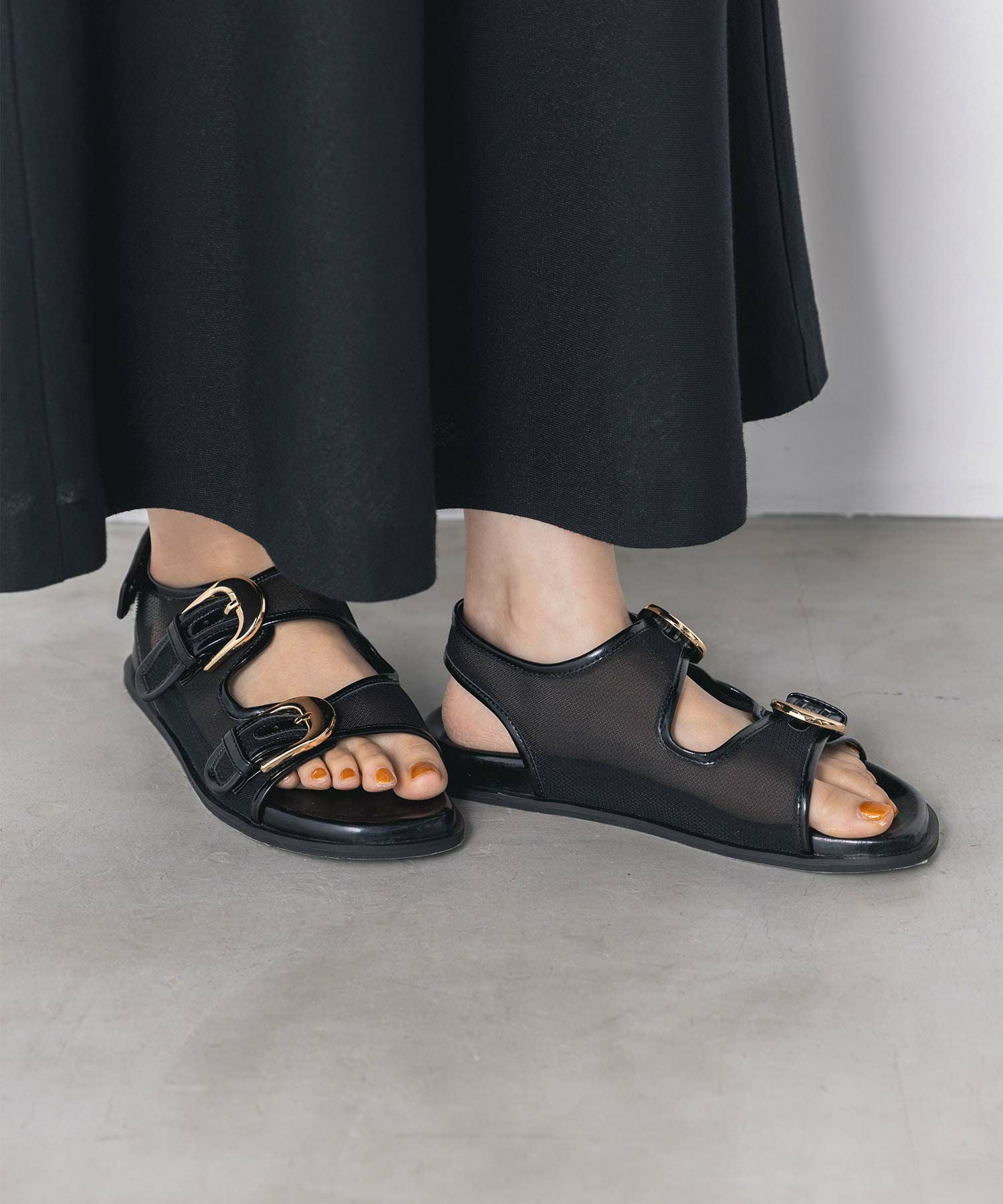 程よいシアー感で足元に適度な抜け感が出ます。かかともベルトありで安定感のある履き心地。長時間のお出掛けにもおすすめです。