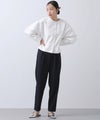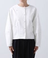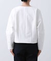 ノーカラーデザインなので、襟元が華やかなブラウスとのレイヤードやカジュアルなカットソーの気軽な羽織としても活躍します。