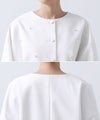 ボリュームのある袖が綺麗に収まるゆったりとしたアームホールで程よく伸縮性のあるマットな表面感が特徴のポンチ素材を使用。