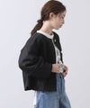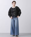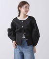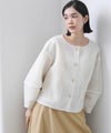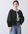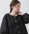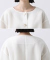 ノーカラーデザインで顔周りはスッキリ見え、金ボタンが上品さをプラスしアクセントに。