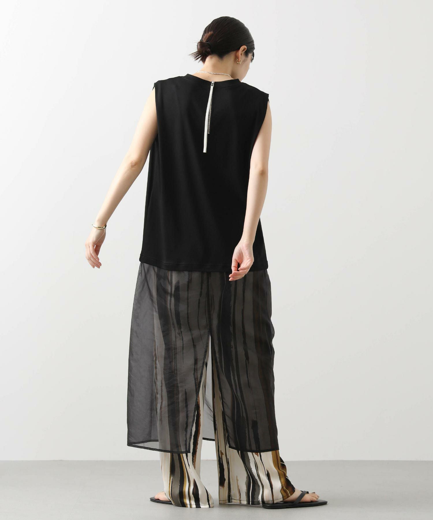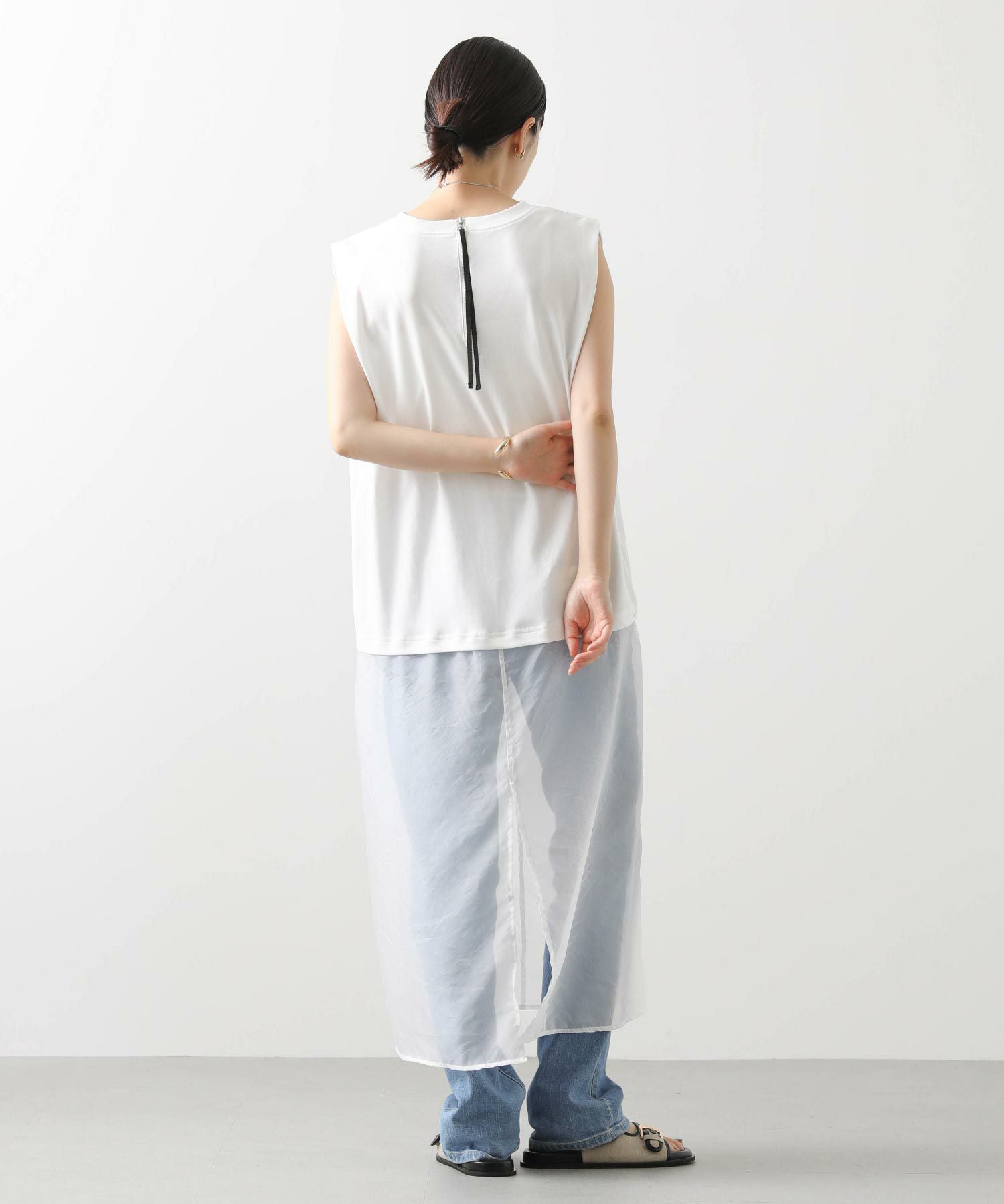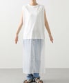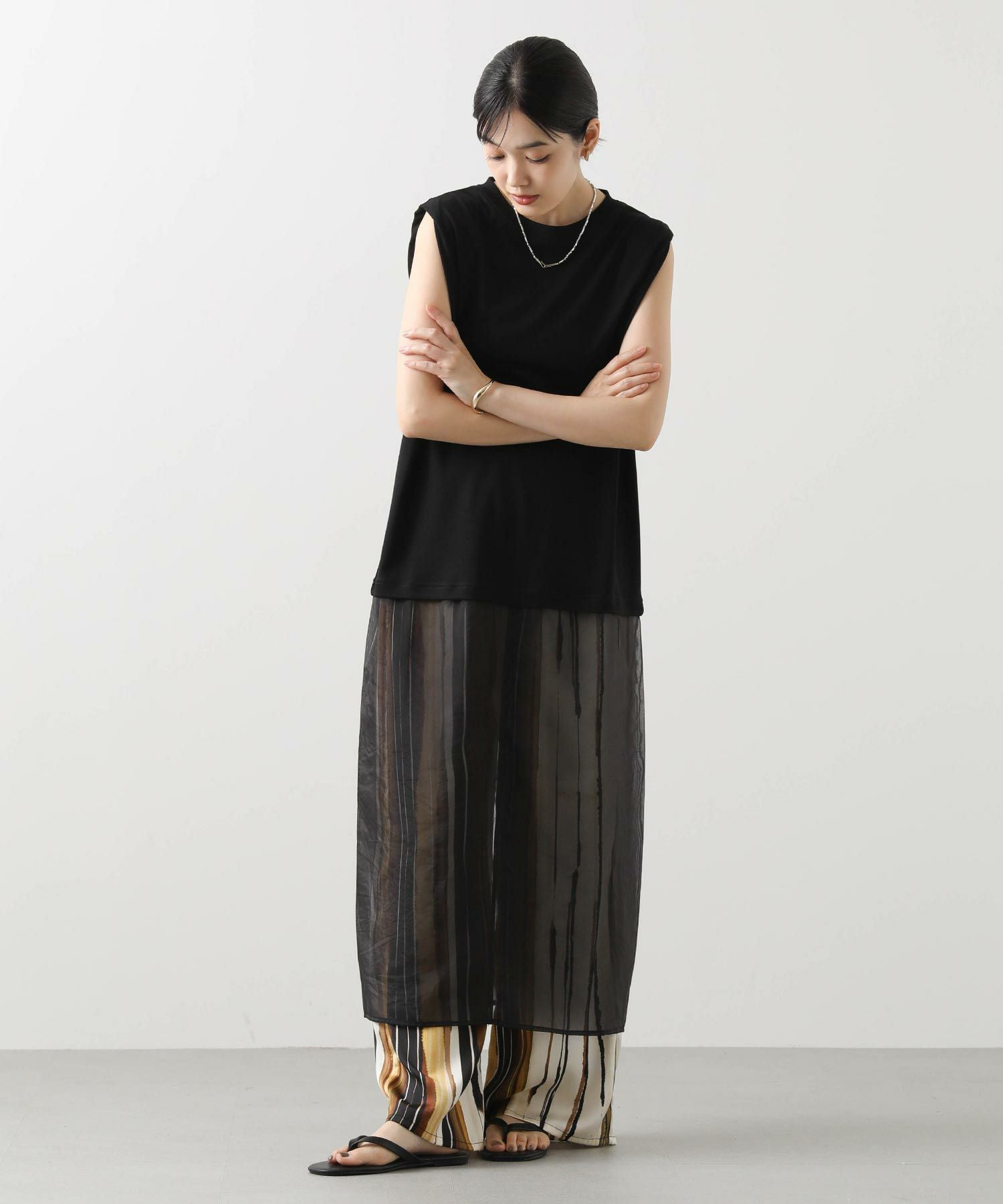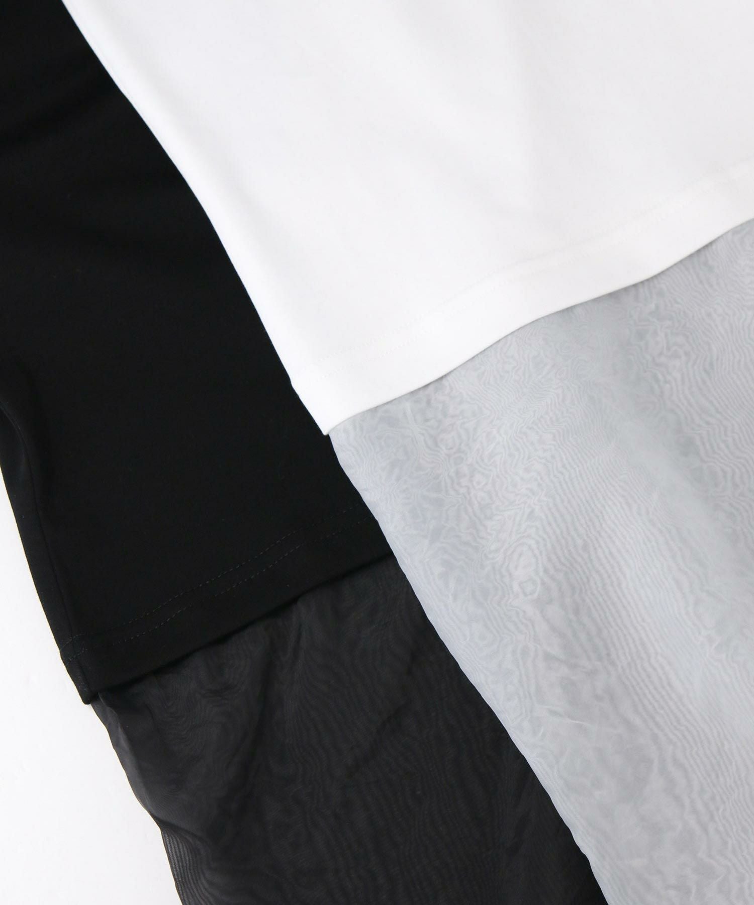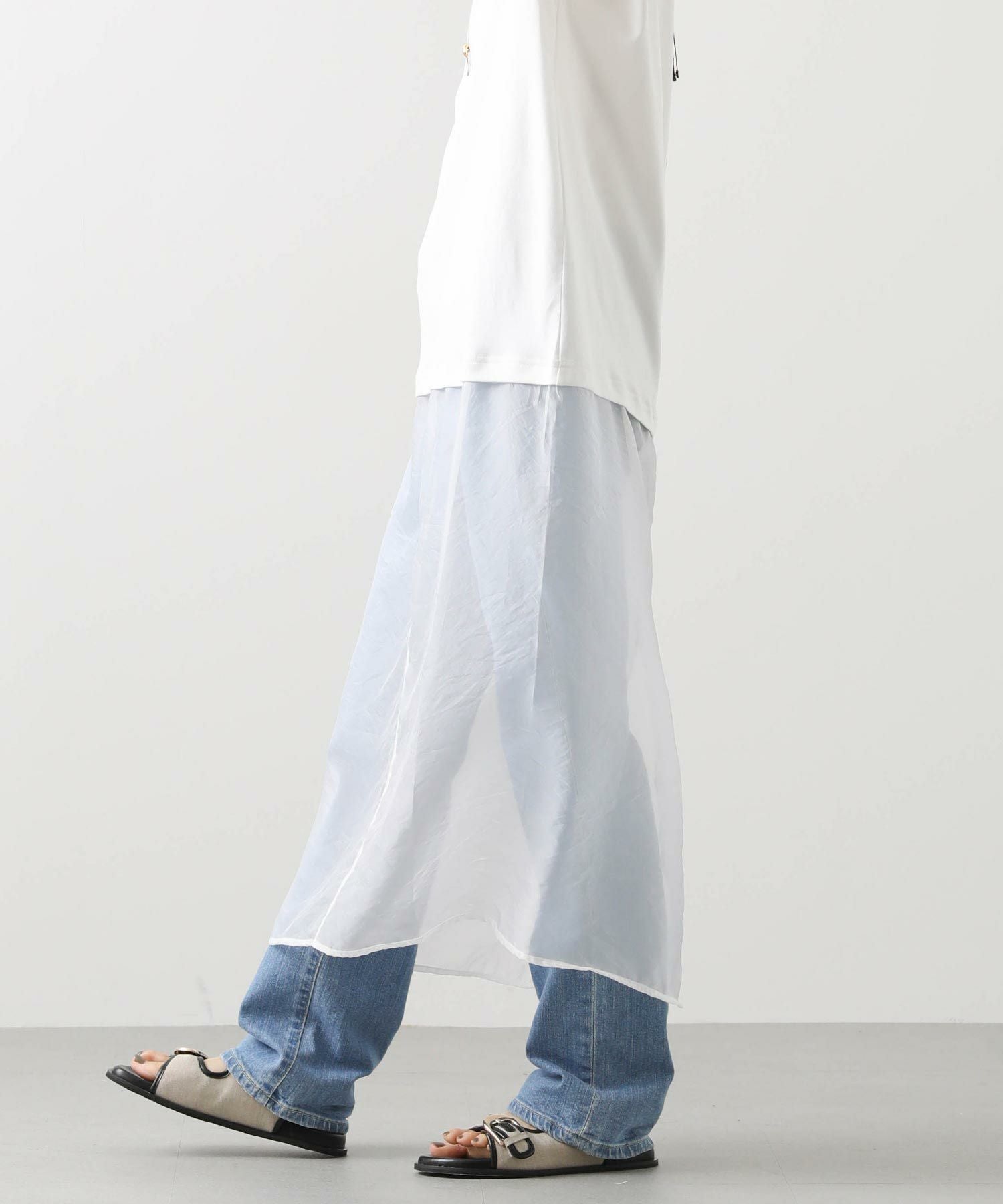 トレンドのシアースカートを重ねたようなデザインがサマになる1枚。