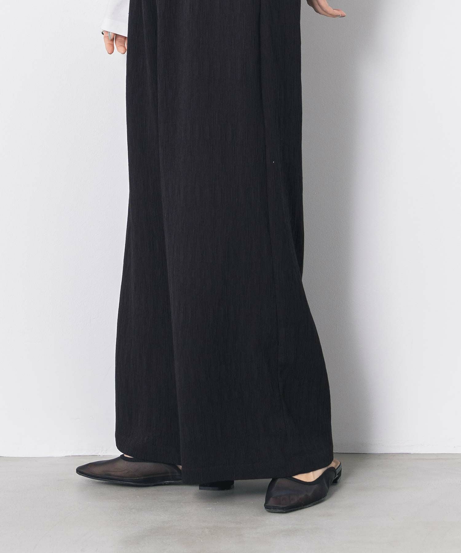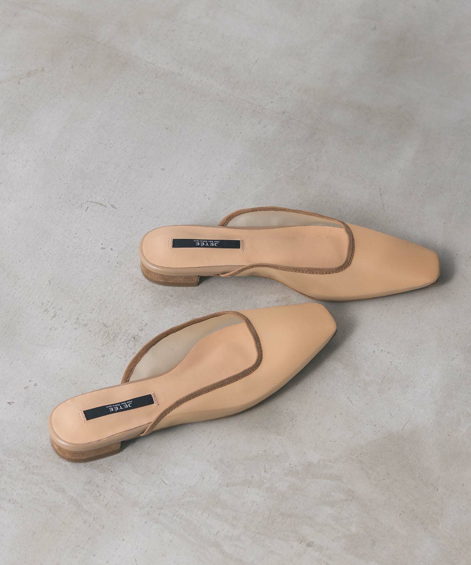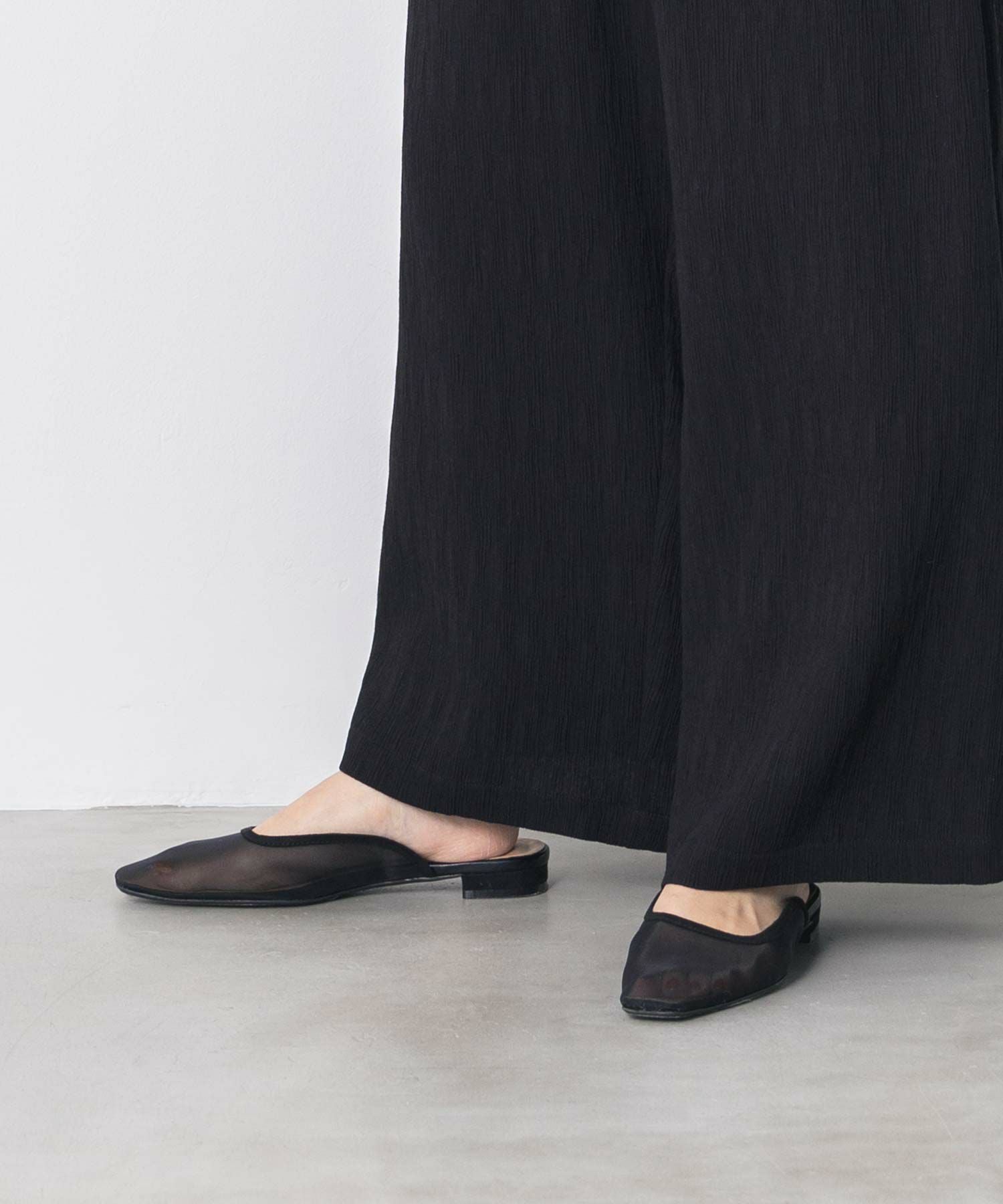 今季のテーマでもある“シアーと軽さ”をフェミニンに表現したフラットシューズ。