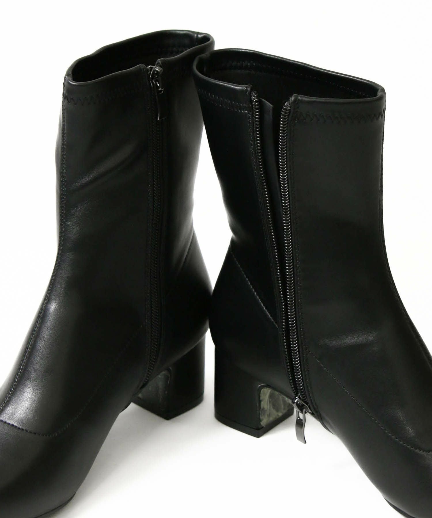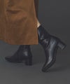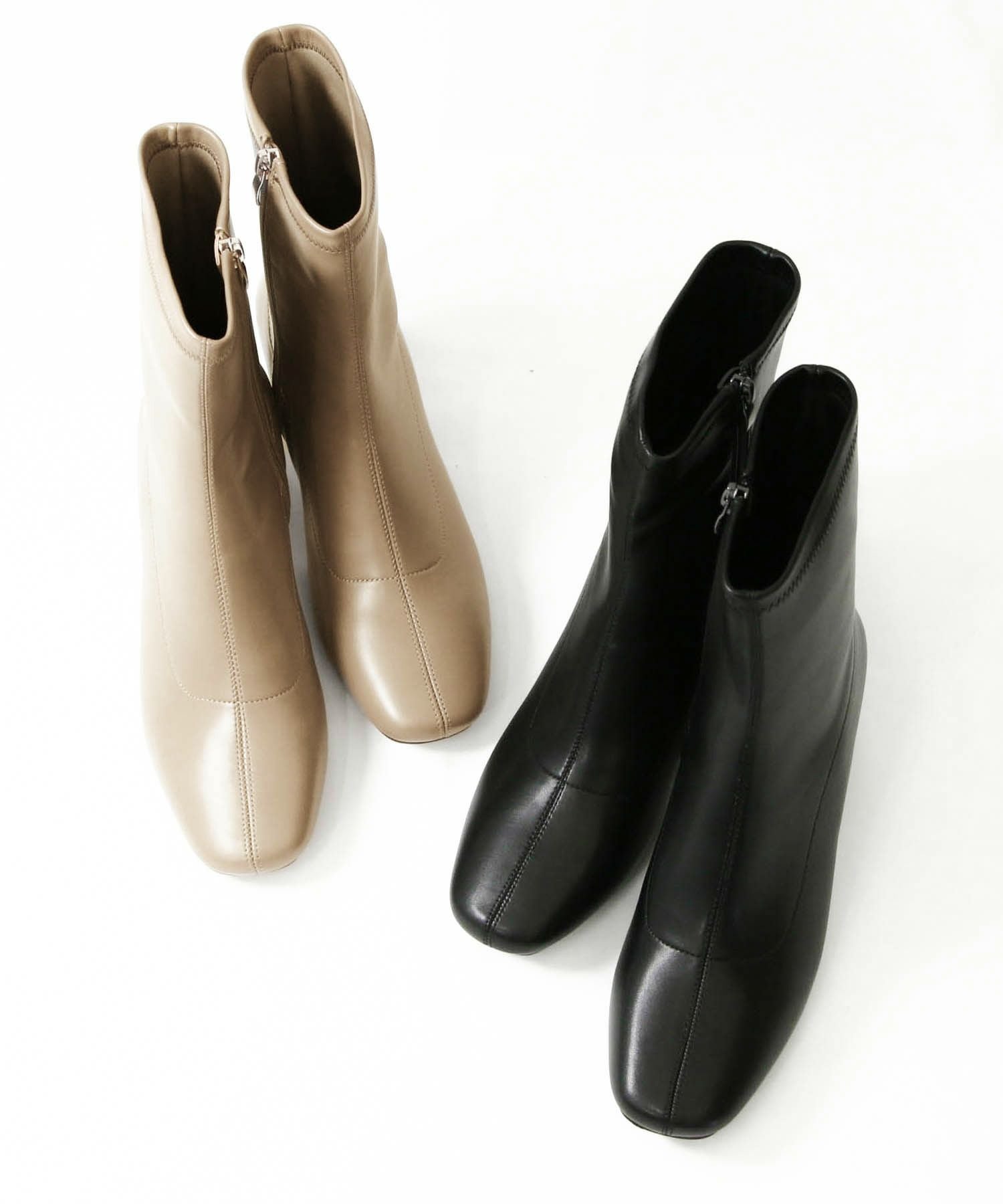 程よいボリュームのチャンキーヒールとストレッチを効かせたフィット感のある細身の筒周りが、合わせやすさと履きやすさを両立したショートブーツ。