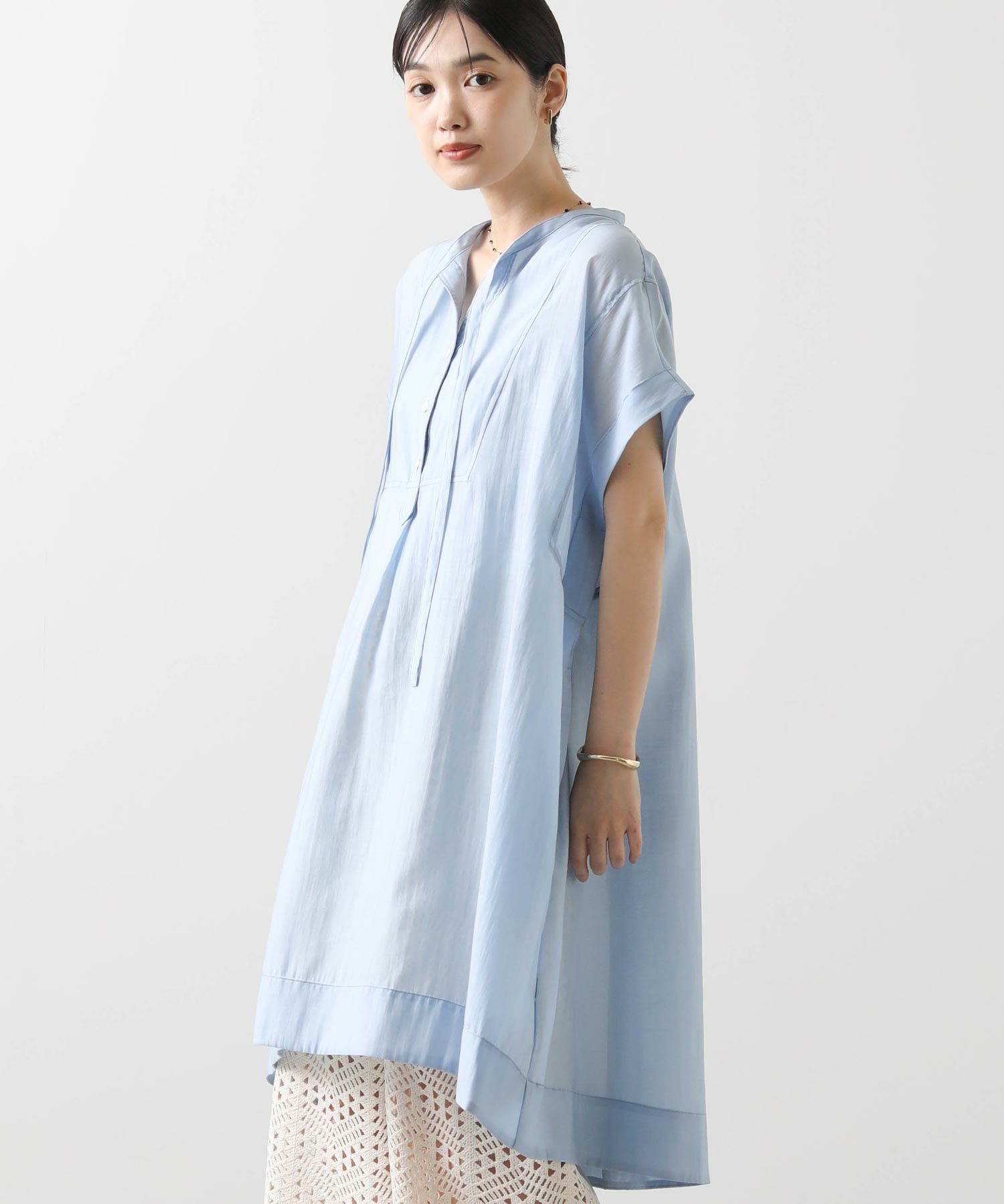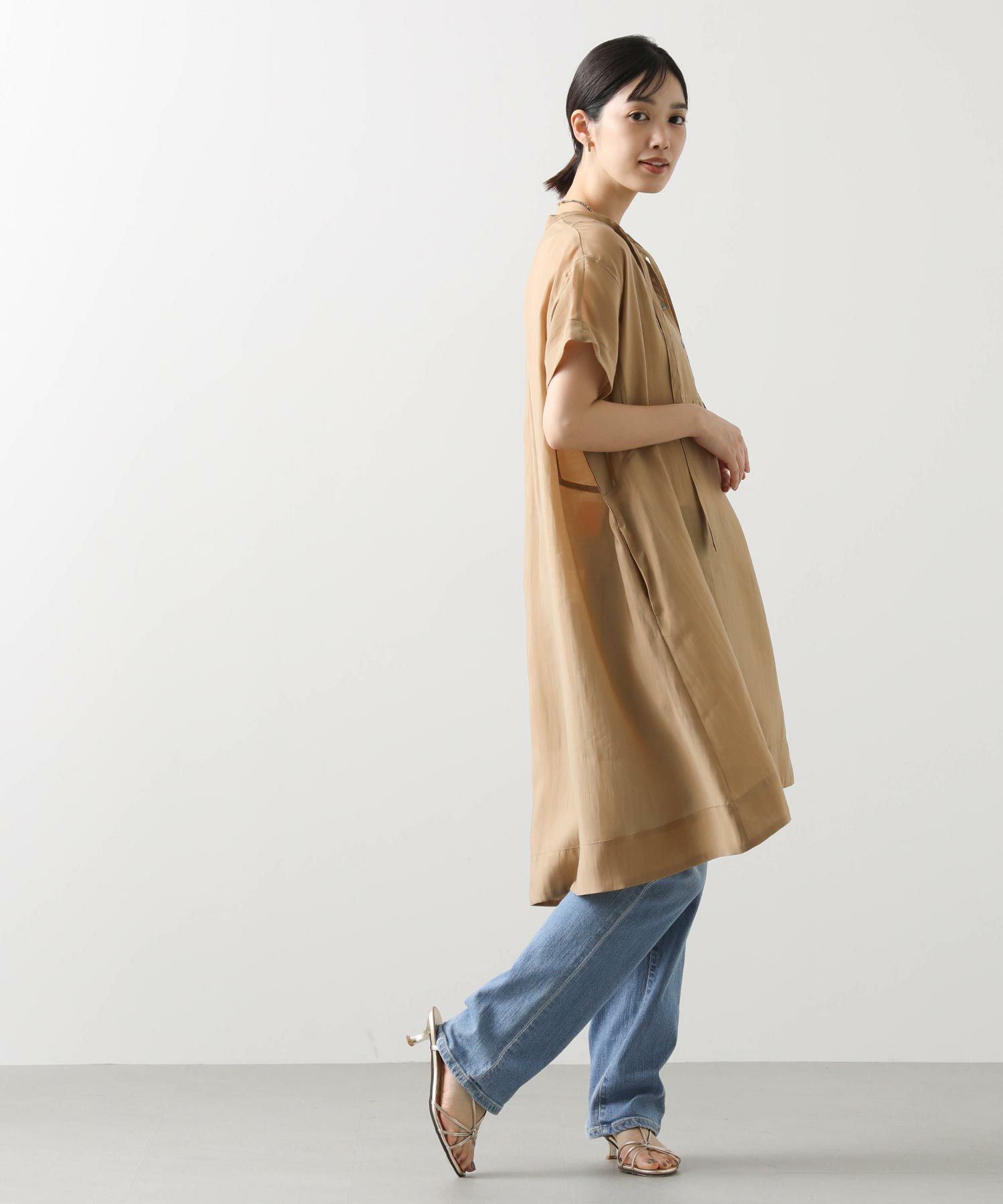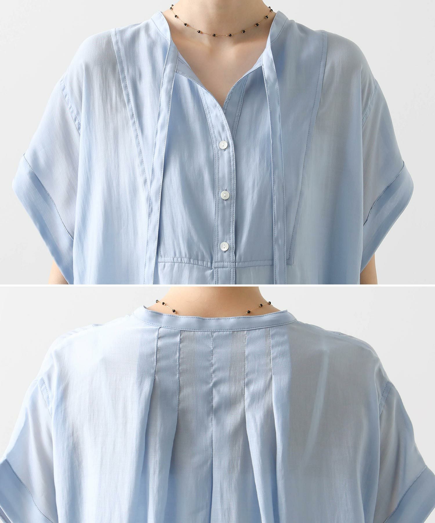 テンセル混の涼しくサラッとした肌触りで、適度なハリとツヤがカジュアルになり過ぎず、上品な印象で着用できます。
