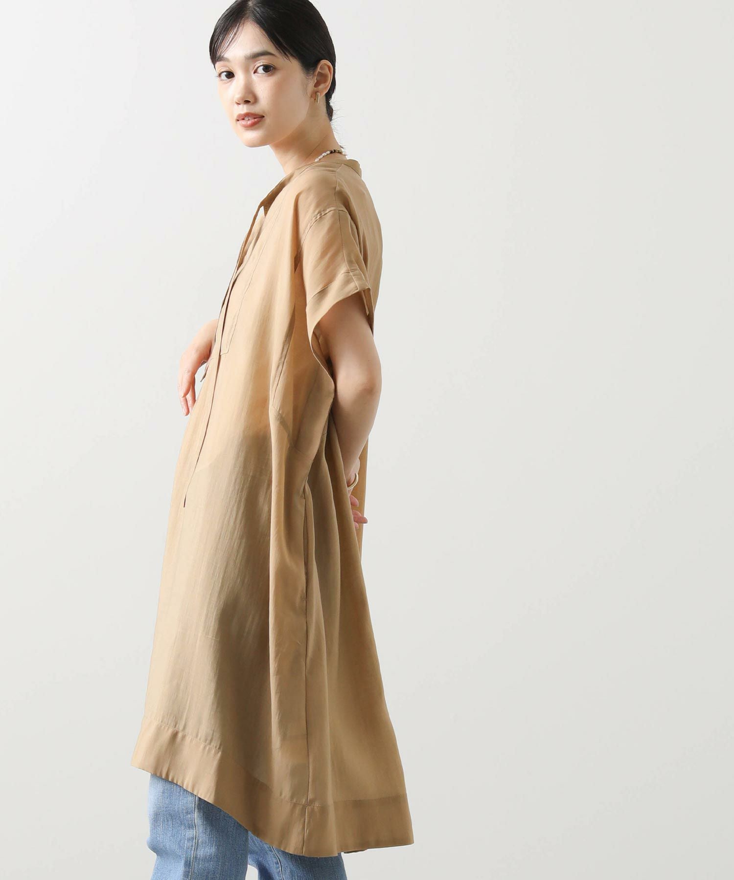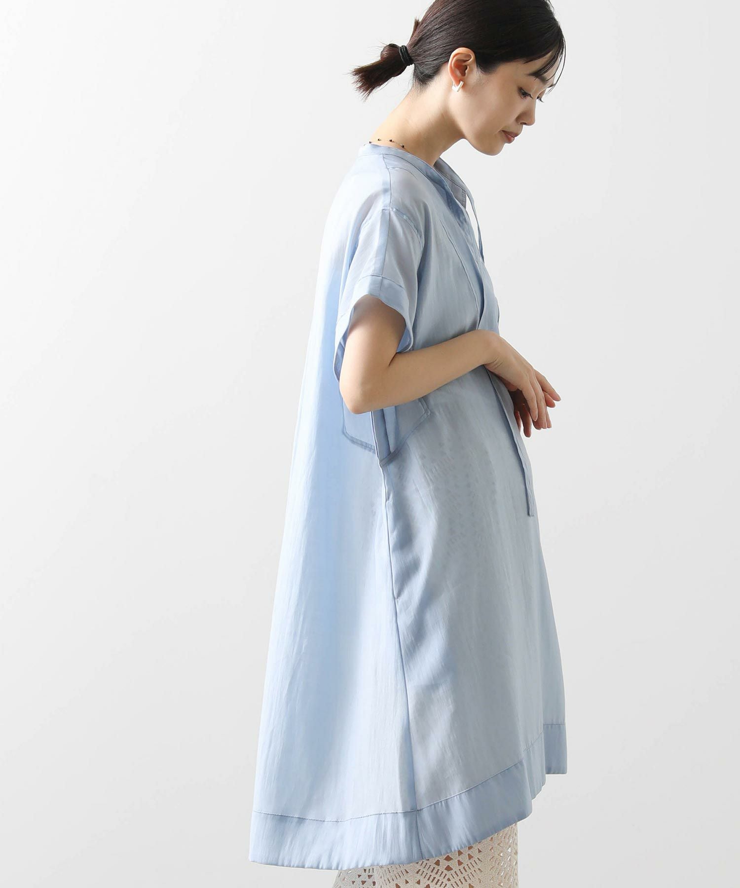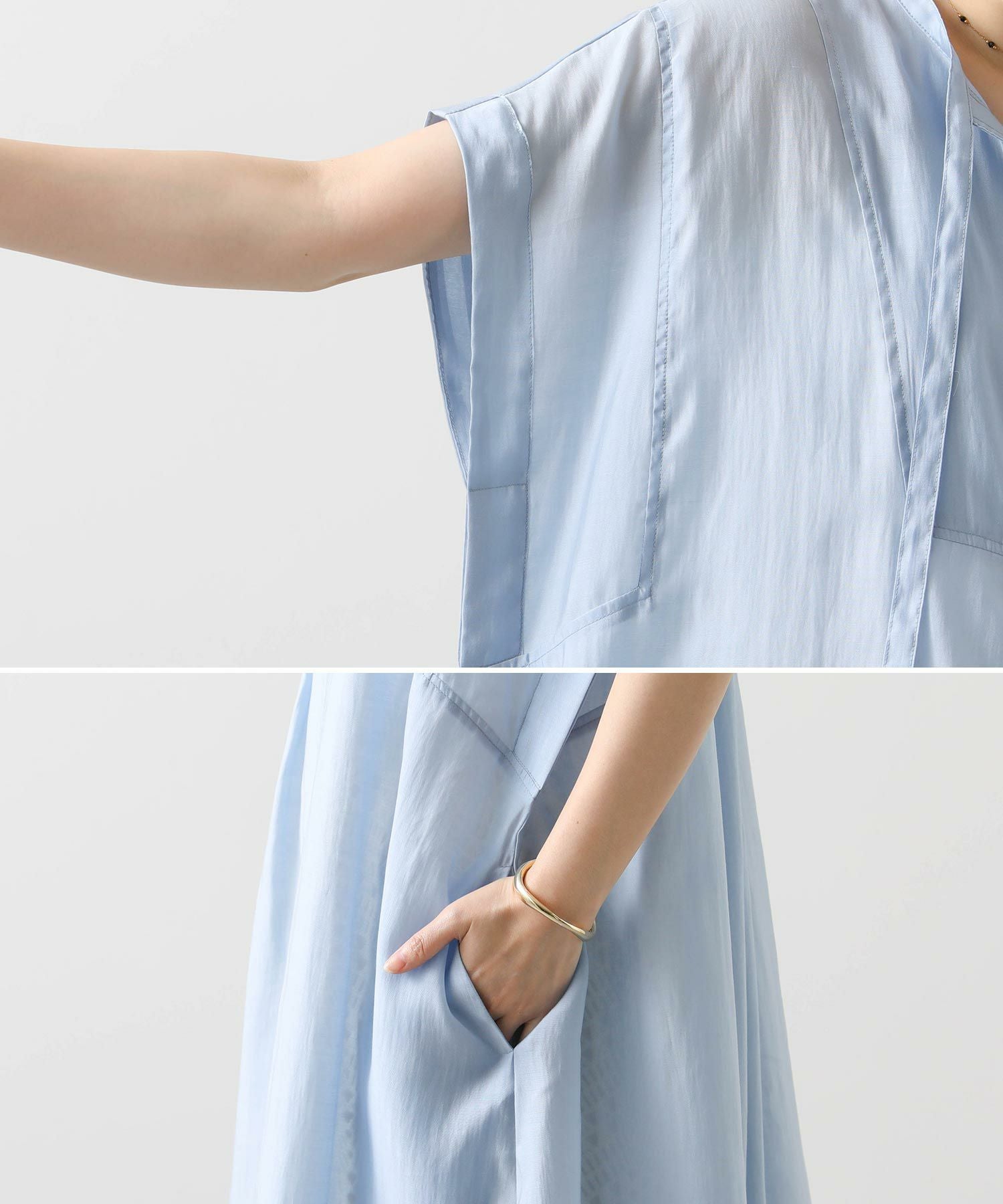 テンセル混の涼しくサラッとした肌触りで、適度なハリとツヤがカジュアルになり過ぎず、上品な印象で着用できます。