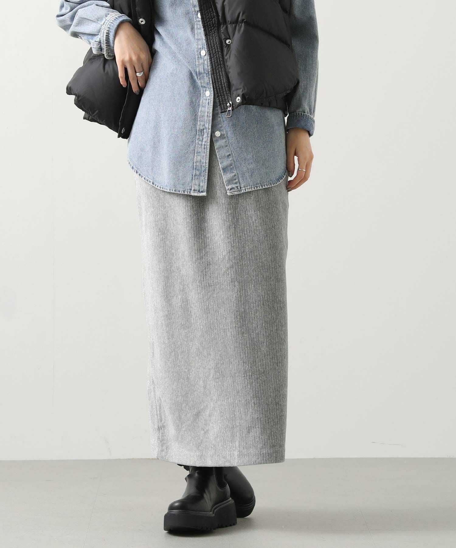 ラメカットソー素材のロングシーズン穿ける楽ちんスカート。