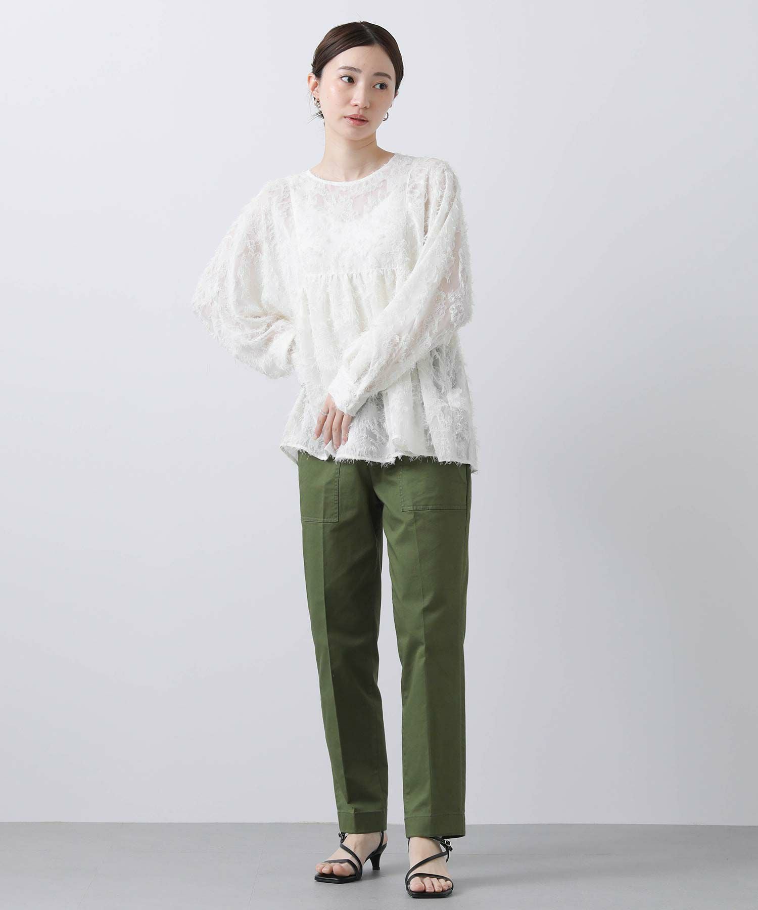 ※着用画像は撮影状況、光の当たり具合で色みが違って見える場合がございます。実際の色みについては、画像一覧の最後に掲載している詳細画像をご参照ください。