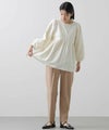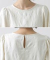 ウエスト切り替えは自然と腰の位置を高く、ウエストが細く見えるようなシルエットに。腰周りをカバーする着丈も◎おおげさ過ぎないボリューム感を出したパフスリーブで肩回りも華奢な印象になります。