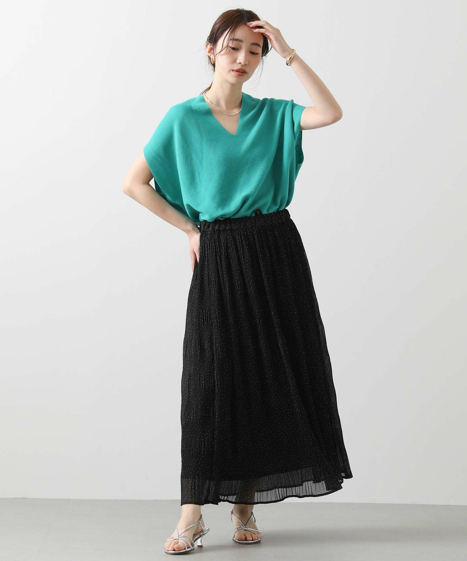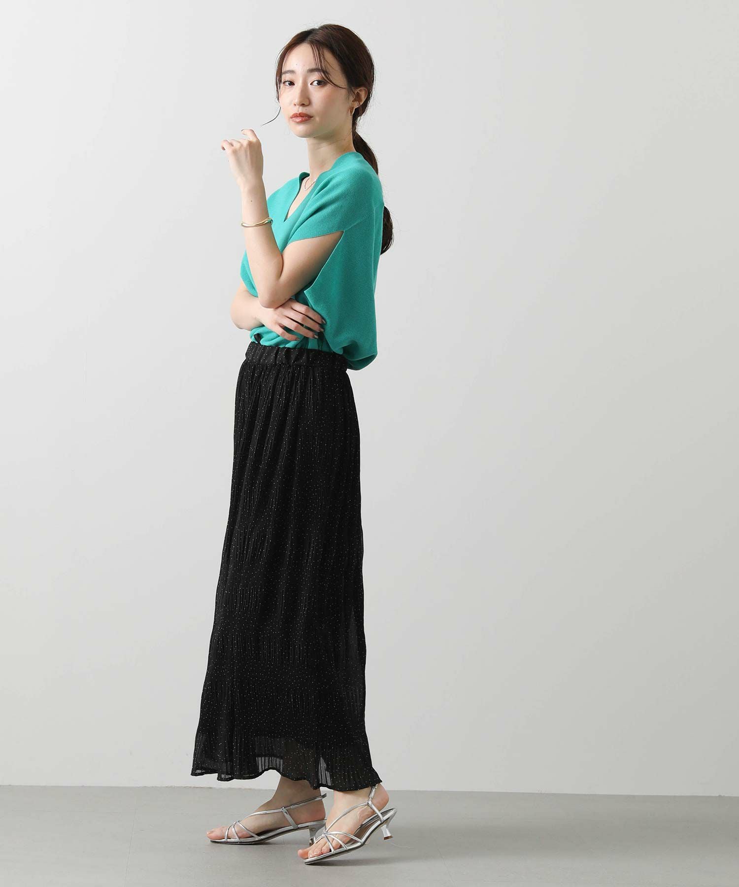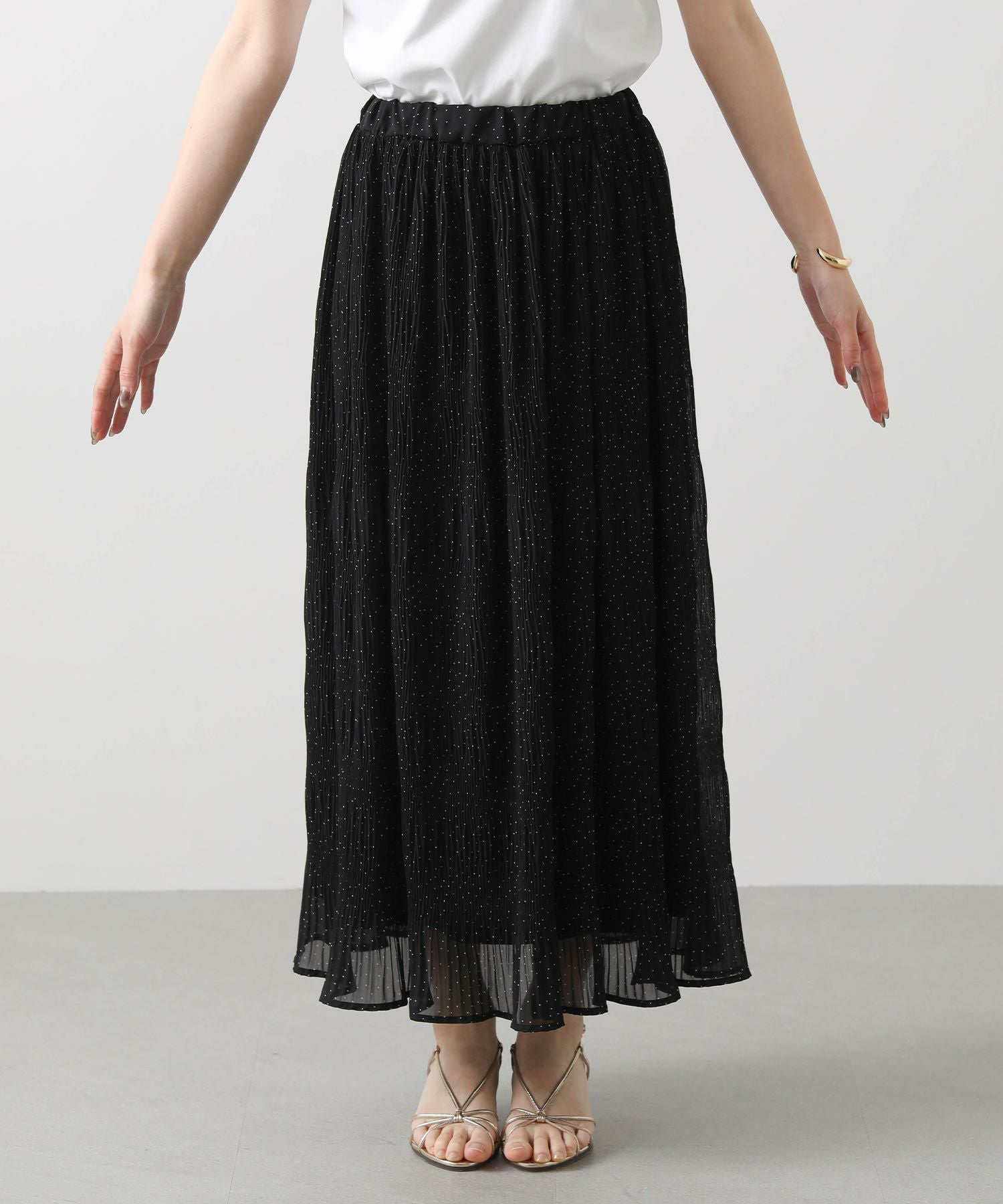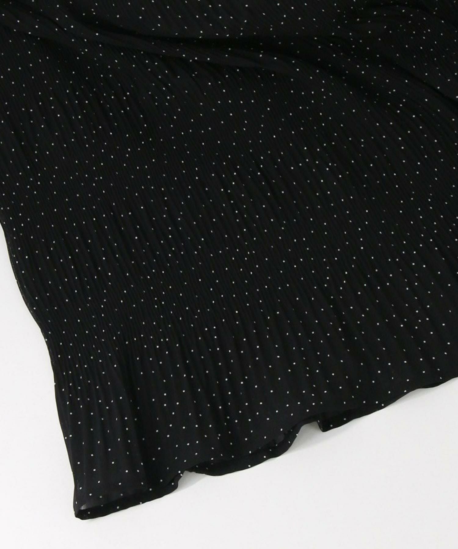 不規則なヒダが、甘すぎないマジョリカプリーツのドット柄スカート。