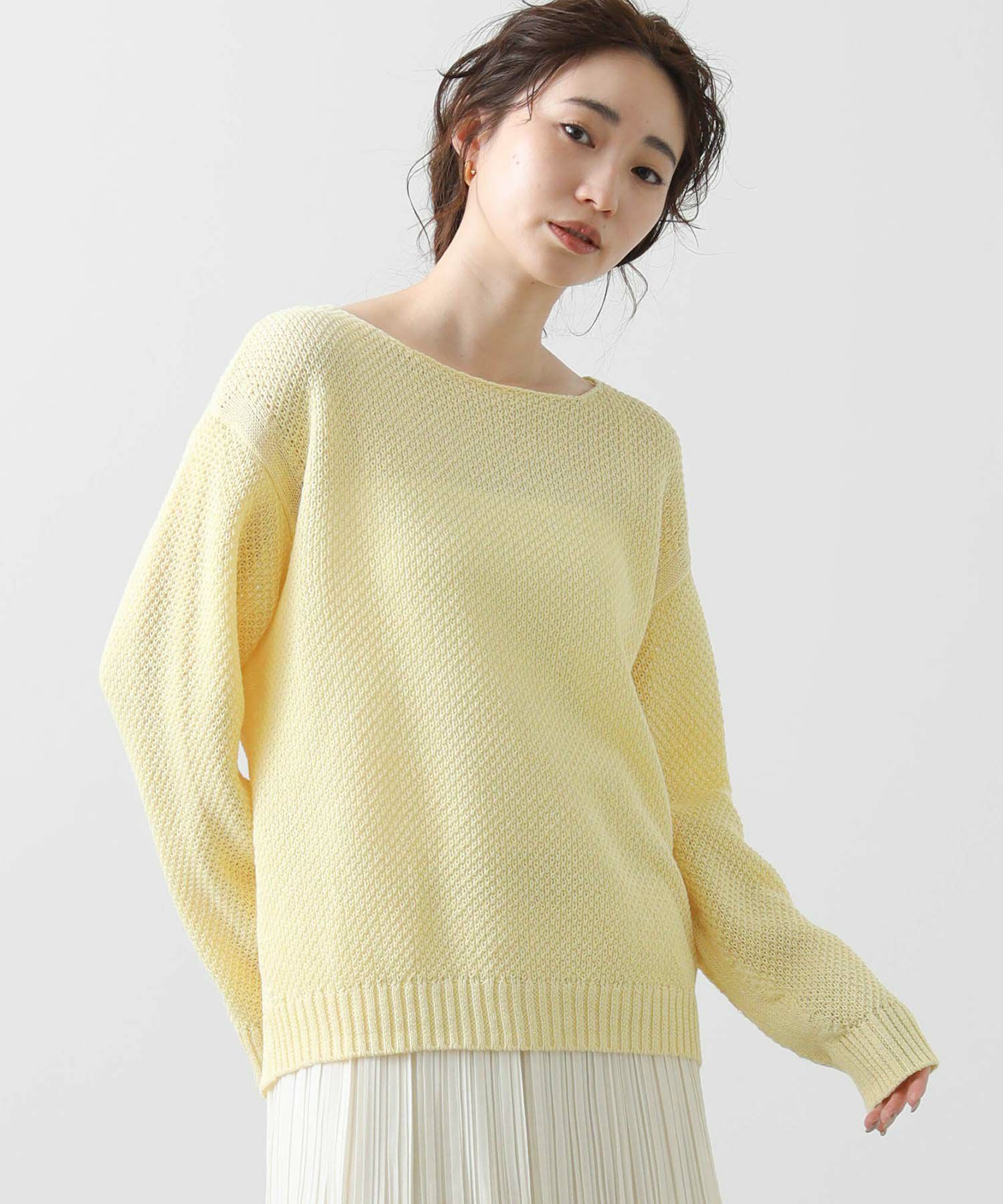 スラブ素材特有のナチュラルな風合いが魅力で、軽やかな着心地です。動くたびに揺れるシルエットが女性らしさを引き立て、カジュアルにも上品なコーディネートにもマッチします。