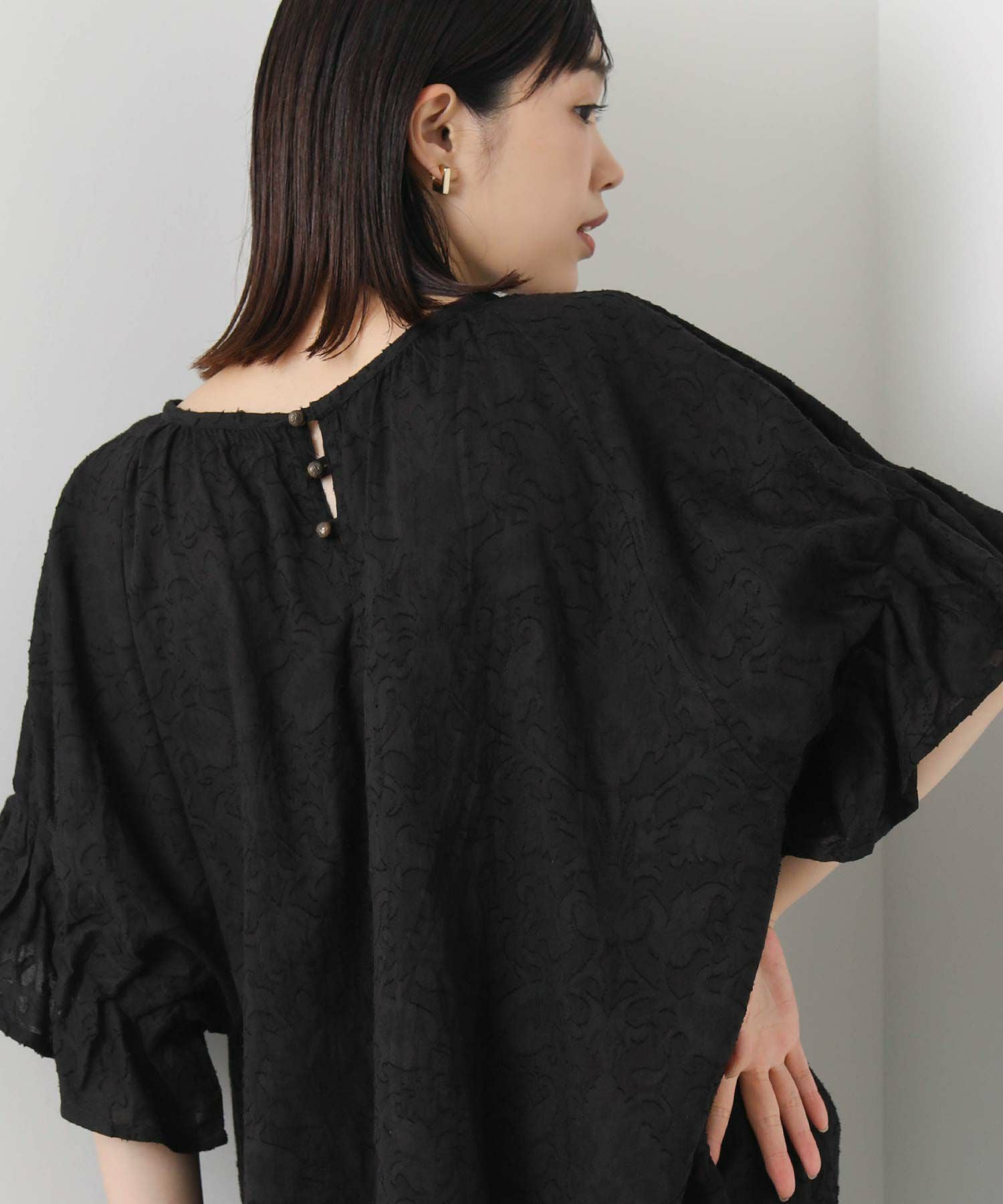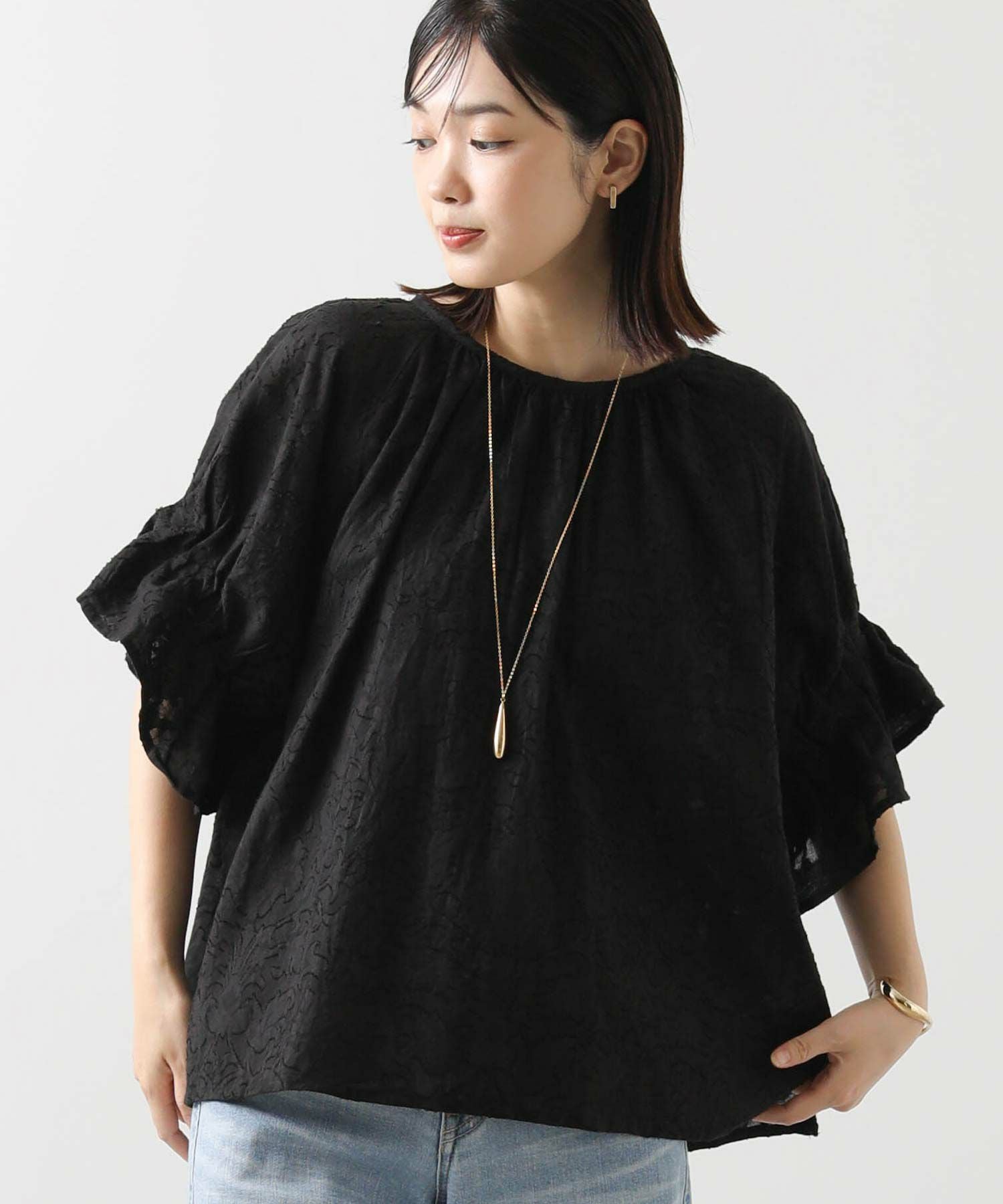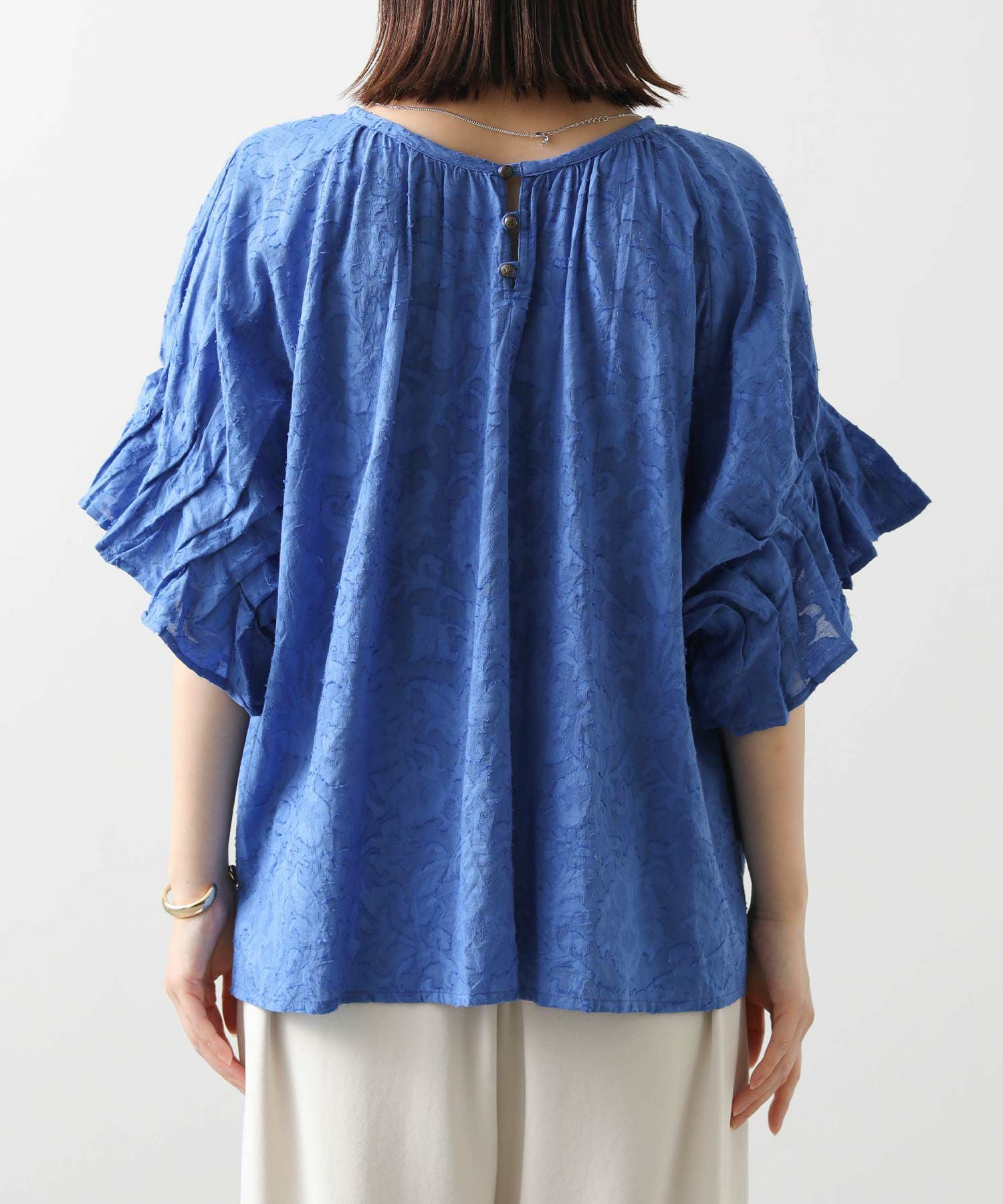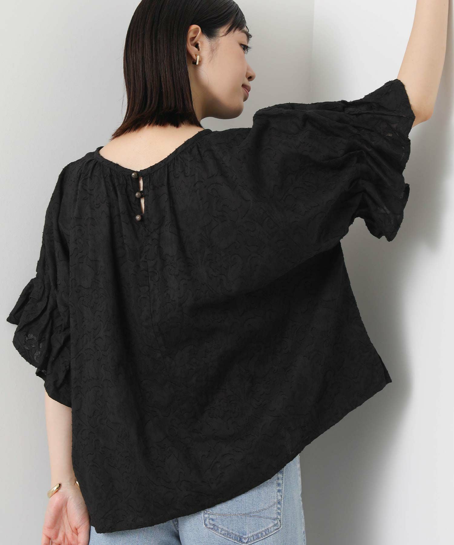 ソフトな風合いの綿素材で、肌触りが良さが魅力の華やかな花柄ジャガード素材のブラウス。
