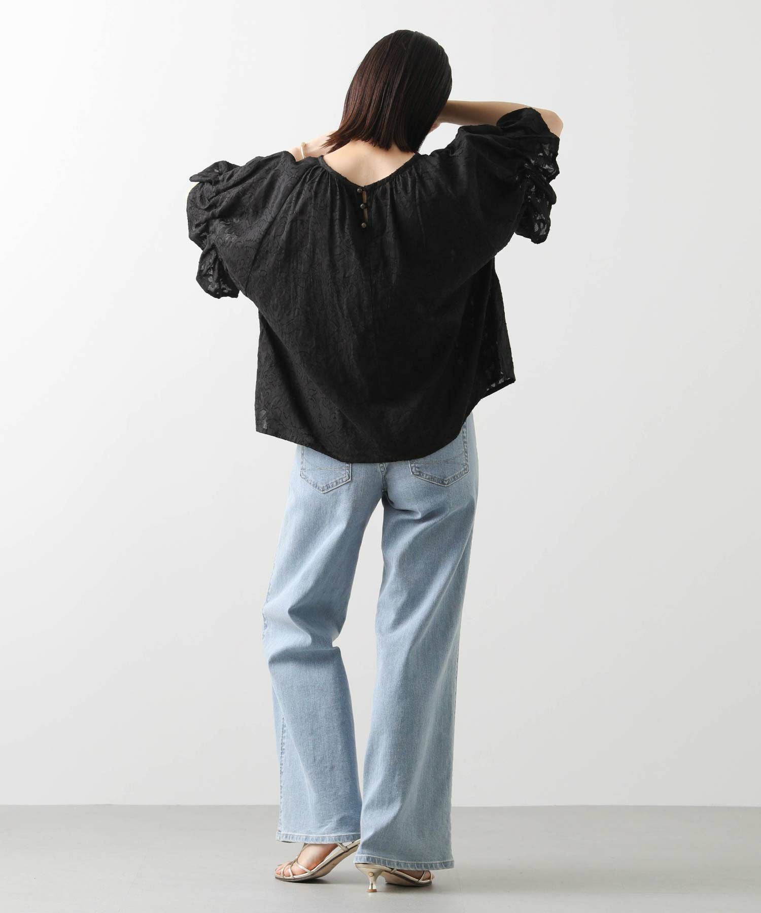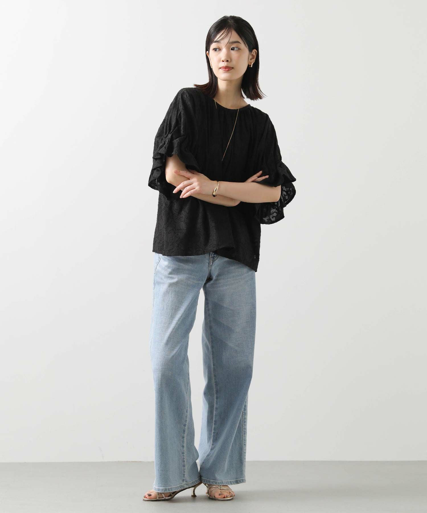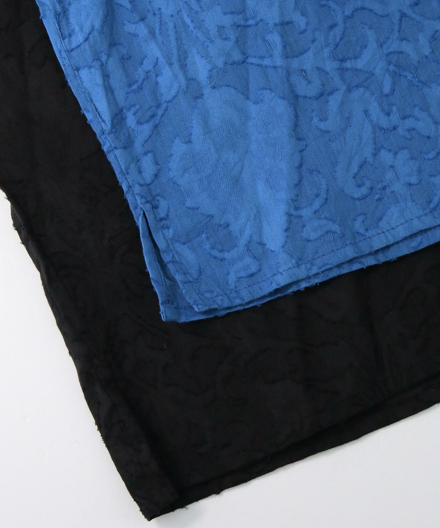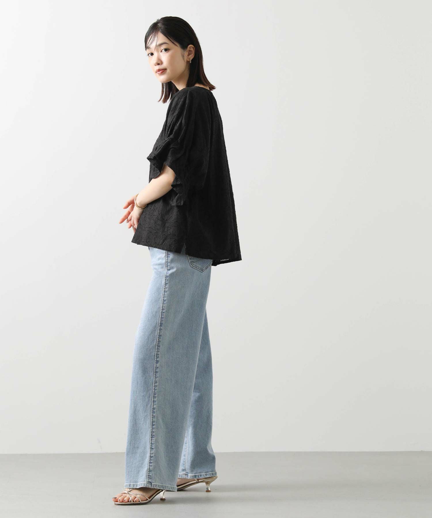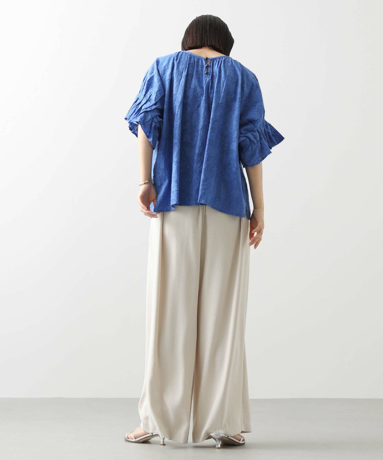 ソフトな風合いの綿素材で、肌触りが良さが魅力の華やかな花柄ジャガード素材のブラウス。