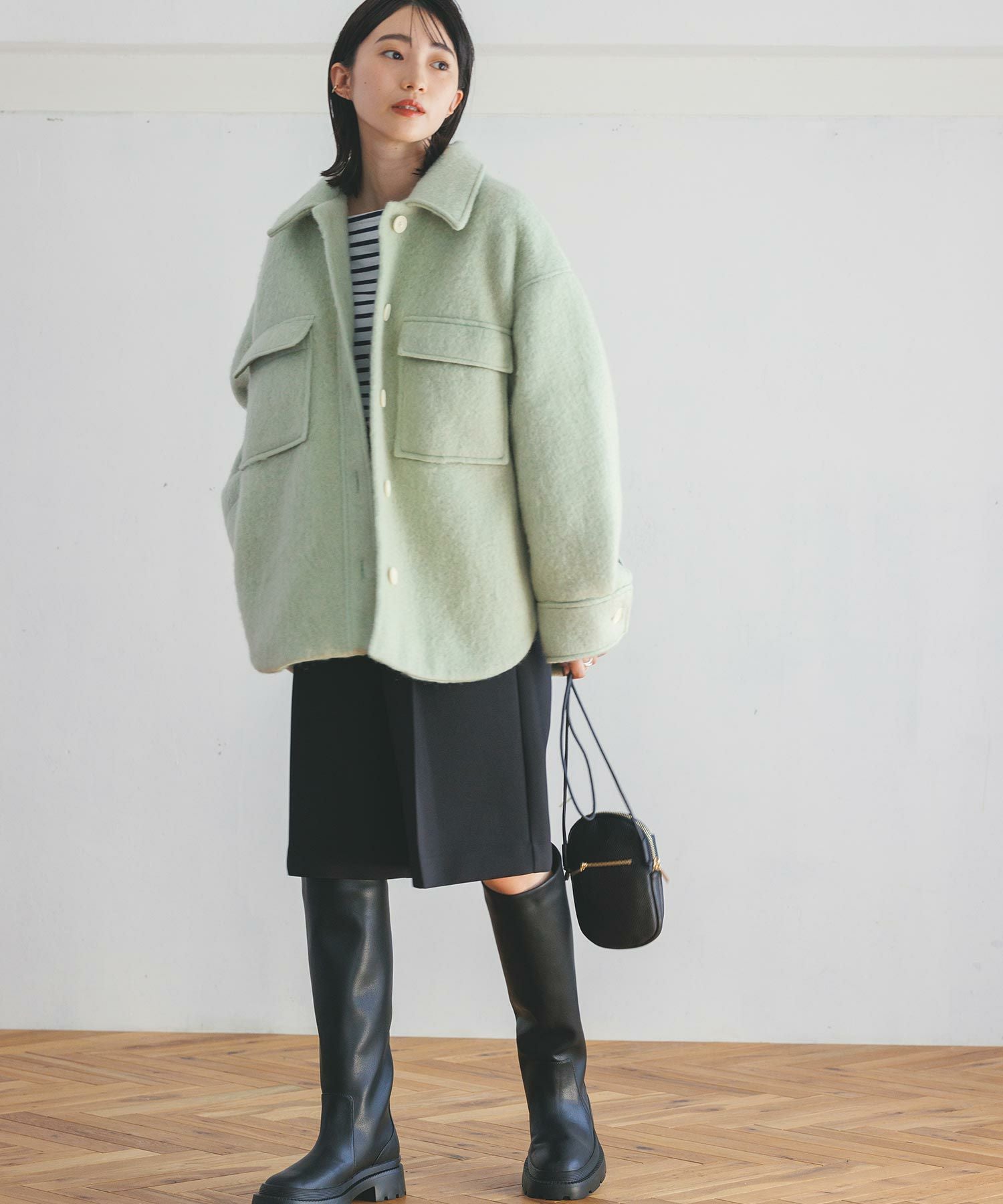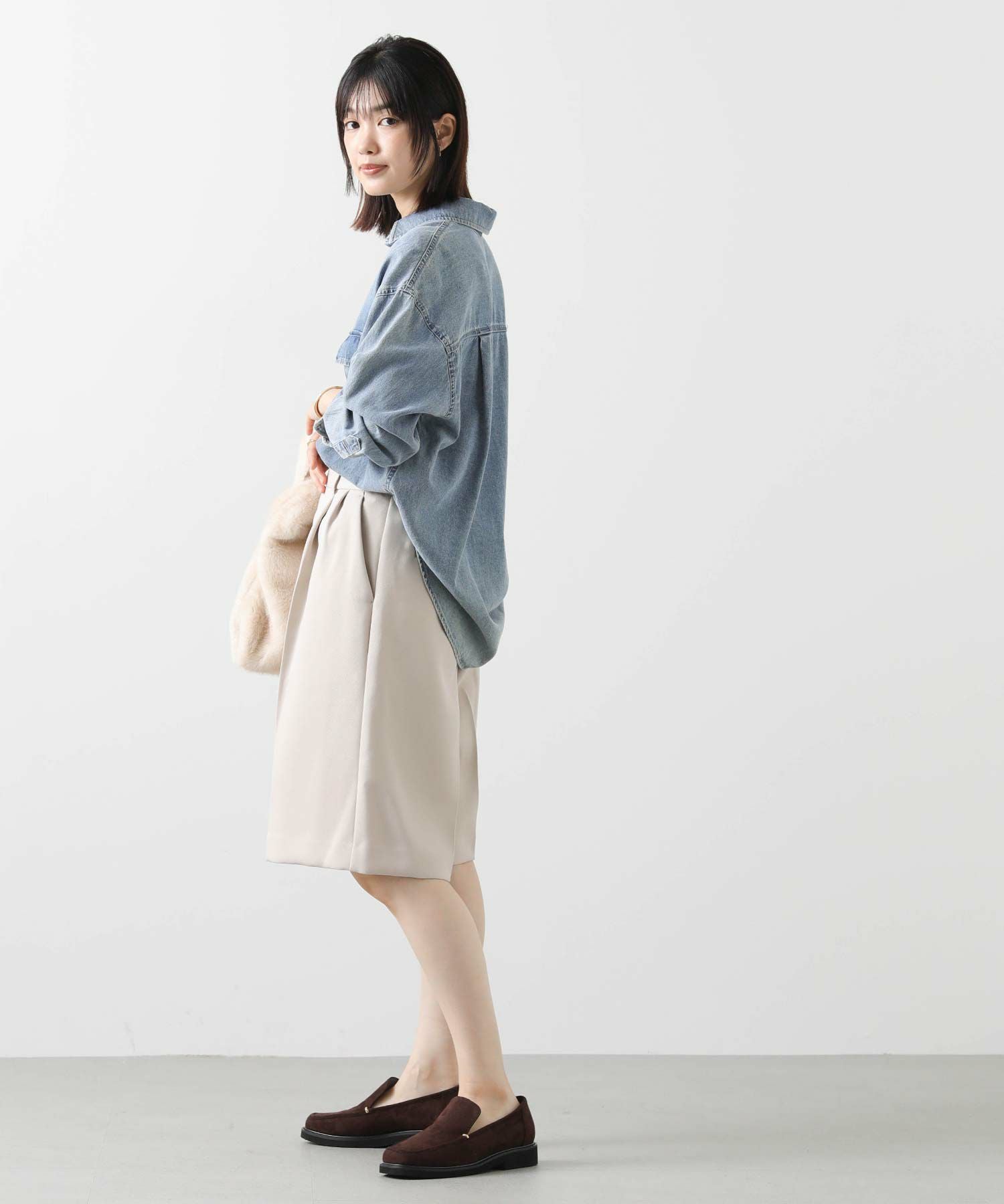 オーバーサイズのニットやシャツと大人のこなれスタイルをお楽しみください。