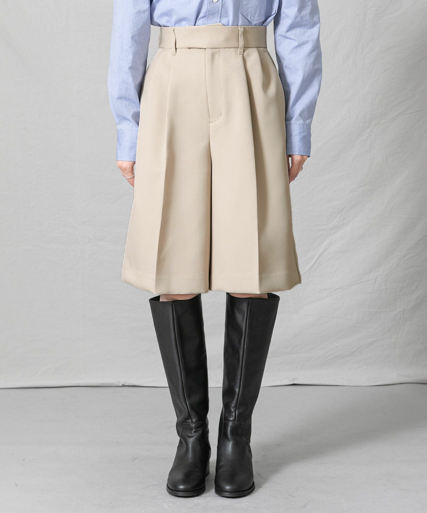 「Audrey and John Wad」から、素材の膨らみとハリ感を生かしたシルエットが魅力の膝丈キュロットが入荷しました。