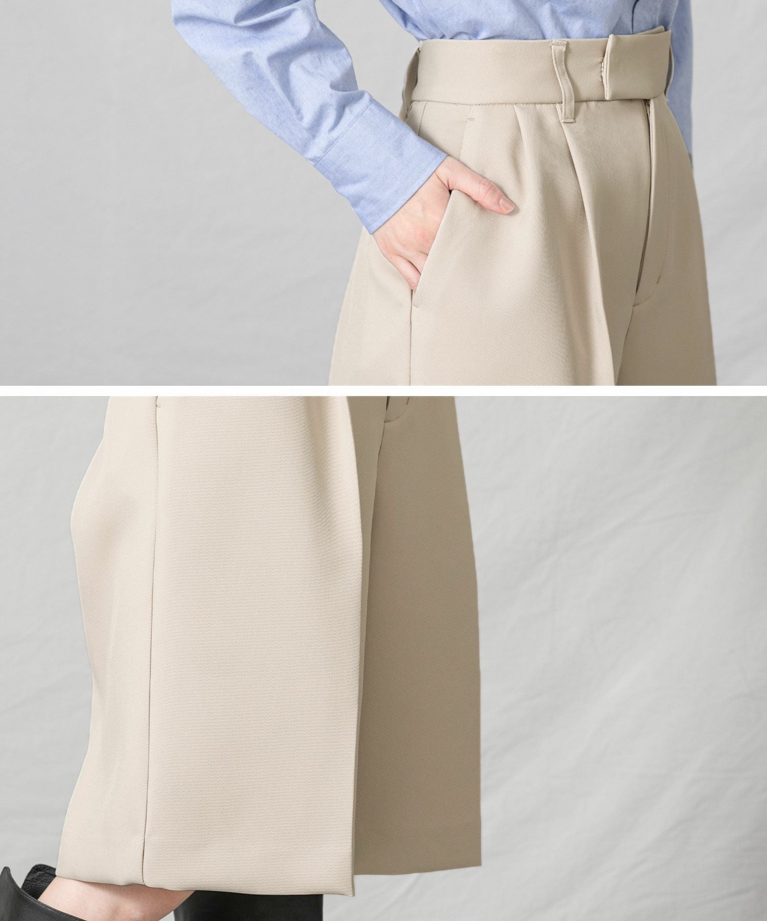 すっきりとしたバランスですが、程よくゆとりがあるのでロングブーツと合わせればトレンド感のある着こなしに。カルゼ組織のきれいな綾目とコットンの様なナチュラルな風合いが三重織ながら軽い穿き心地も嬉しいポイントです◎
