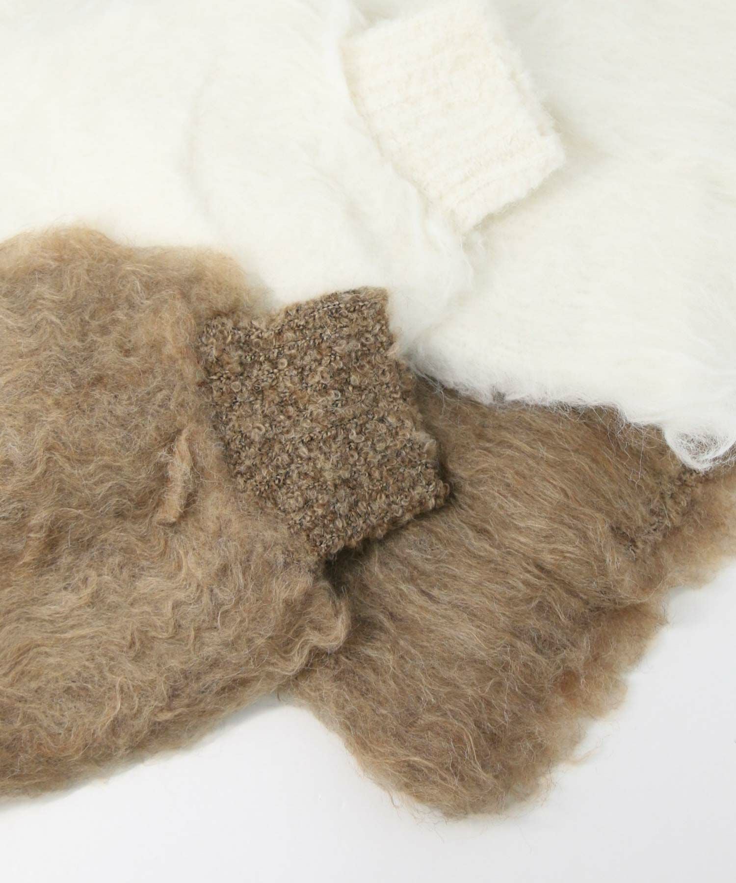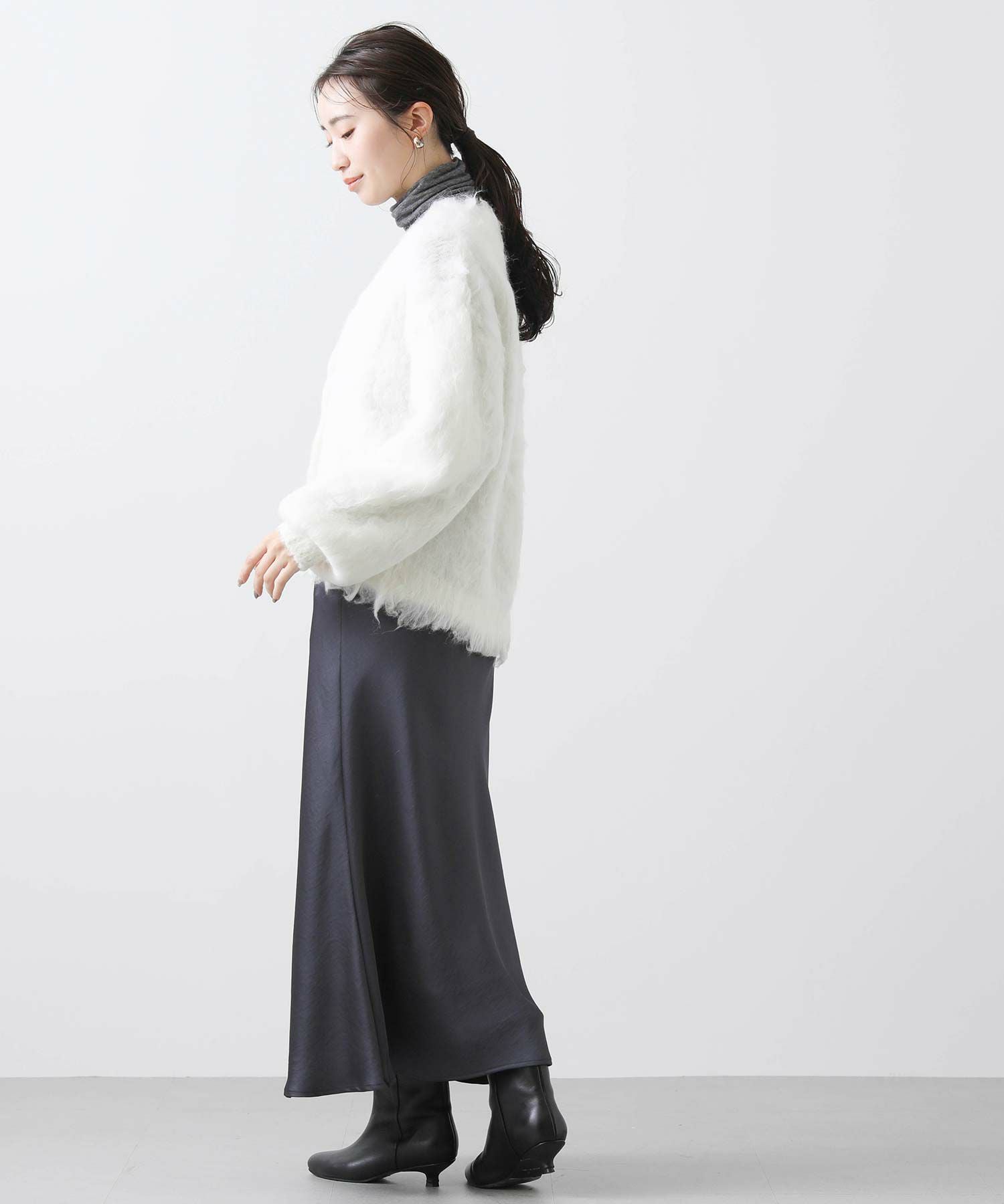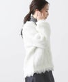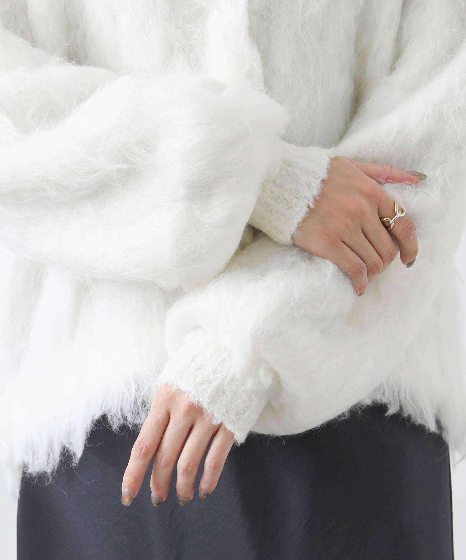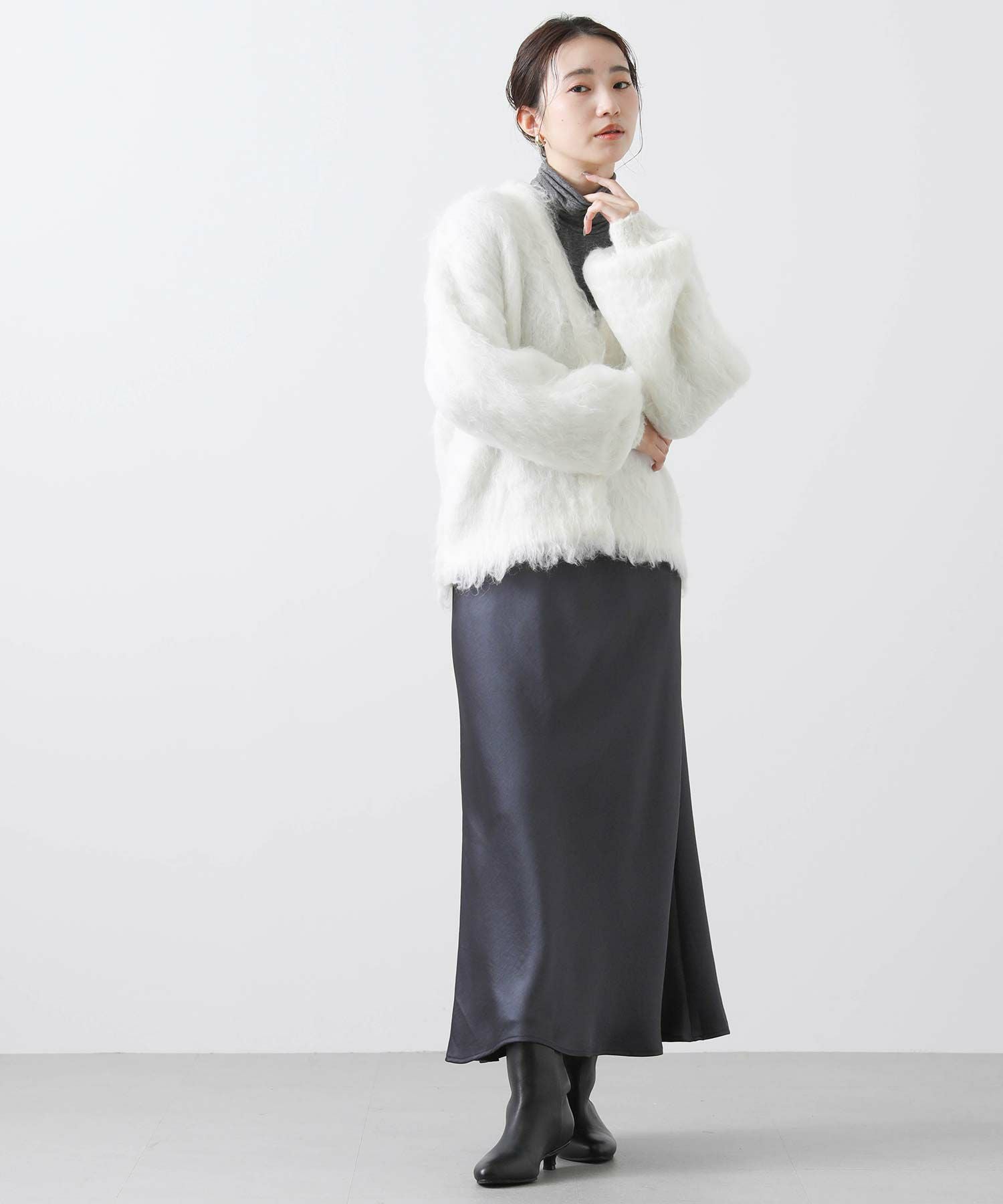 思わず触りたくなるふわふわの毛足が目を惹く、起毛加工のシャギーニットカーディガン。