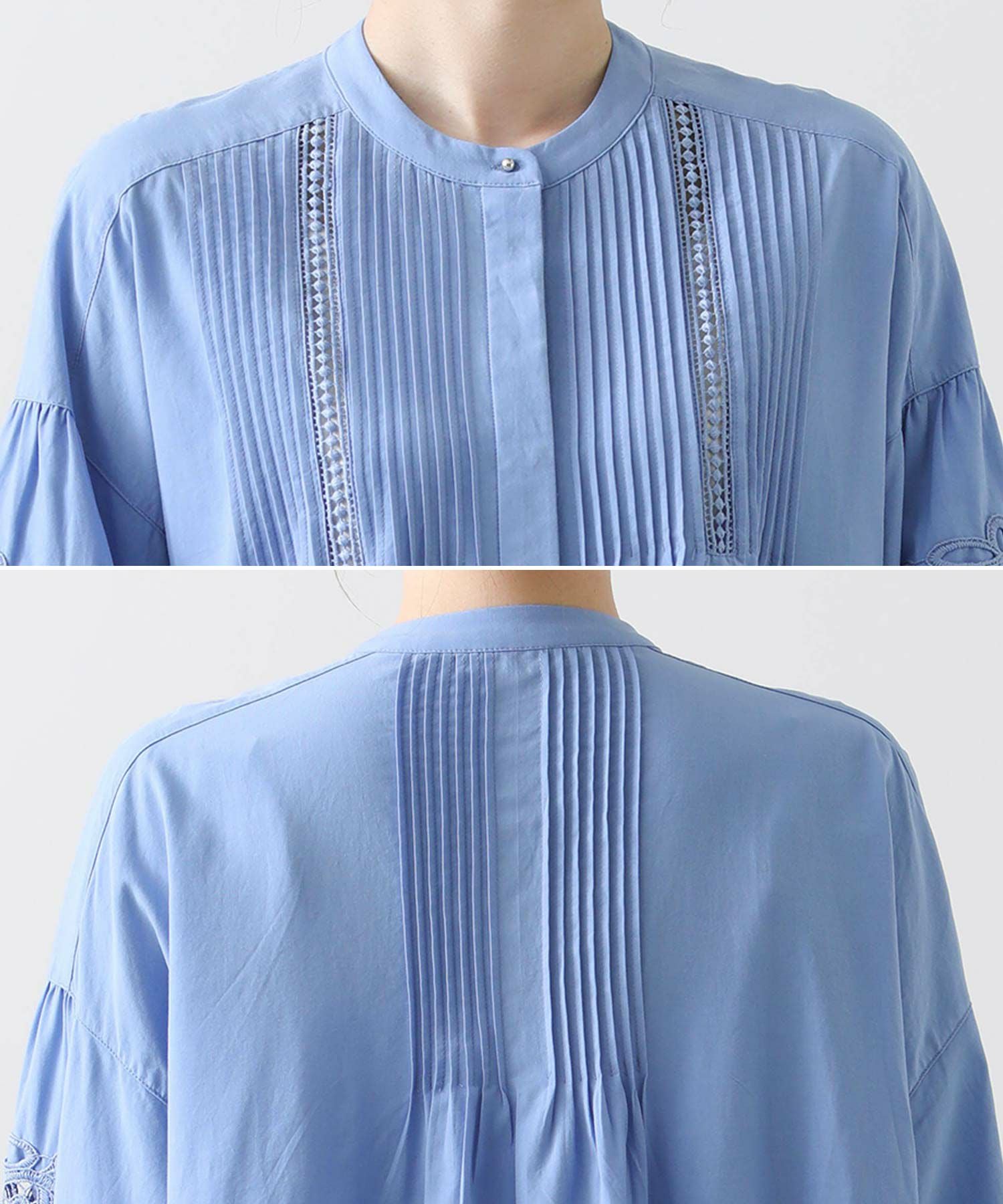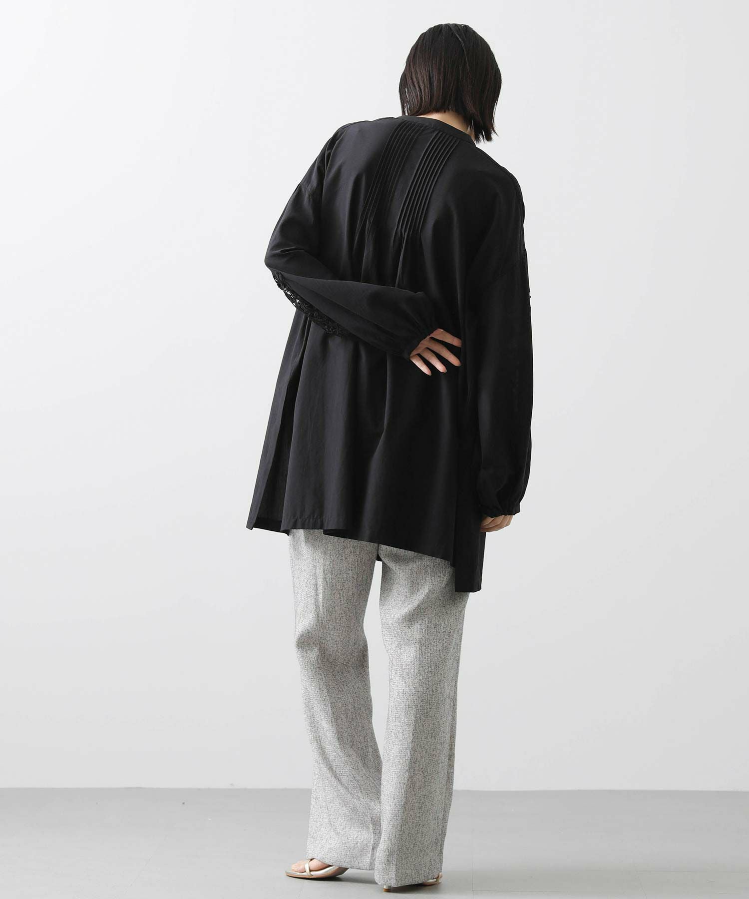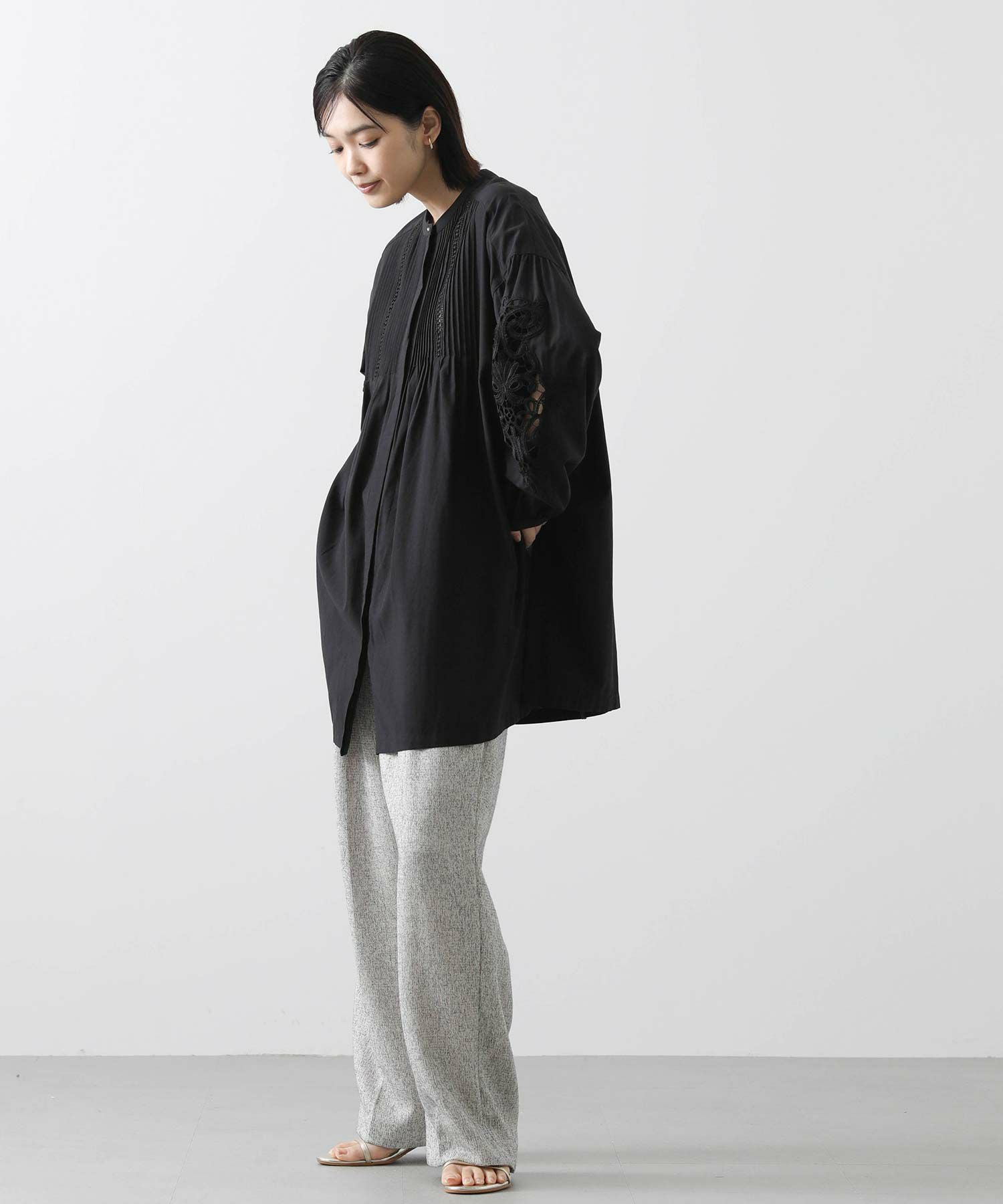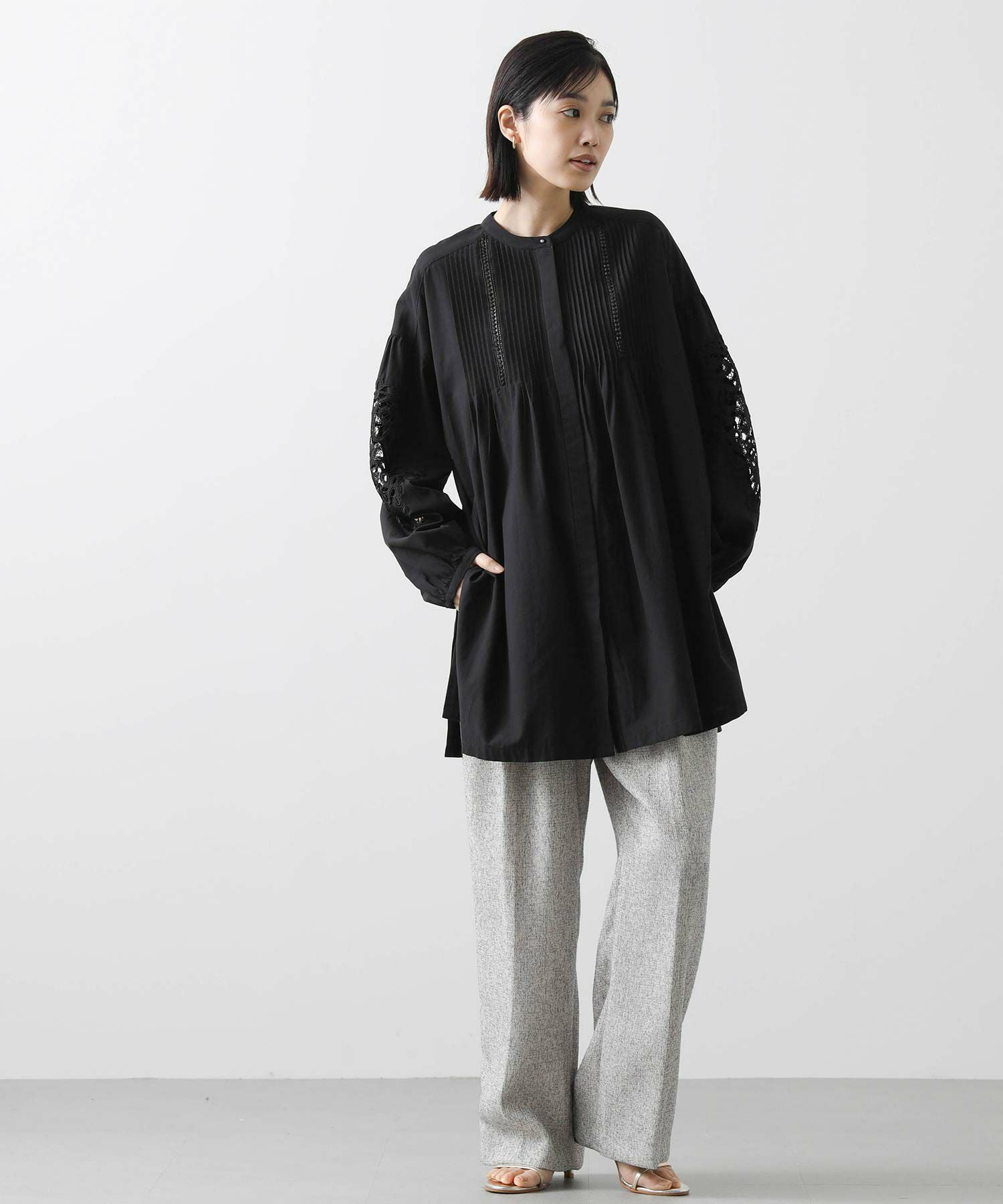身頃には表情の出るピンタックが走る華やかな1枚です。サイドには深めのスリットが入っており、ボトムスともバランスが取りやすくなっています。