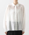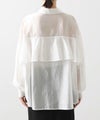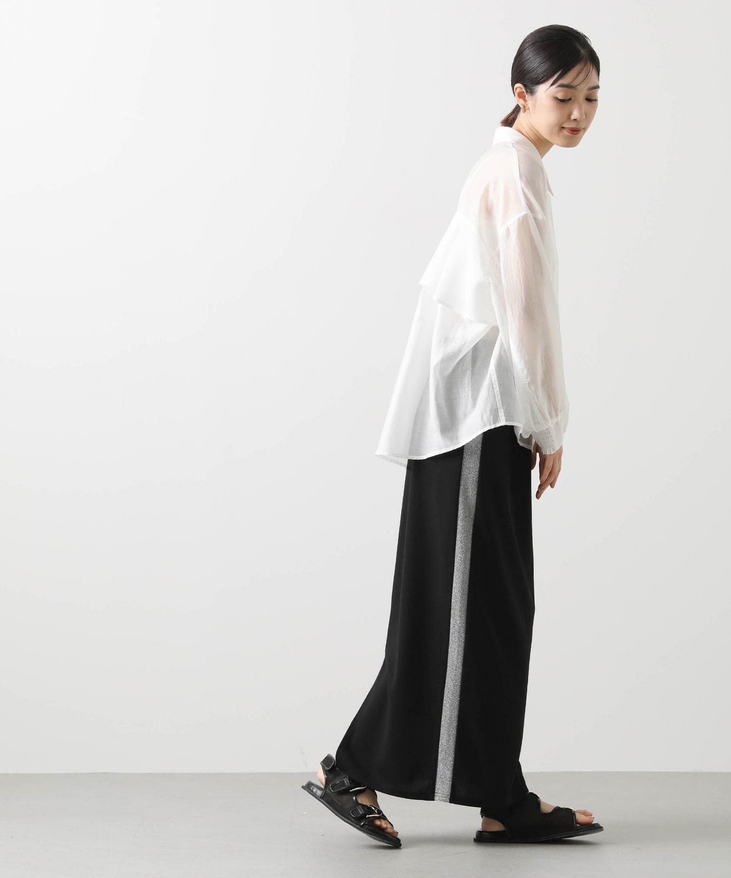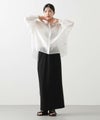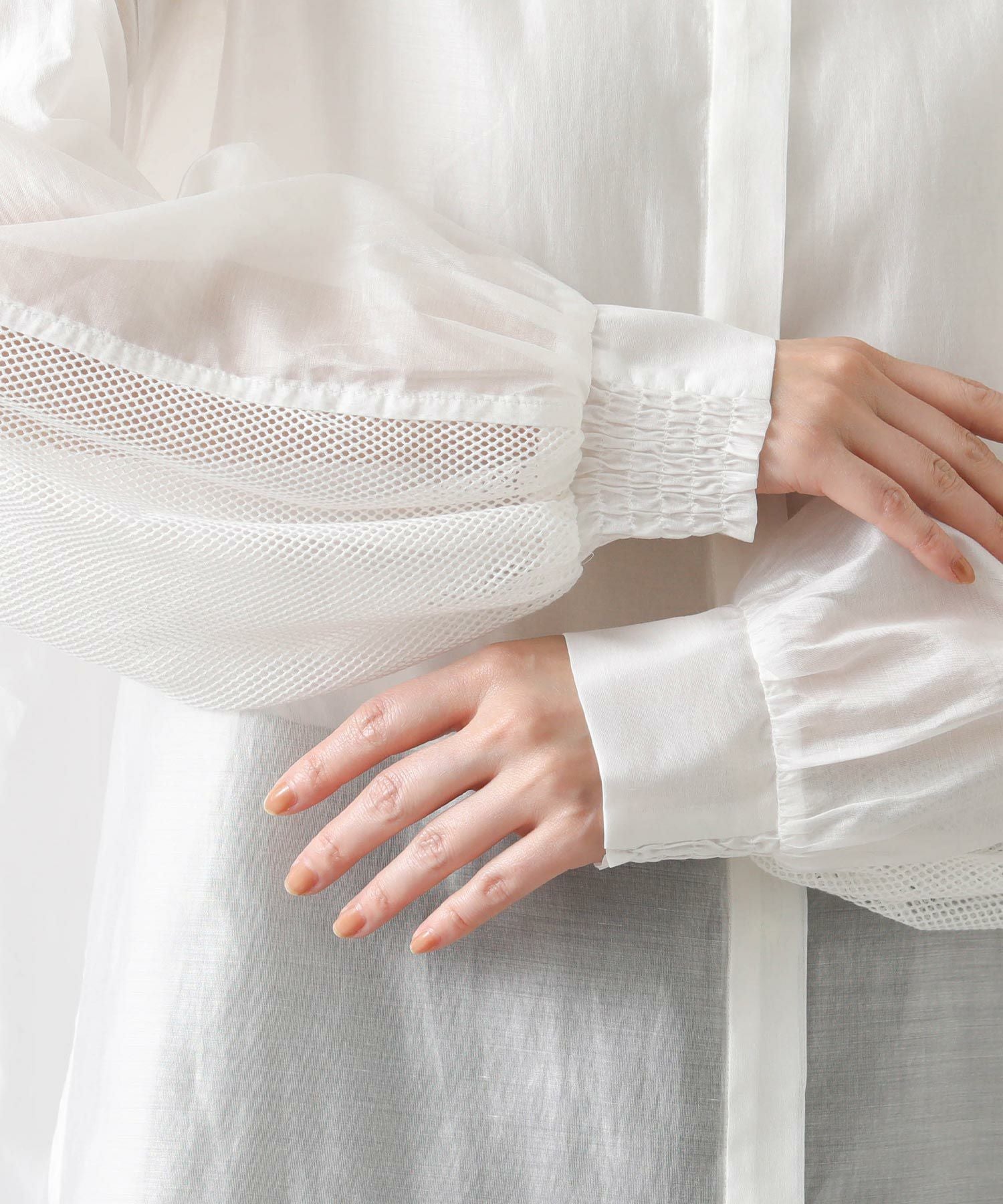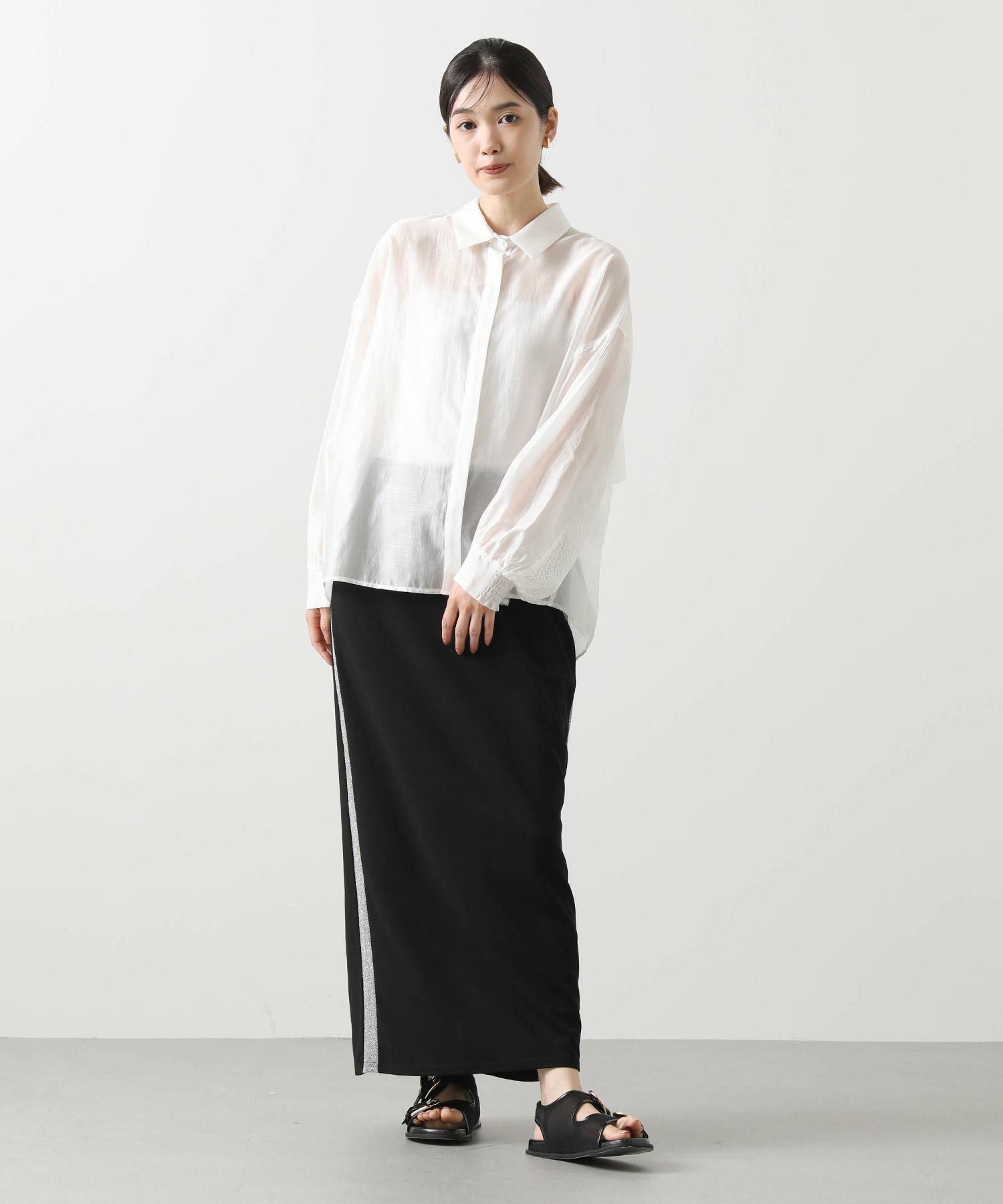 しなやかで光沢感のあり、程よい透け感のあるシアー素材のブラウス。