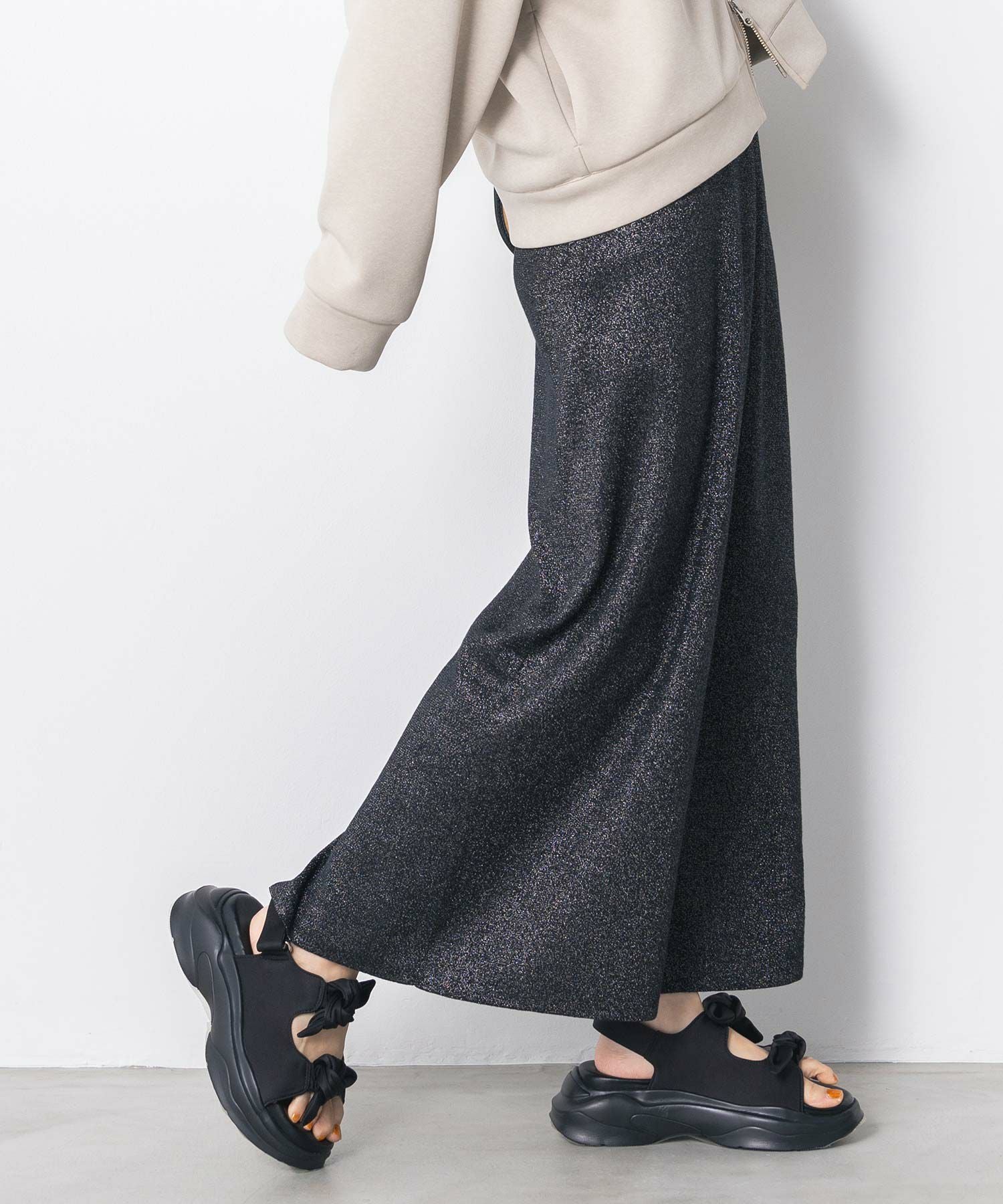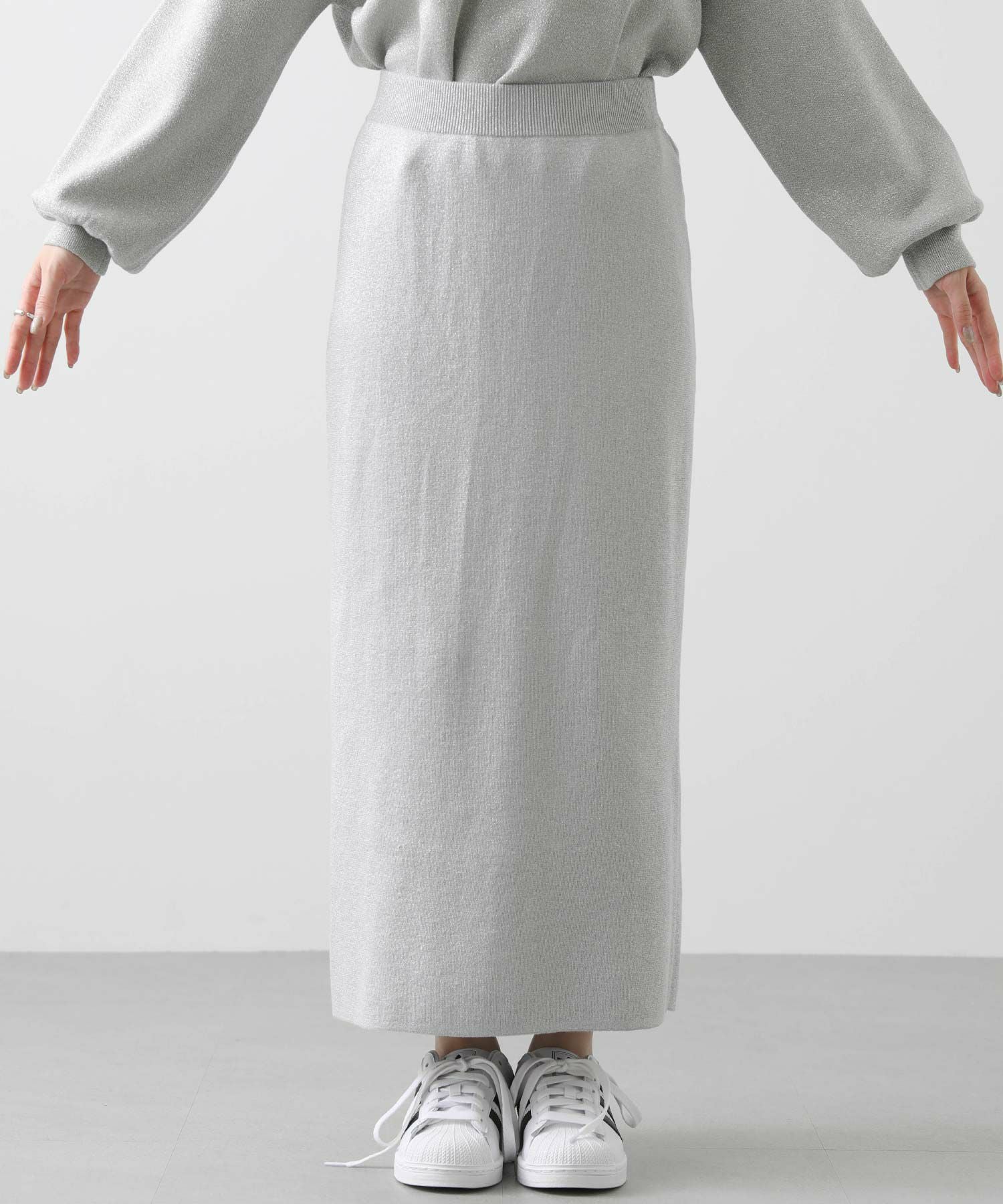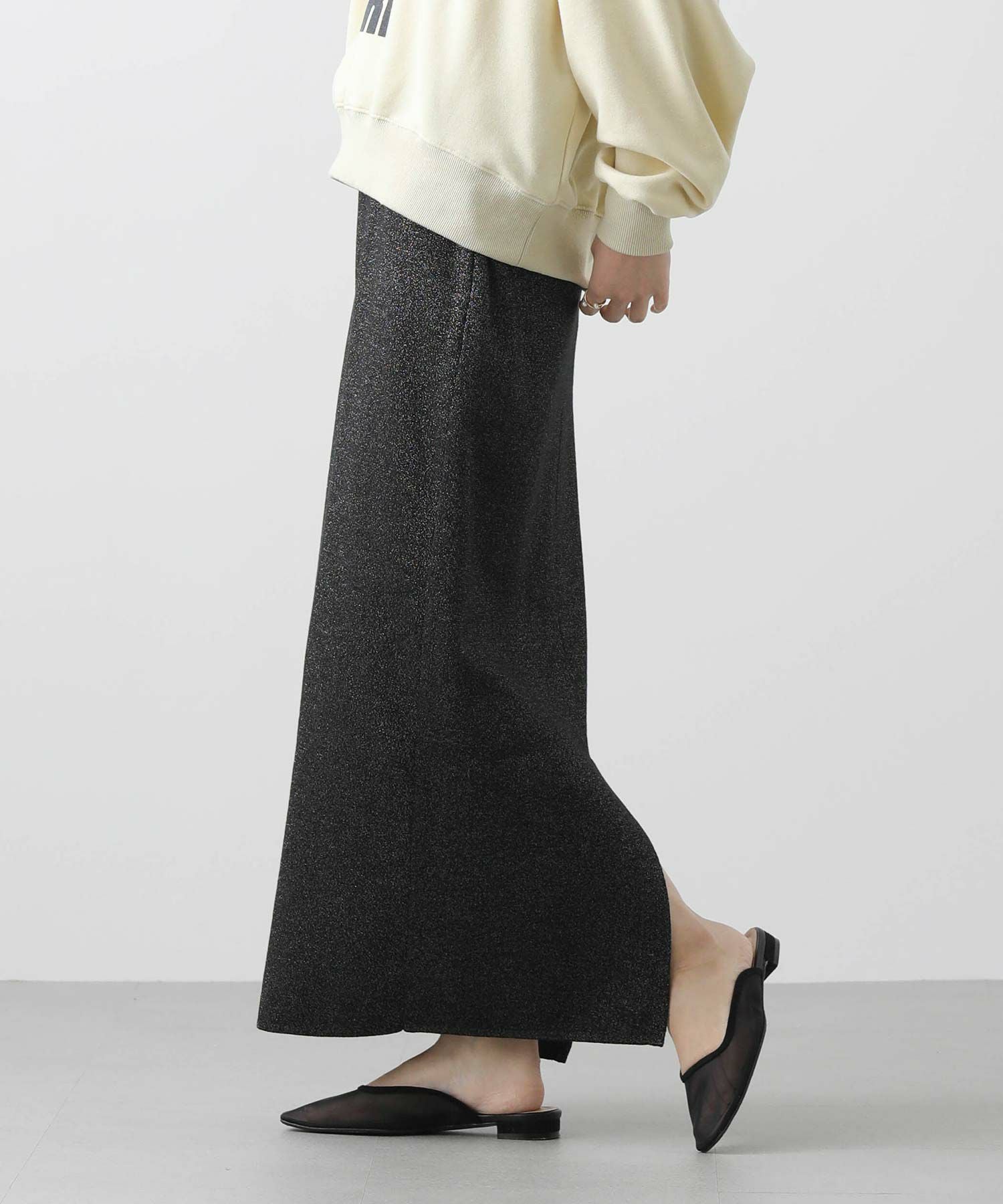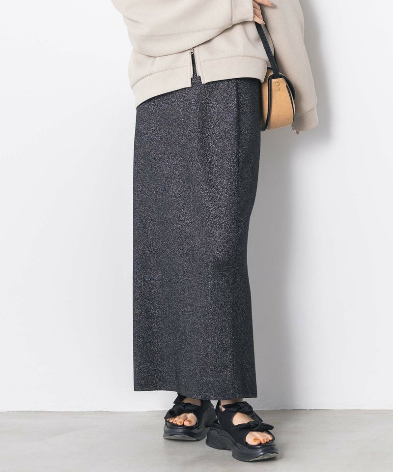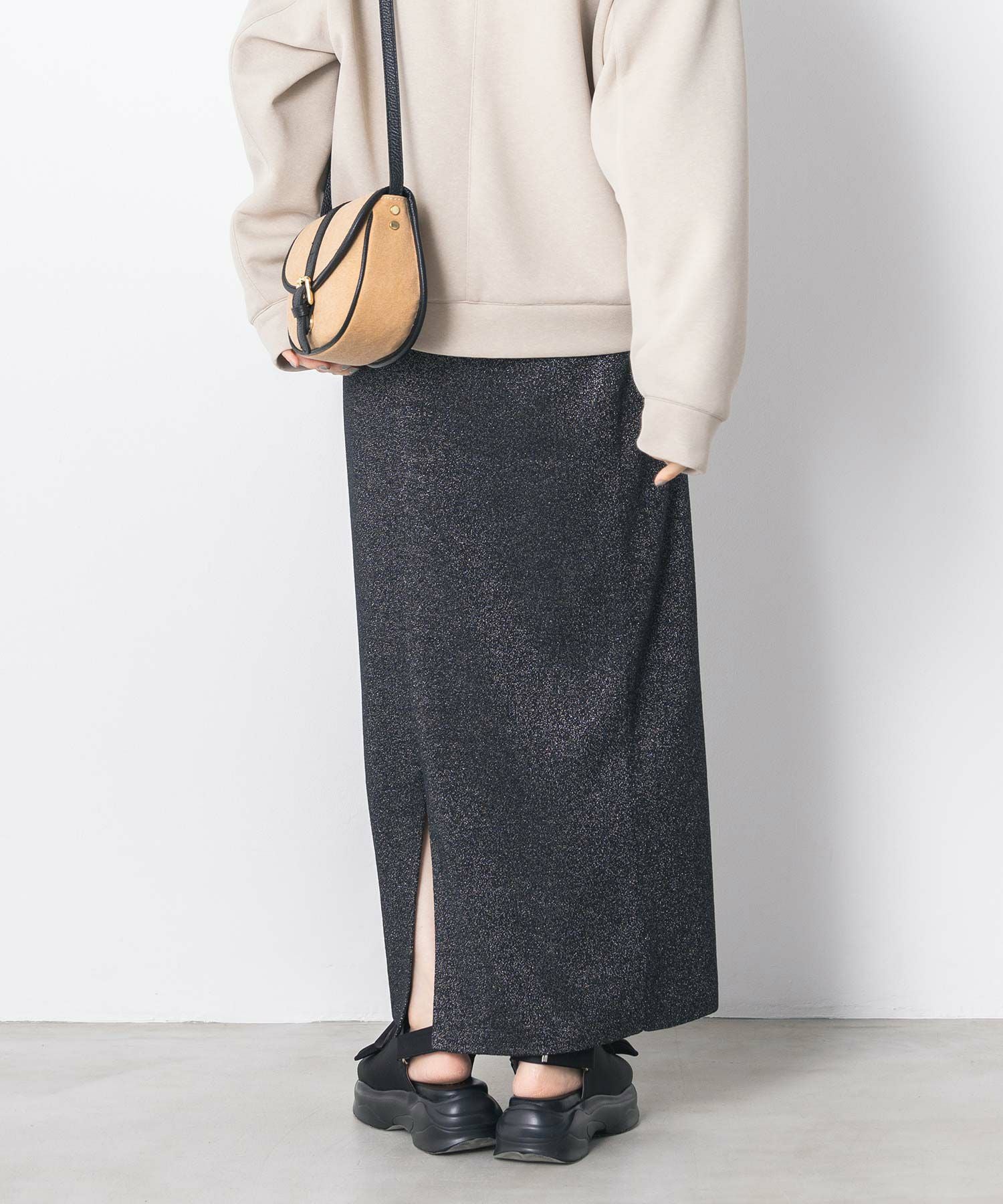 キラキラと光るラメが華やかさをプラスしてくれます。タイトすぎない程よいサイズ感で、バックに入ったスリットが抜け感をプラスしてくれます。