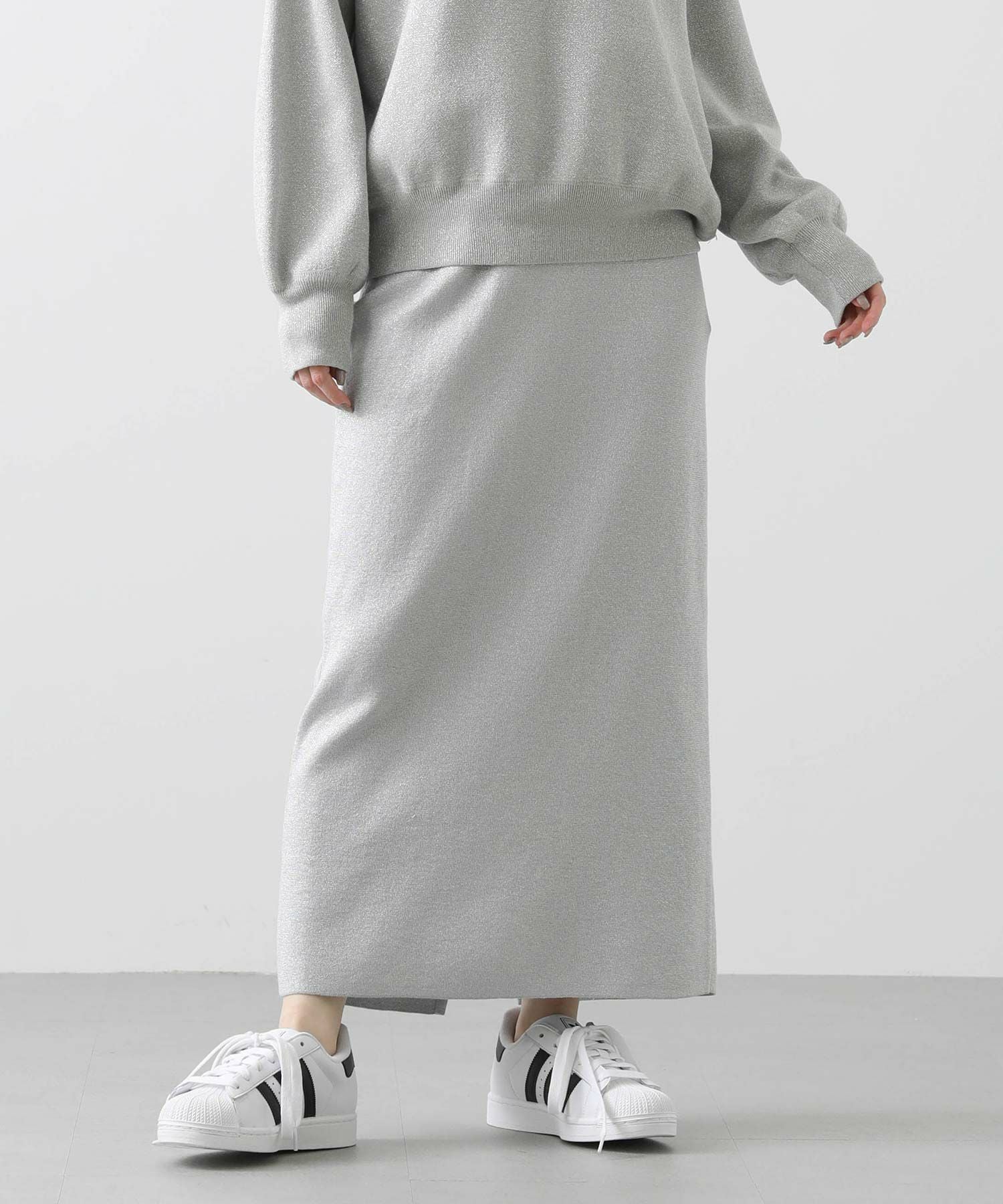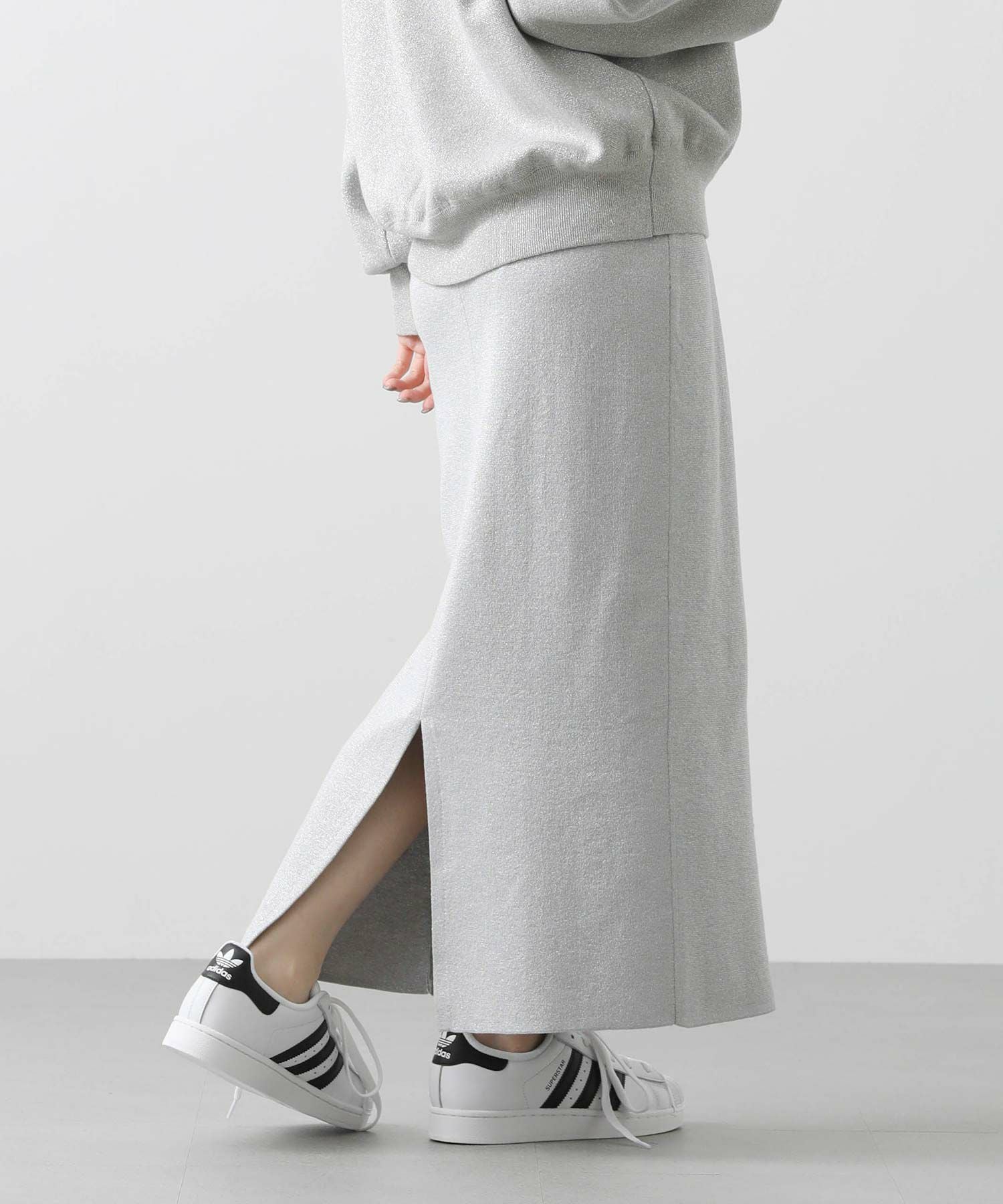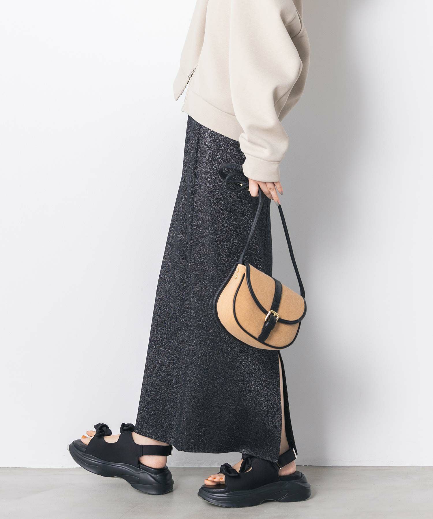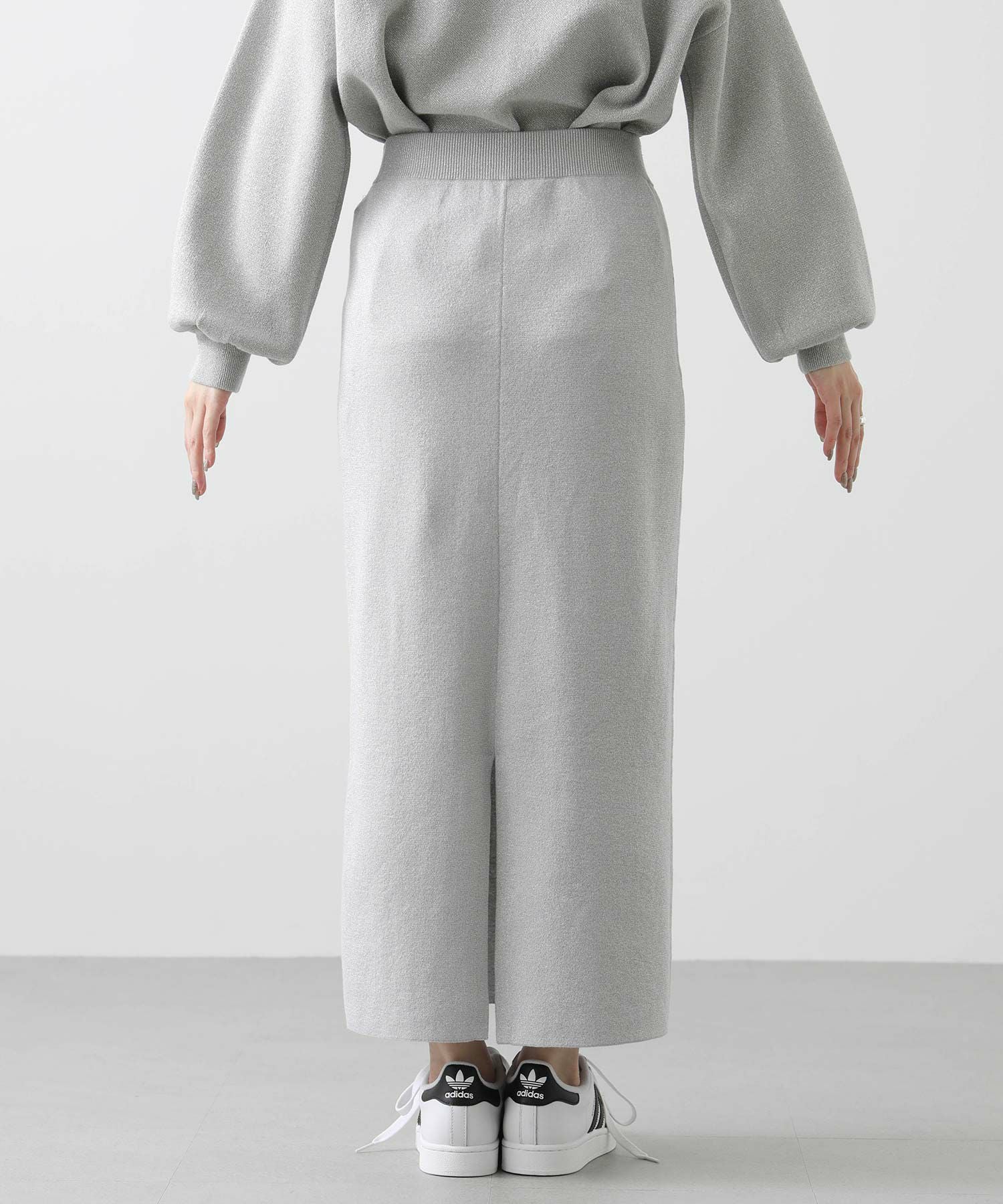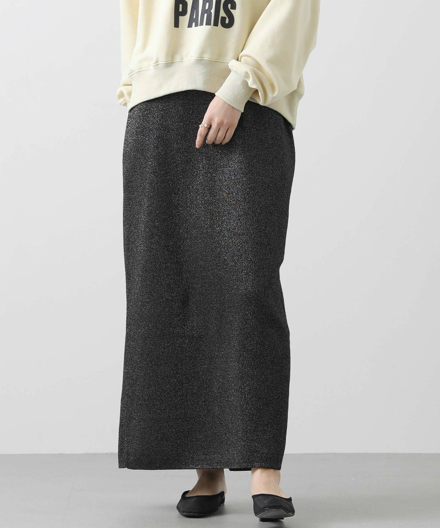 キラキラと光るラメが華やかさをプラスしてくれます。タイトすぎない程よいサイズ感で、バックに入ったスリットが抜け感をプラスしてくれます。