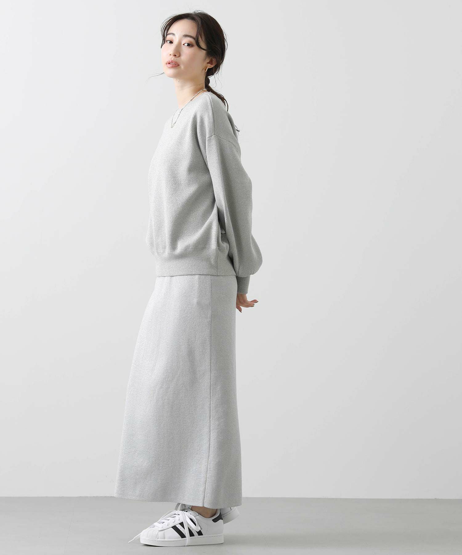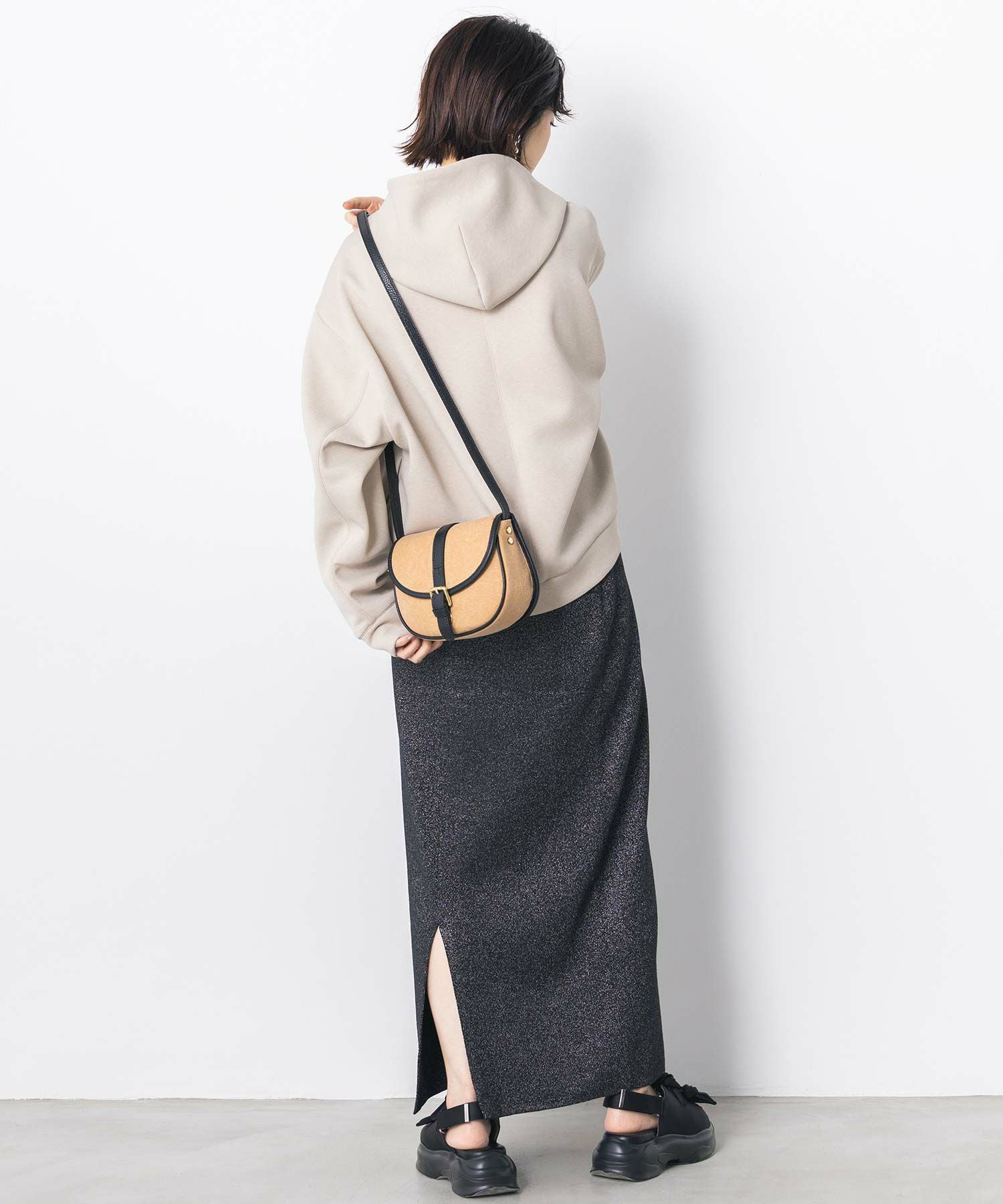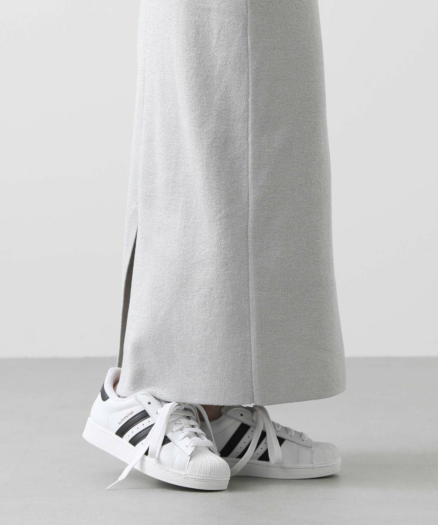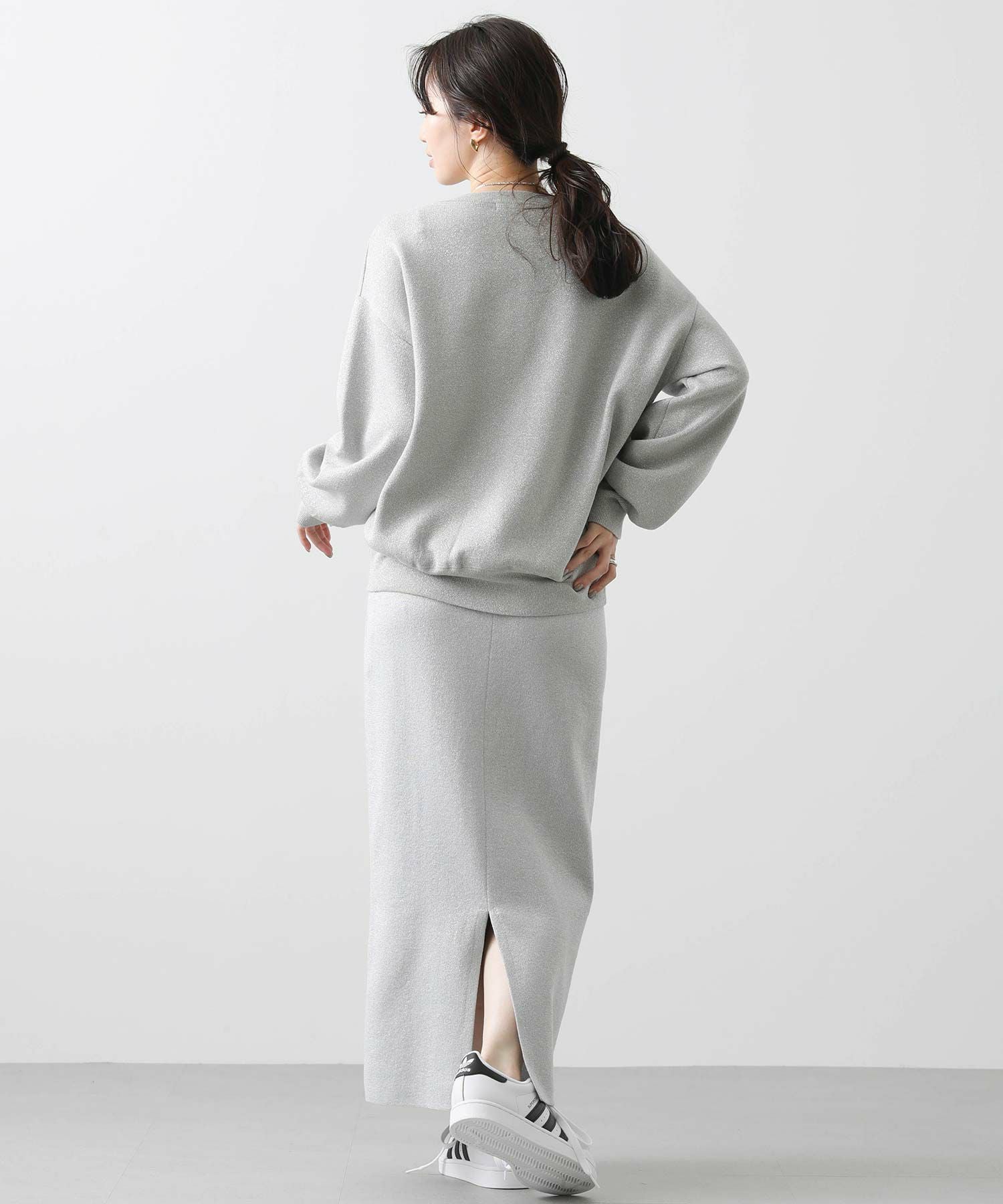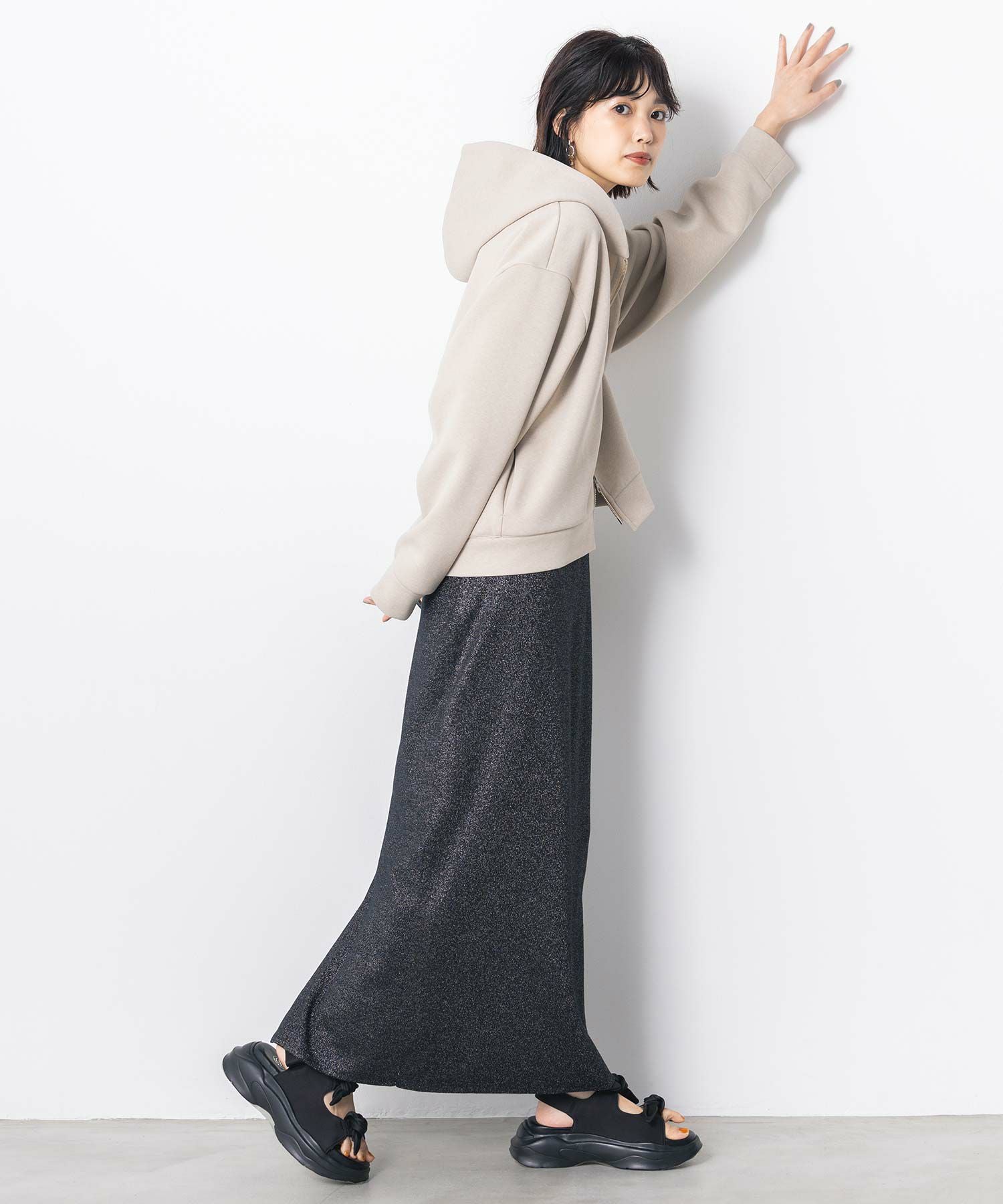 キラキラと光るラメが華やかさをプラスしてくれます。タイトすぎない程よいサイズ感で、バックに入ったスリットが抜け感をプラスしてくれます。