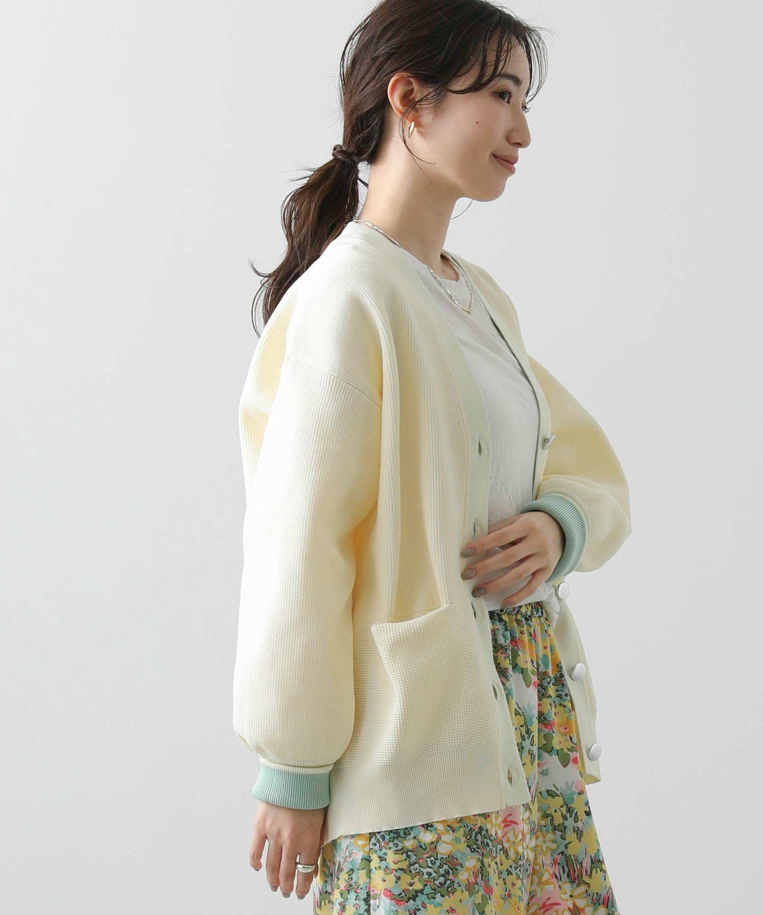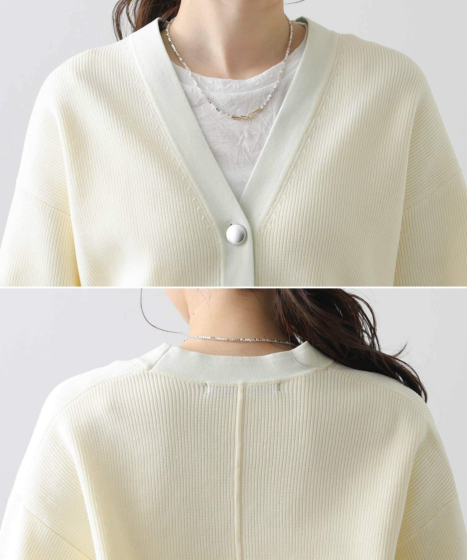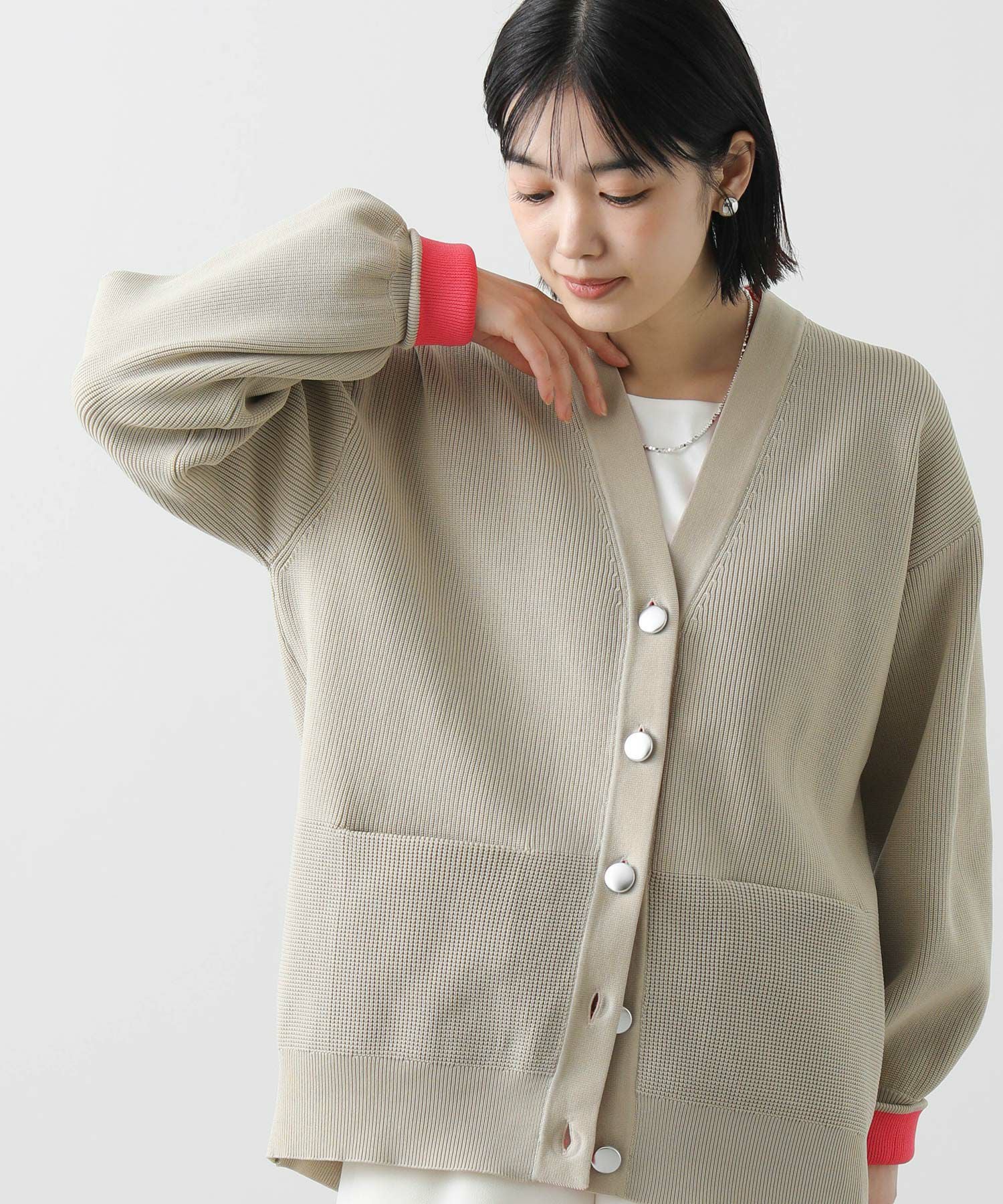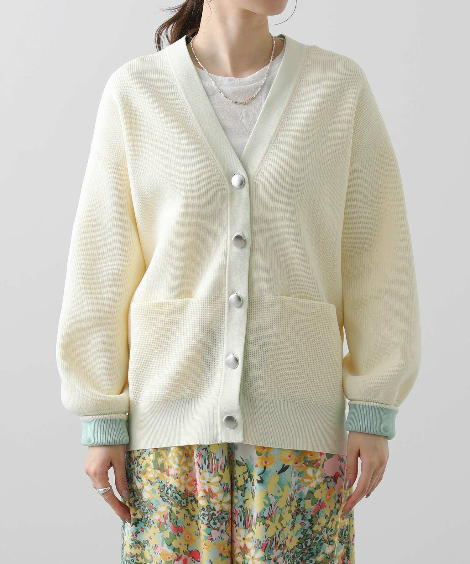ハリ感のあるスポンジのような糸を使用したニットカーディガン。