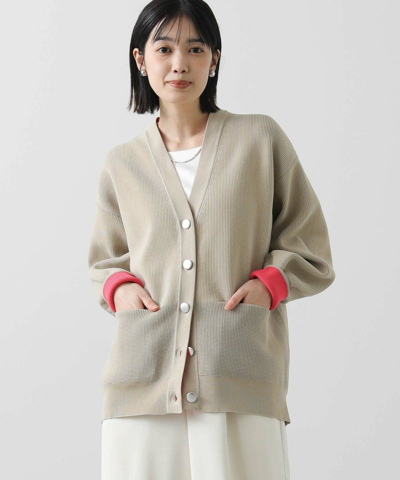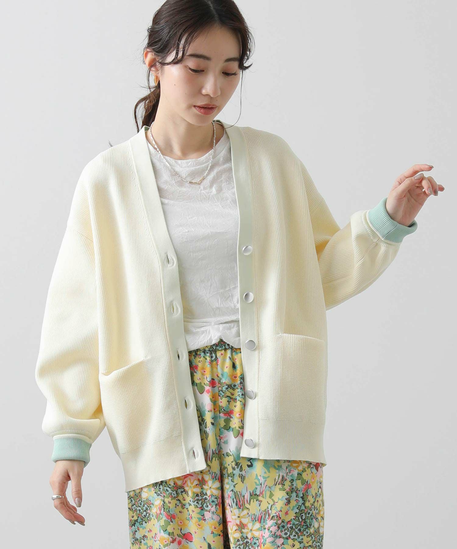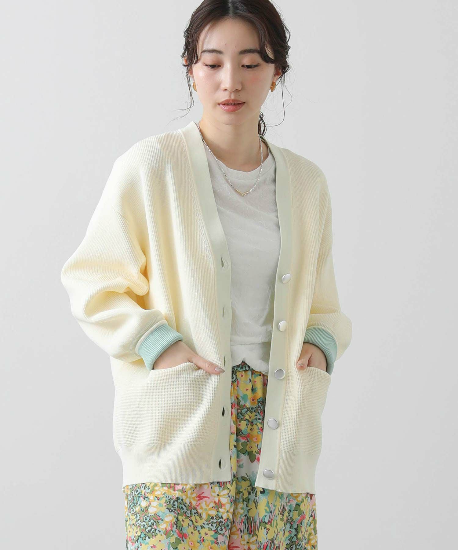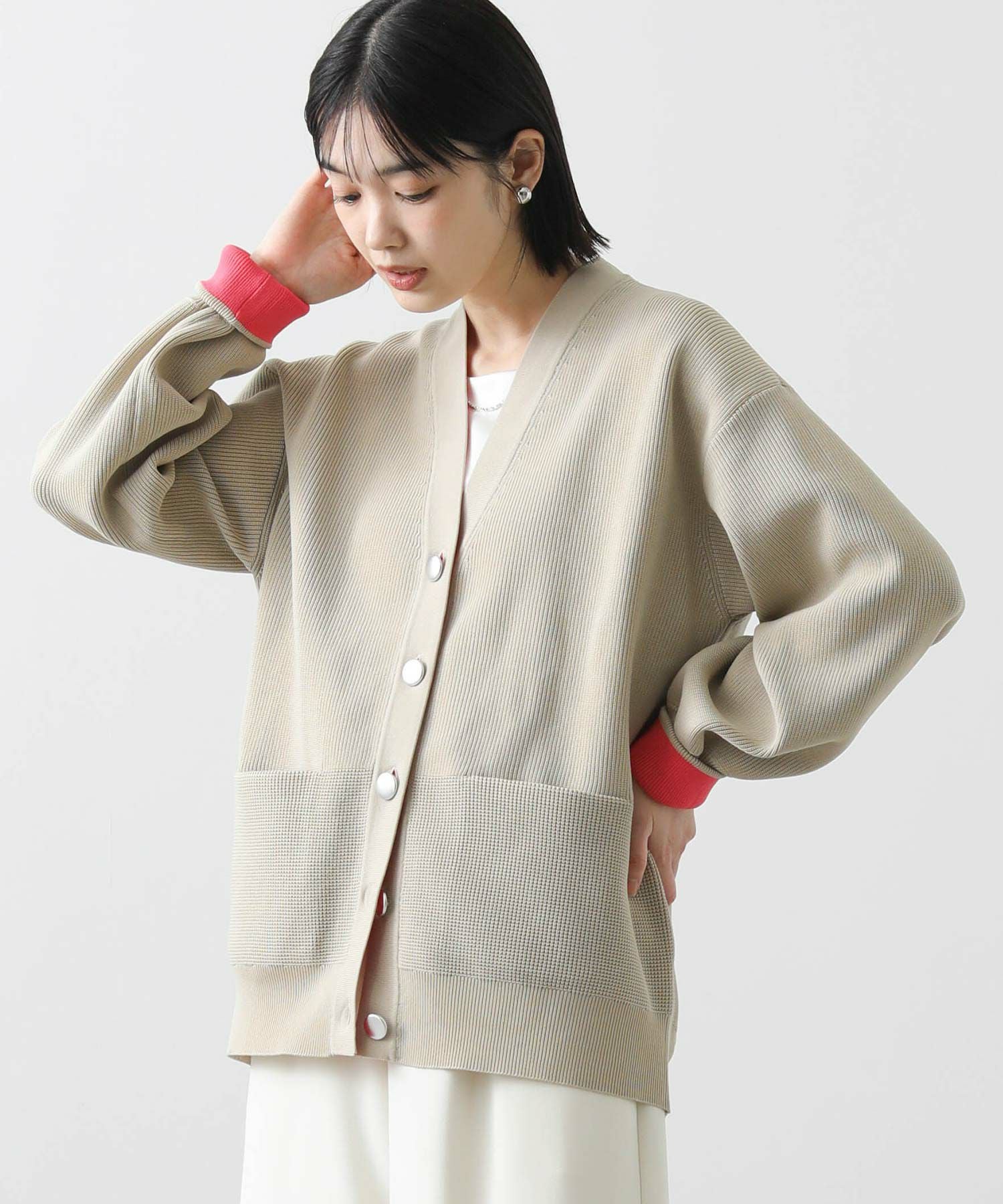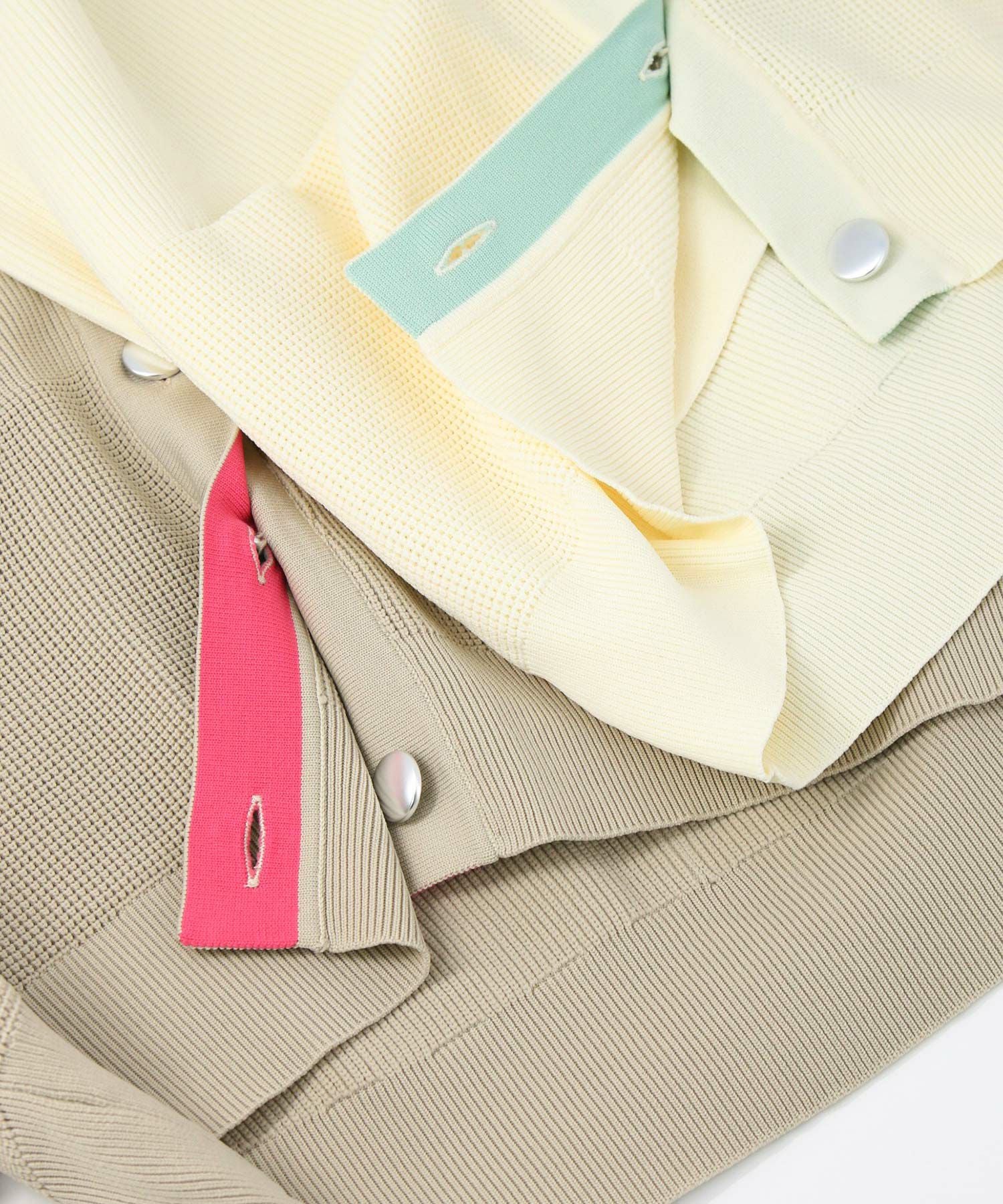 ハリ感のあるスポンジのような糸を使用したニットカーディガン。