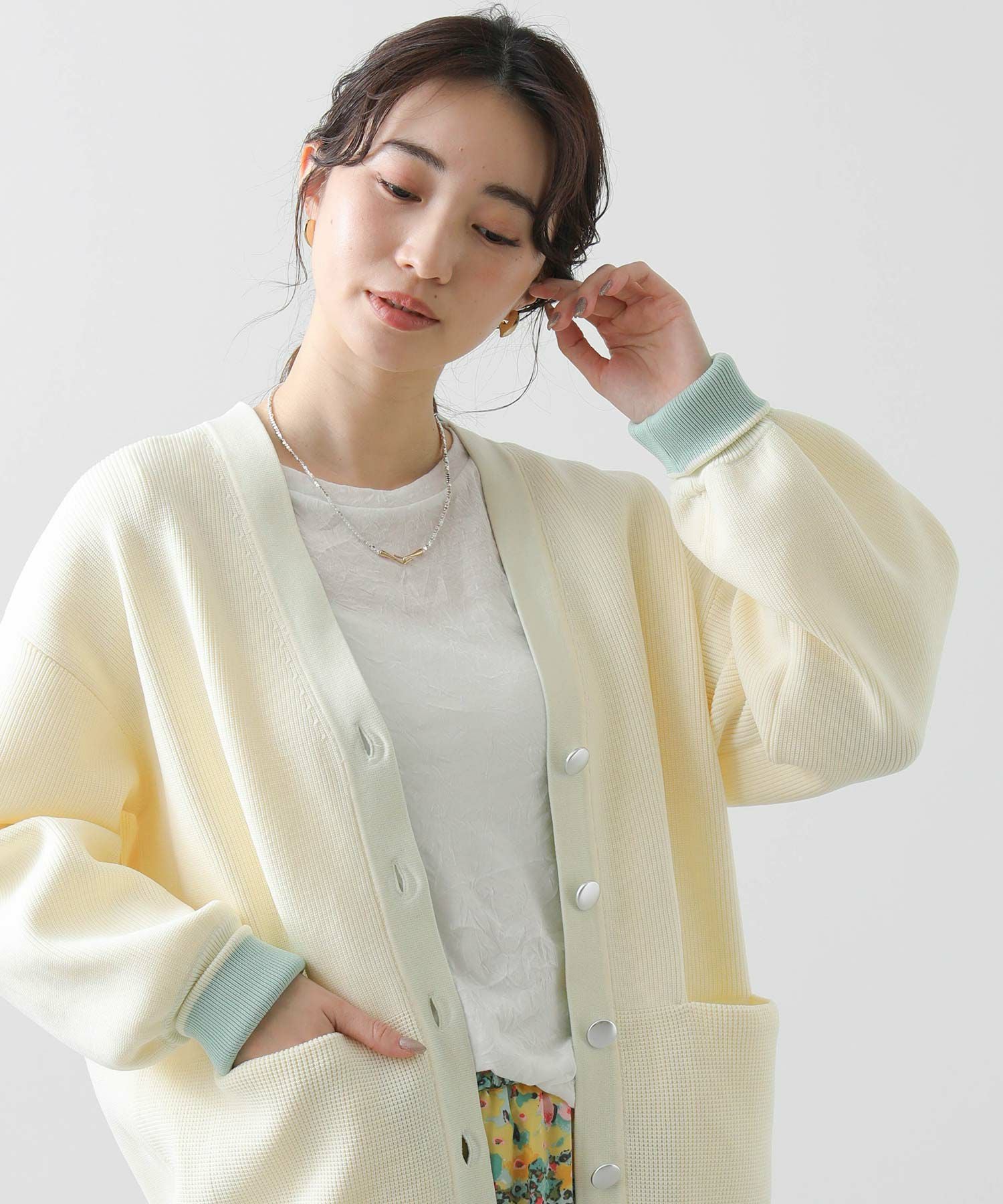 着心地は軽く、程よい厚みでジャケット代わりに春先まで長く活躍してくれます。前立てと袖口の内側が配色になっているデザインが可愛い。