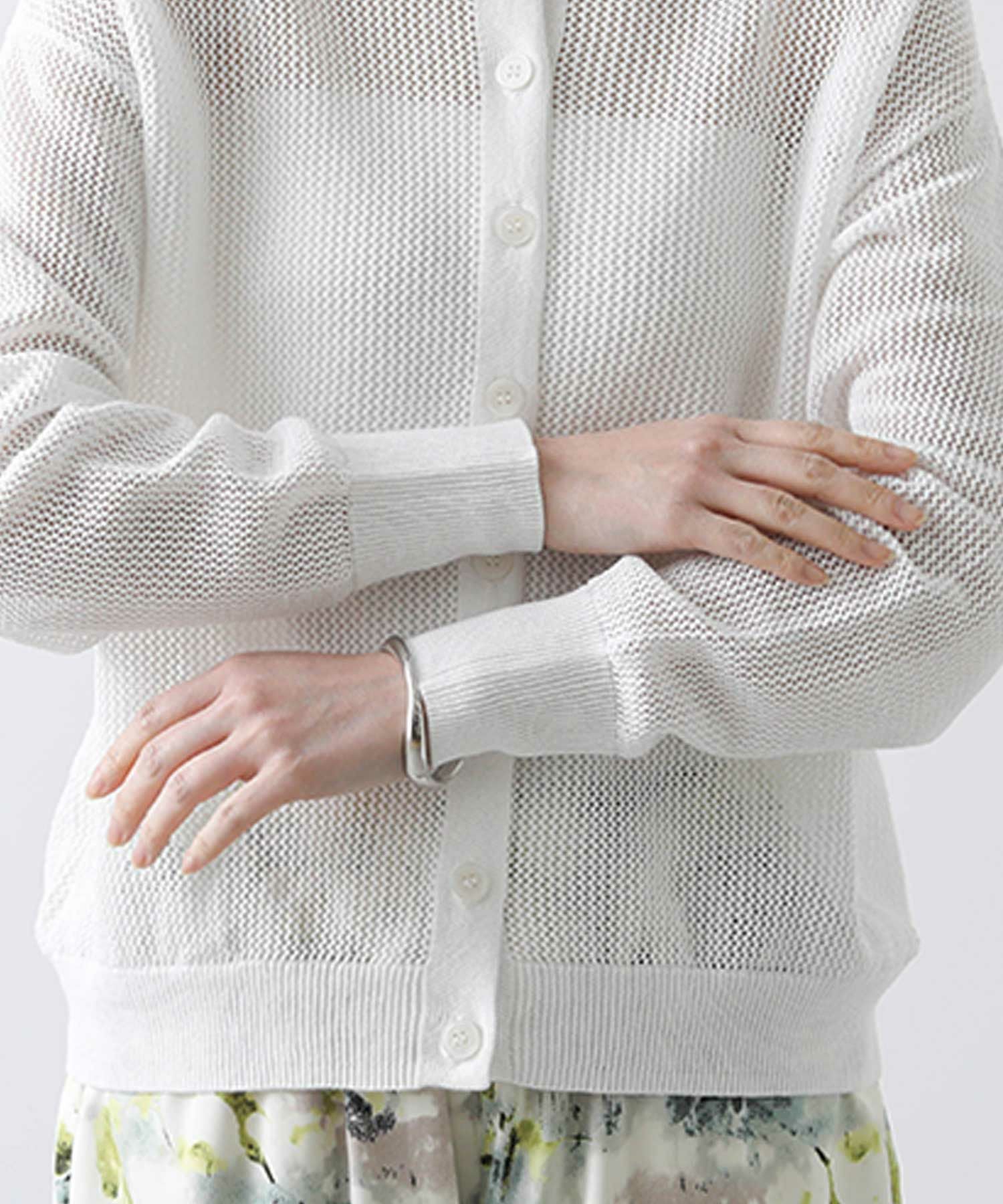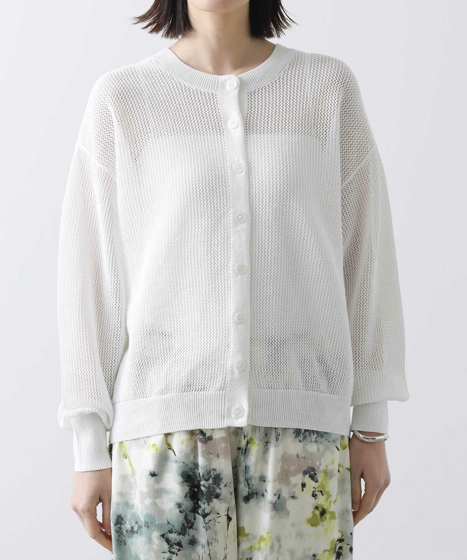 背中がボタンのプルオーバーとしても、クルーネックのカーデとしても楽しめる前後2WAY仕様。抜け感の出るシルエットと程よい透け感で大人っぽく着こなせるアイテムです。